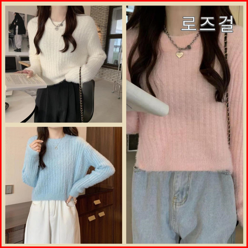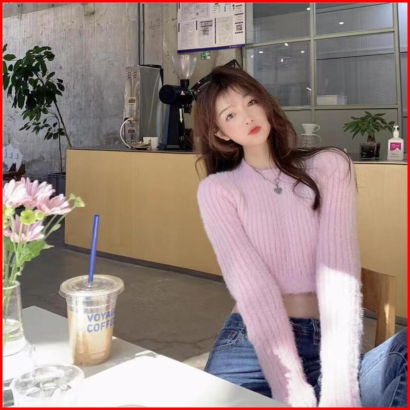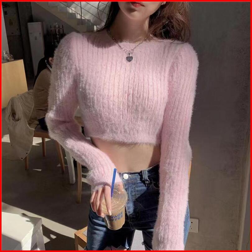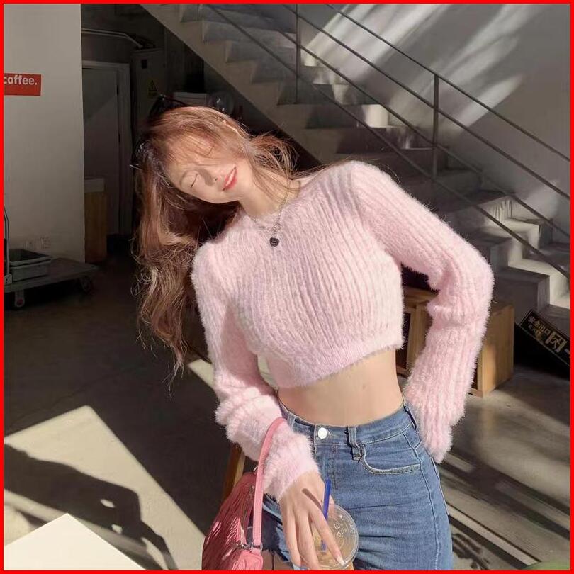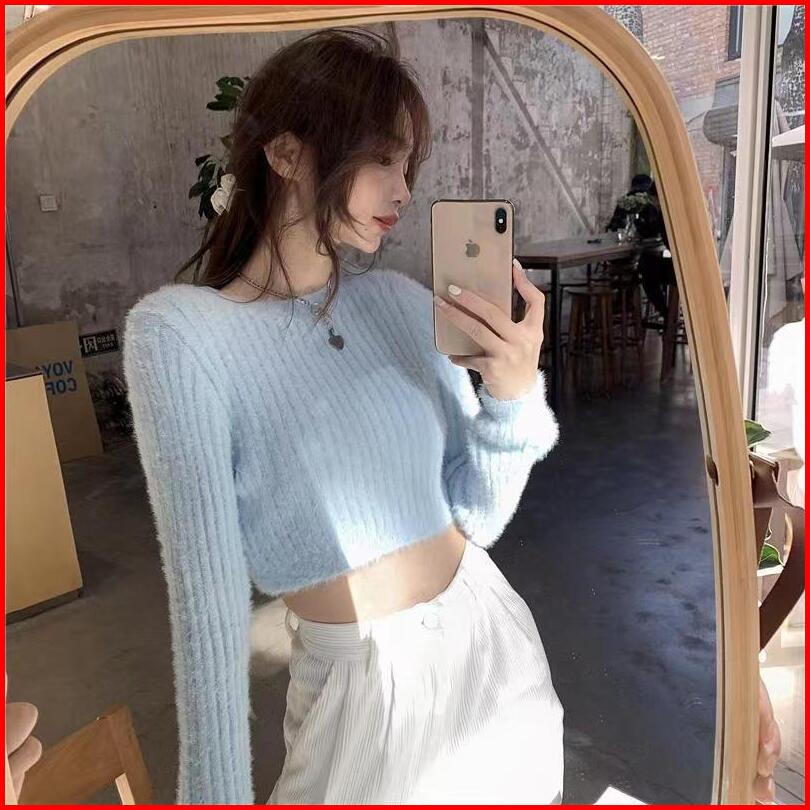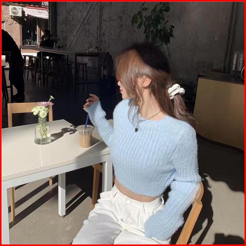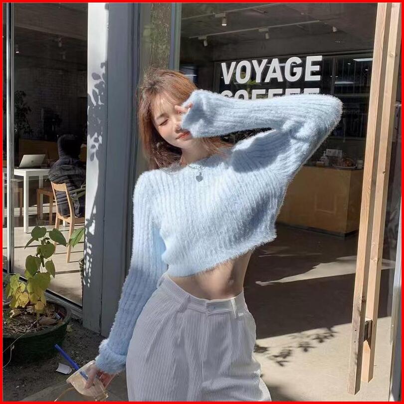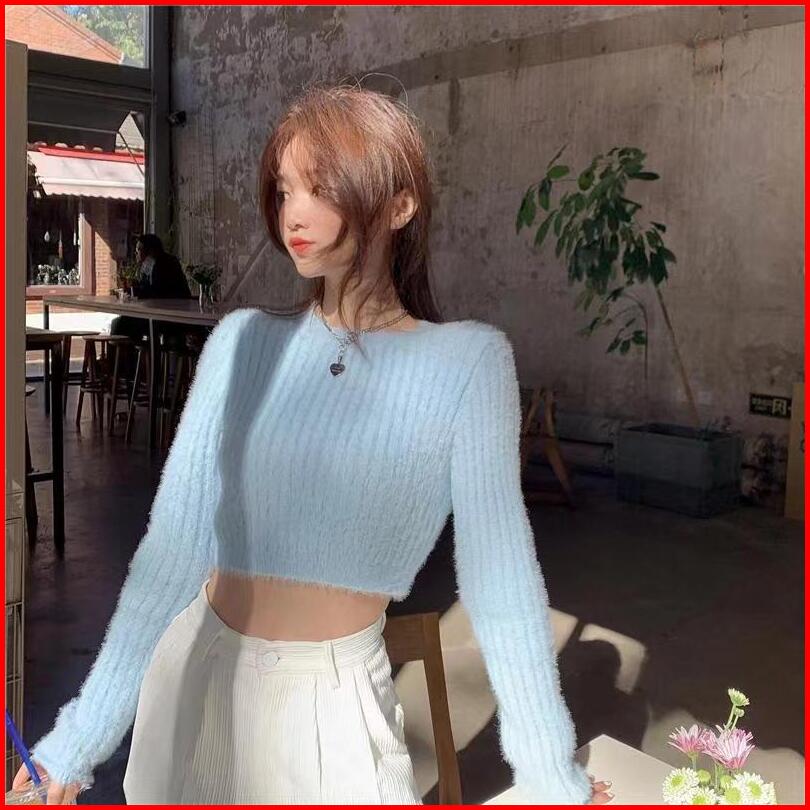 Bulu Knitwear Baju Sweater Rajut Wanita Kekinian Lengan Panjang Crop Top