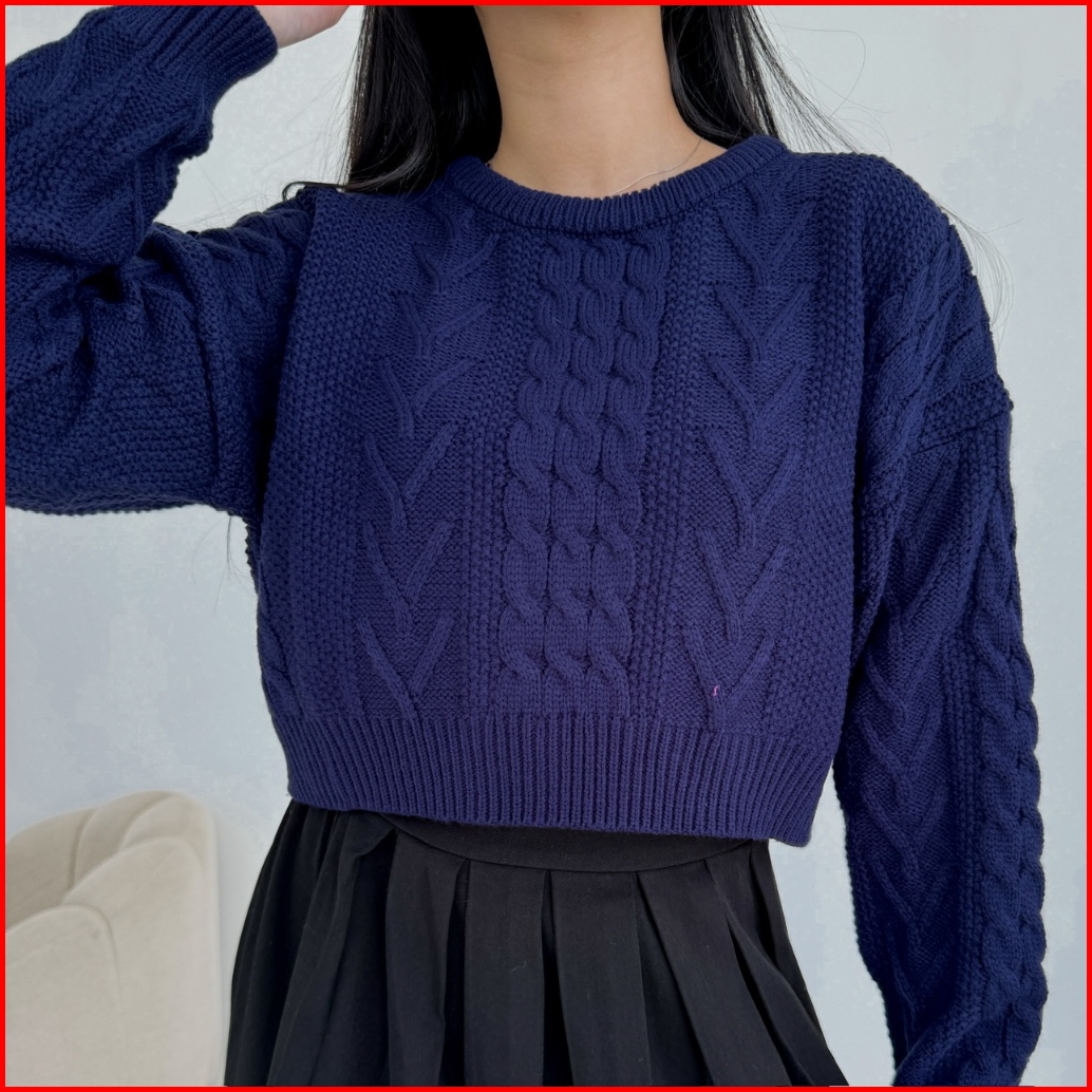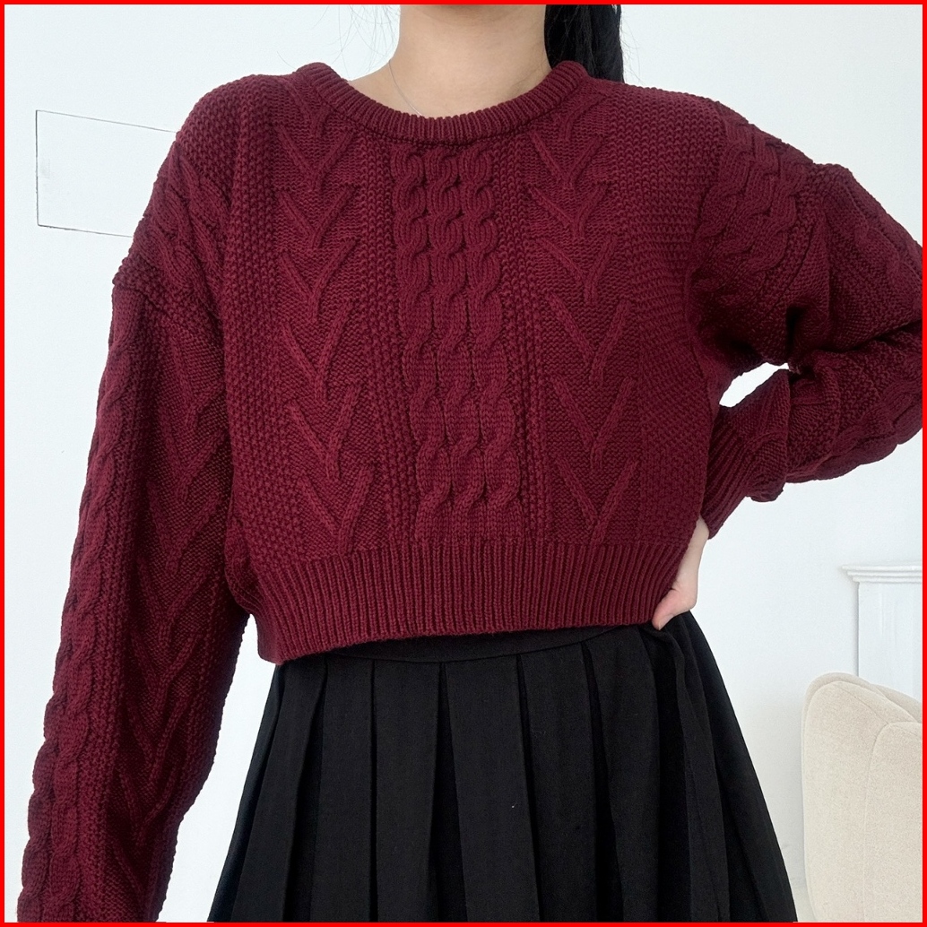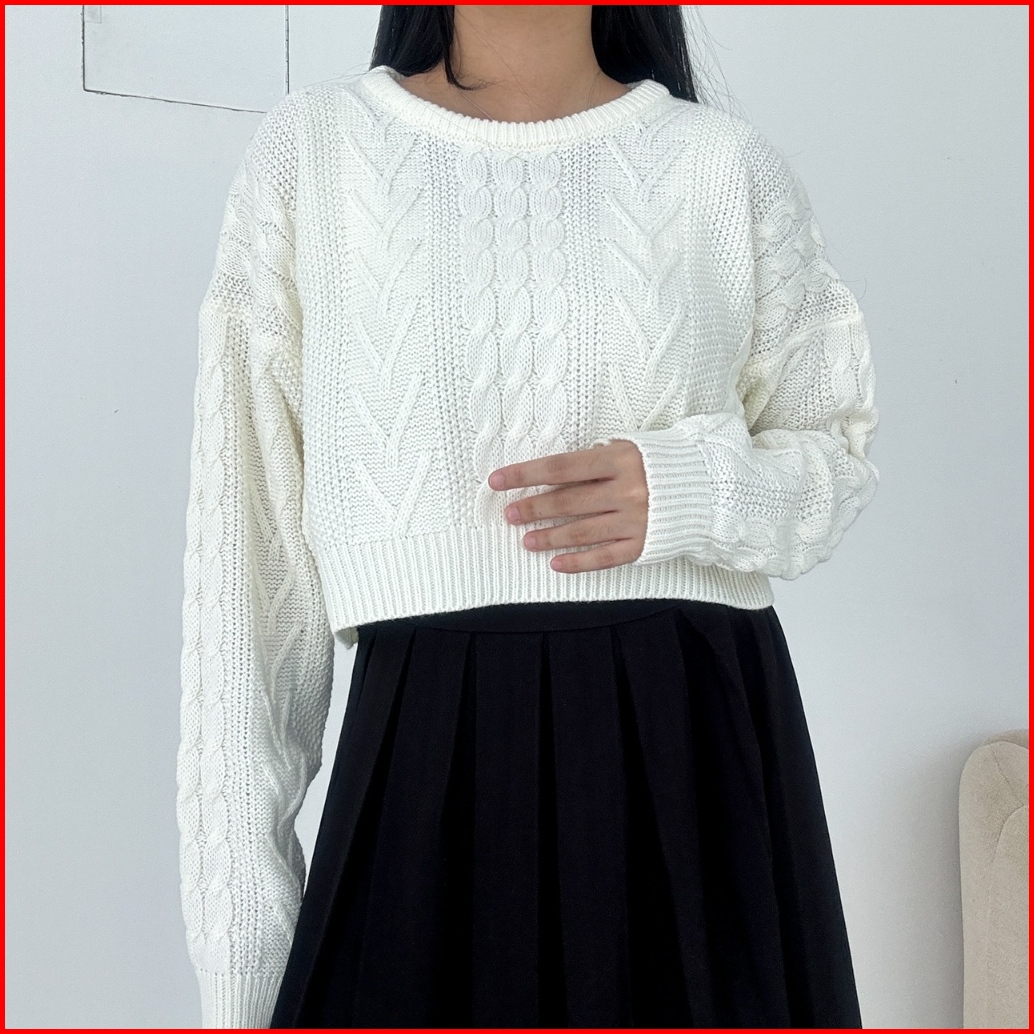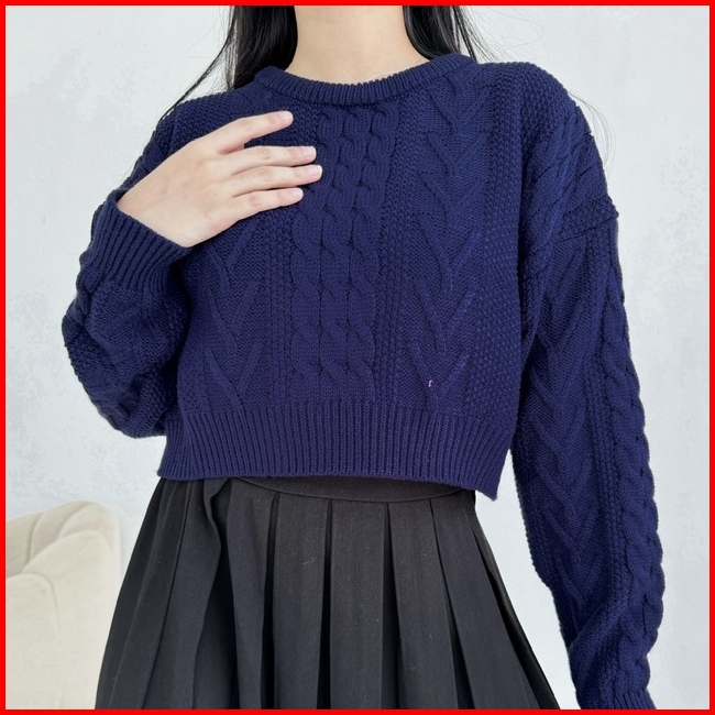 Needaknit Gretha Atasan Wanita Baju Sweater Crop Cable Knit Kekinian Rajut Lengan Panjang Outer