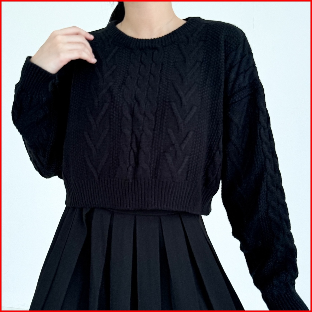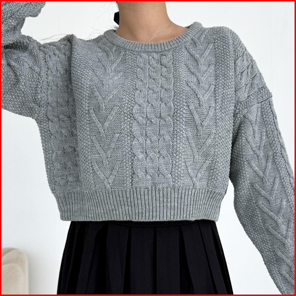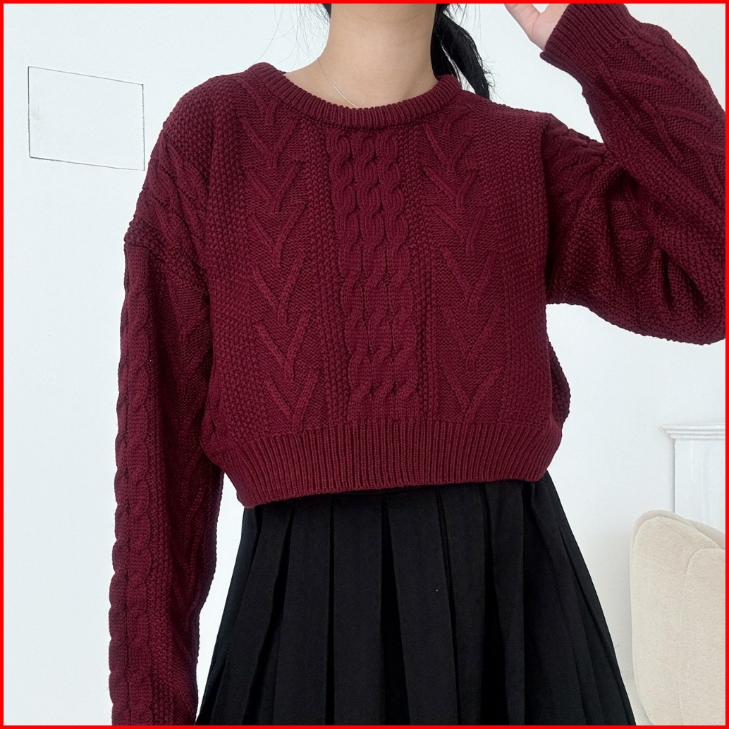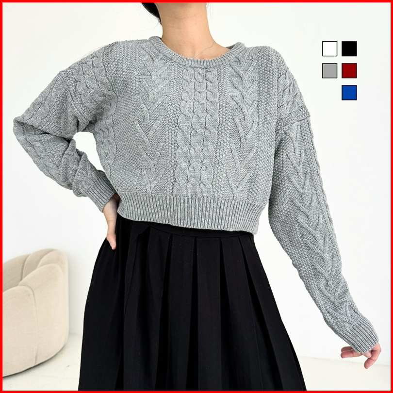 Needaknit Gretha Atasan Wanita Baju Sweater Crop Cable Knit Kekinian Rajut Lengan Panjang Outer