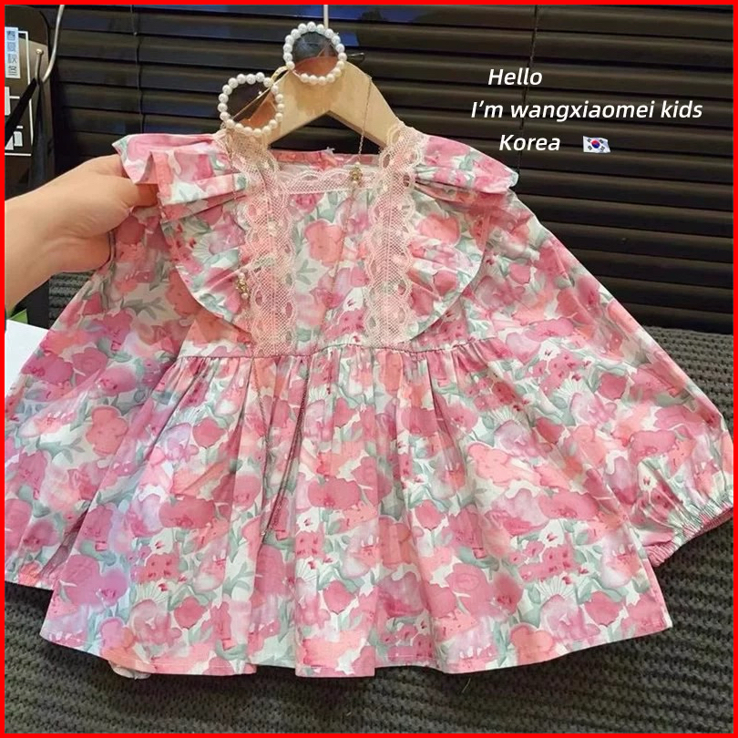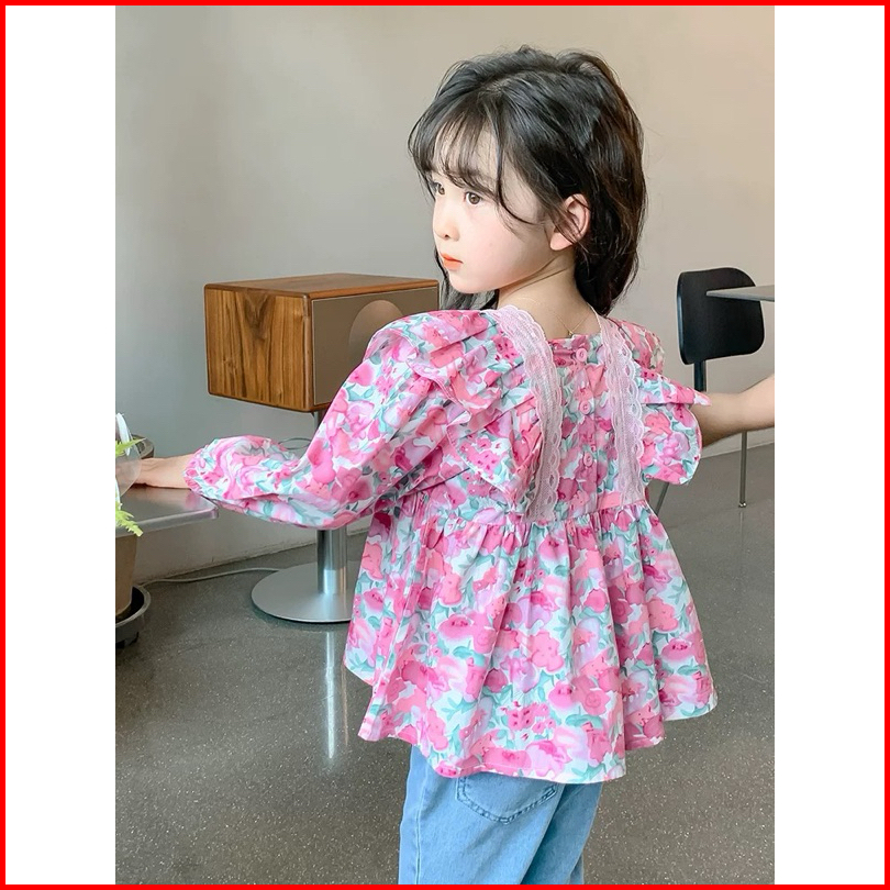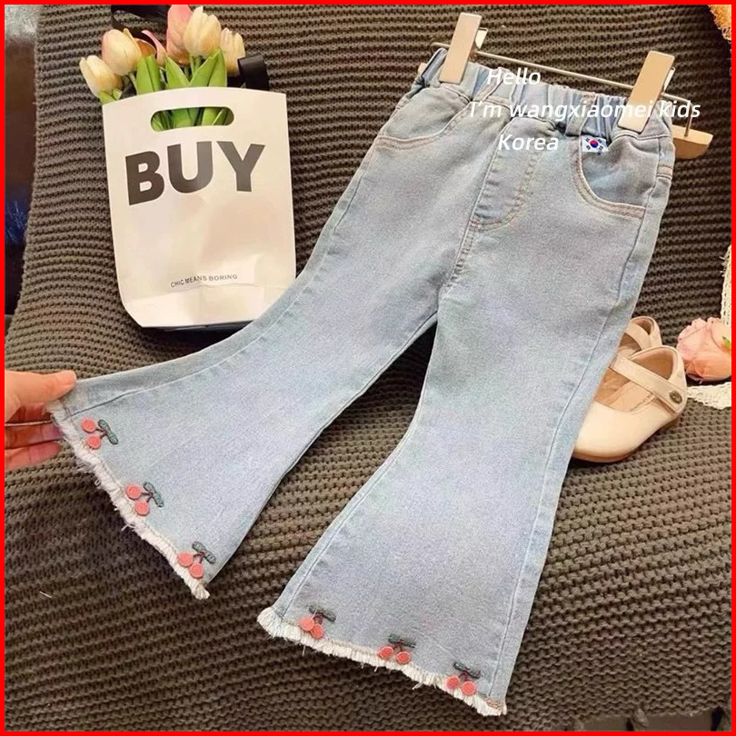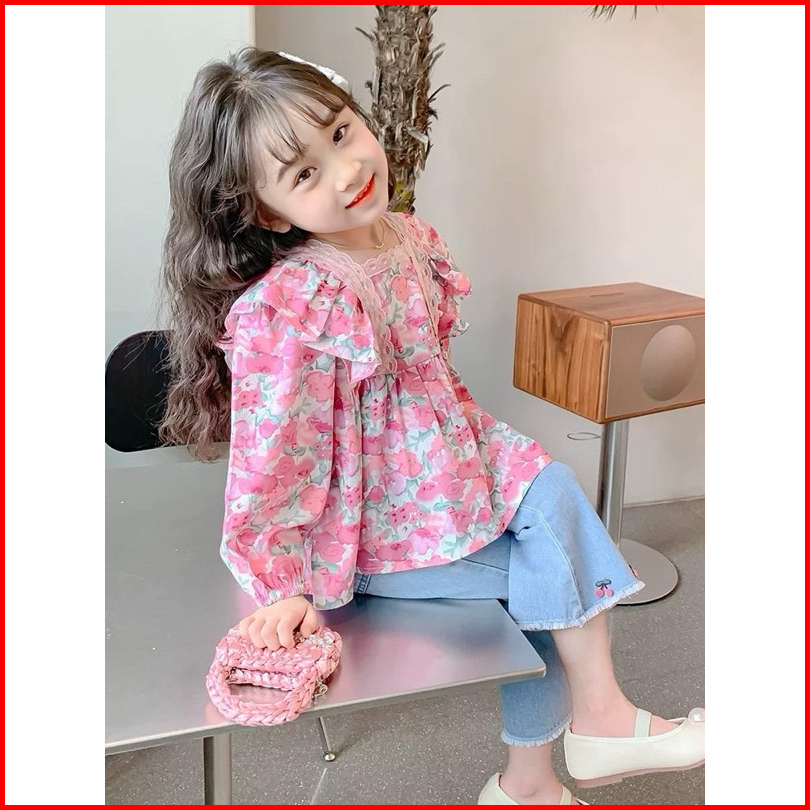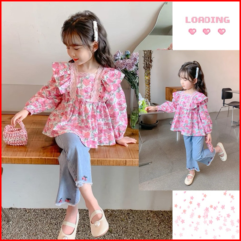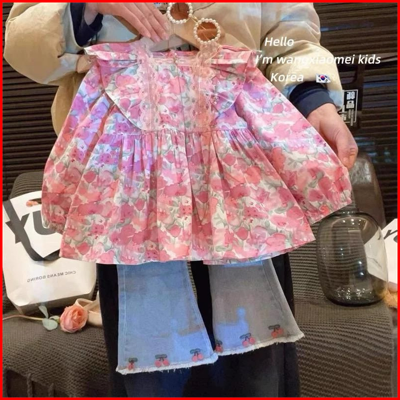 2-10tahun Setelan Jeans Bunga Pink Baju Anak Perempuan Setcel Panjang Korean Style
