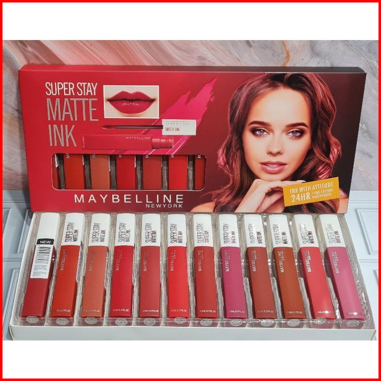Set Isi 12 Waterproof Lipcream Maybelline Superstay Matte Ink Lipcream Maybelline Barcode Superstay 6188-12