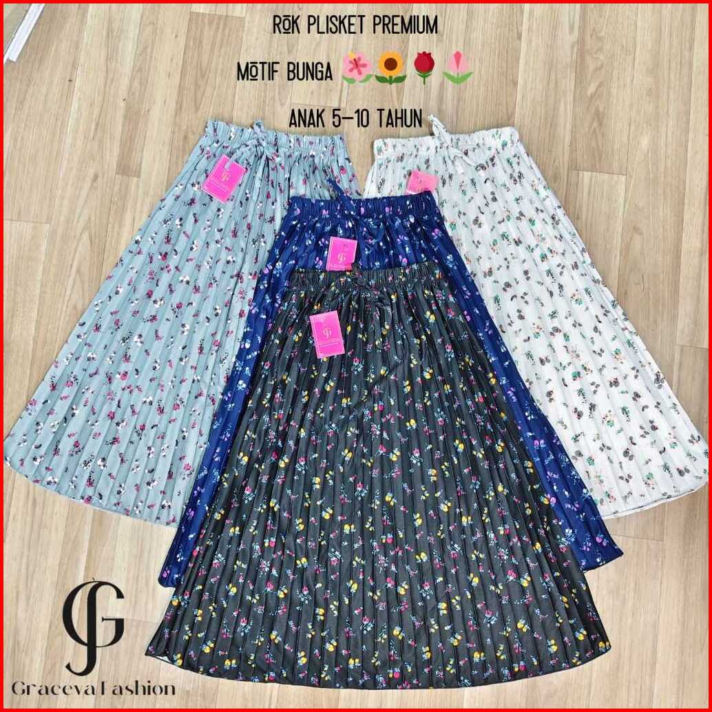 Rok Plisket Anak Premium Usia 5-10 Tahun Rok Plisket Anak Motif Bunga Rok Anak Perempuan Trendy