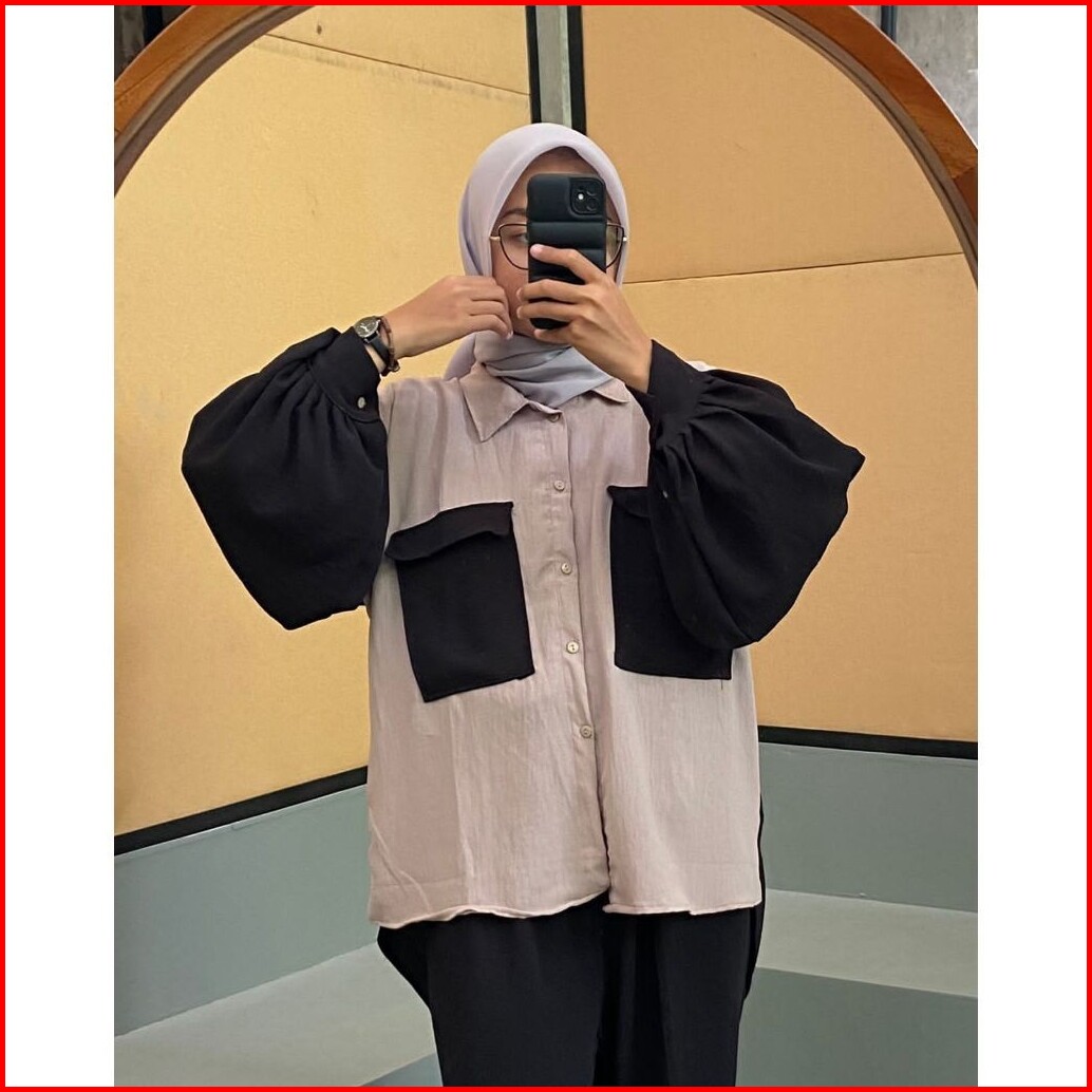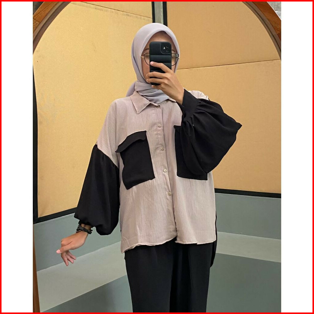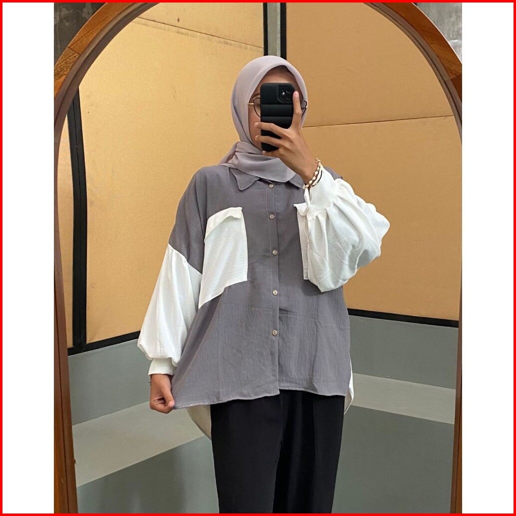 Humaira Atasan Kemeja Crinkle Airflow Oversize Wanita Twotone Aula