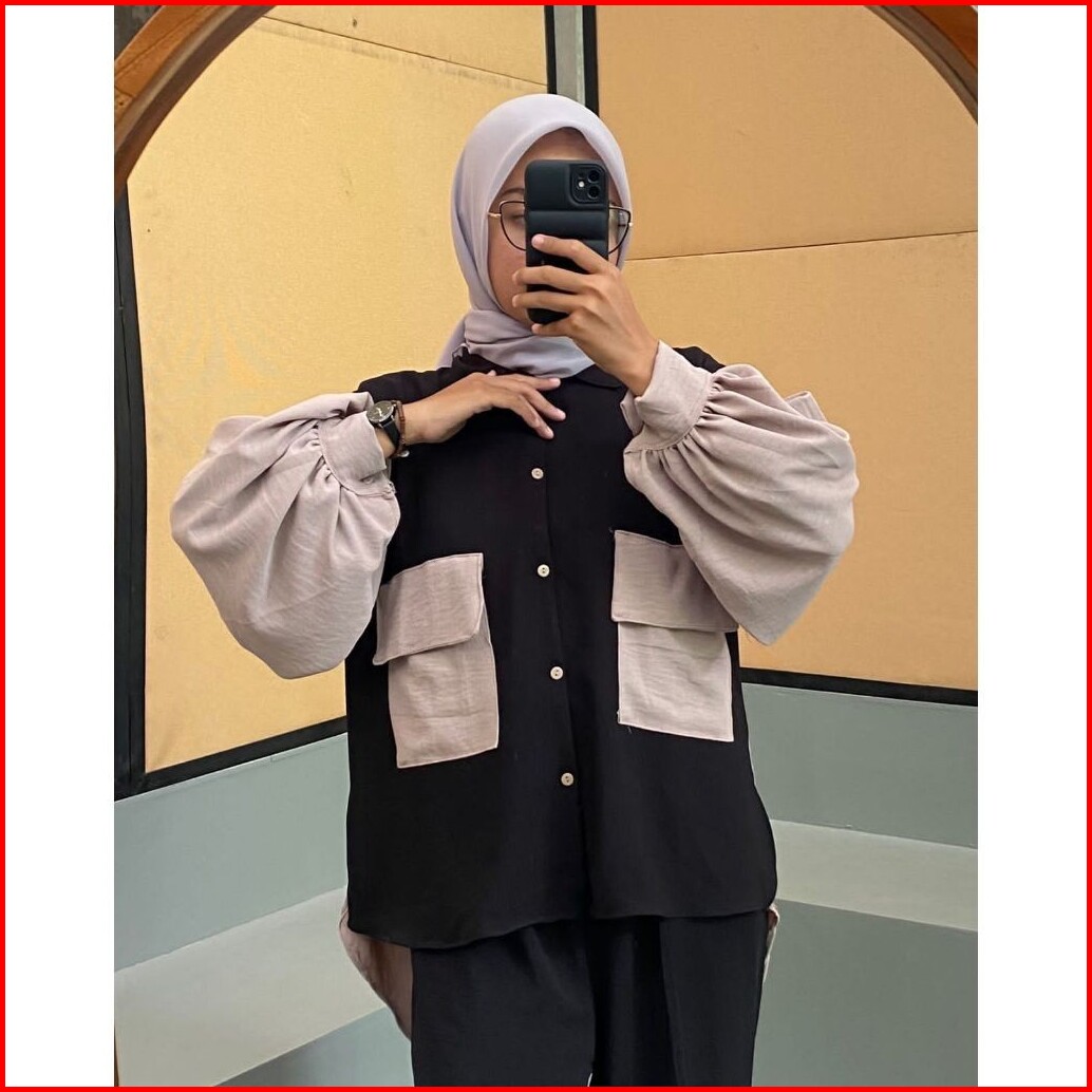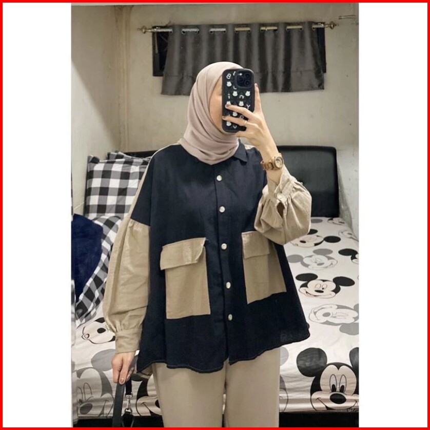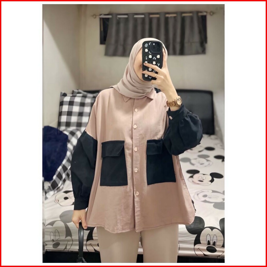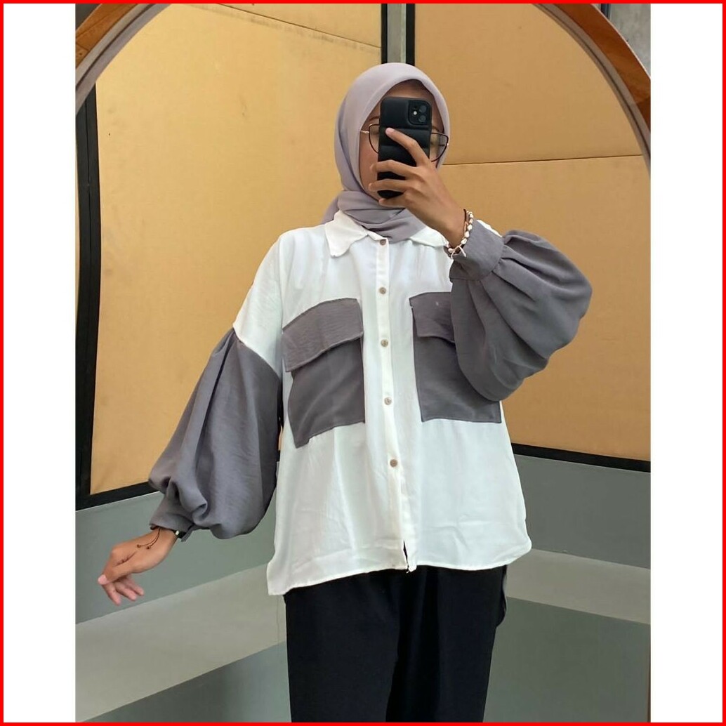 Humaira Atasan Kemeja Crinkle Airflow Oversize Wanita Twotone Aula