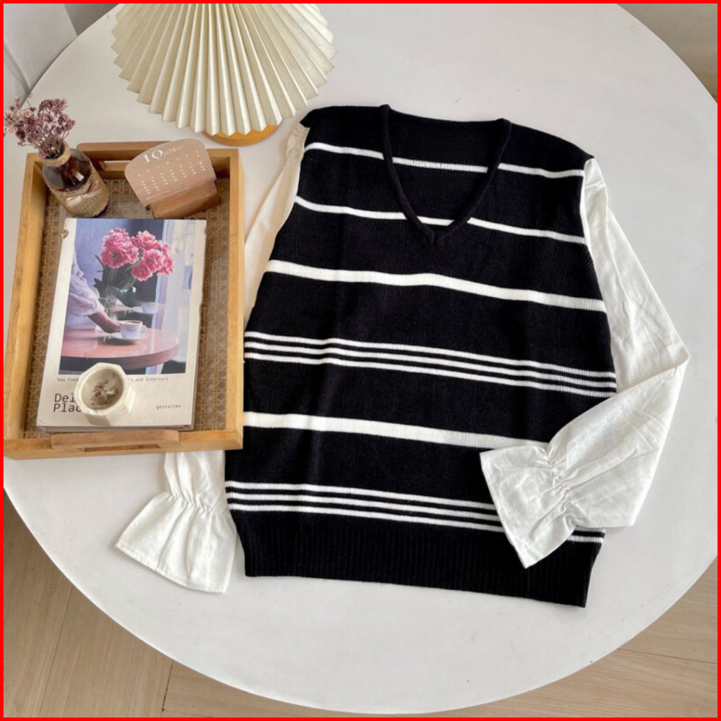 Najwa - Wanda Top Korean Style - Atasan Blouse Wanita Motif Garis