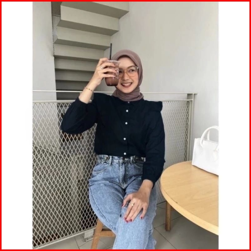 Zia Blouse Atasan Wanita Kemeja Rempel Kemeja Linen Kemeja Oversize Blouse Kekinian