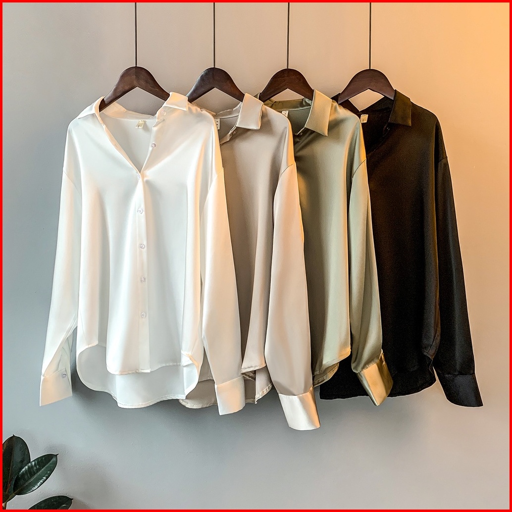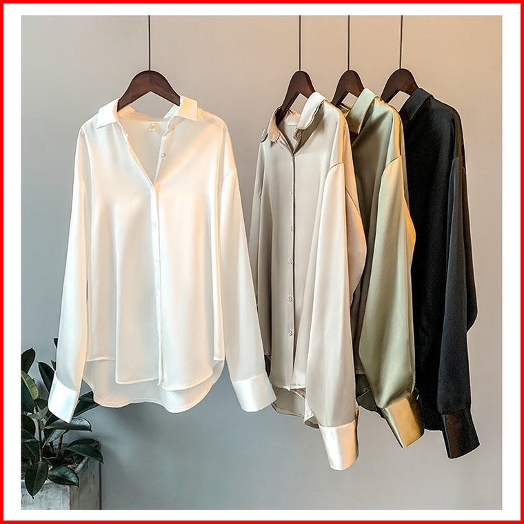 New Fashion Satin Shirt For Women Black White Green M L Xl Xxl Xxxl 2l 3l 4l 5l Kemeja Satin Premium Atasan Korea Kemeja