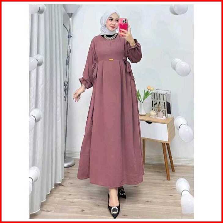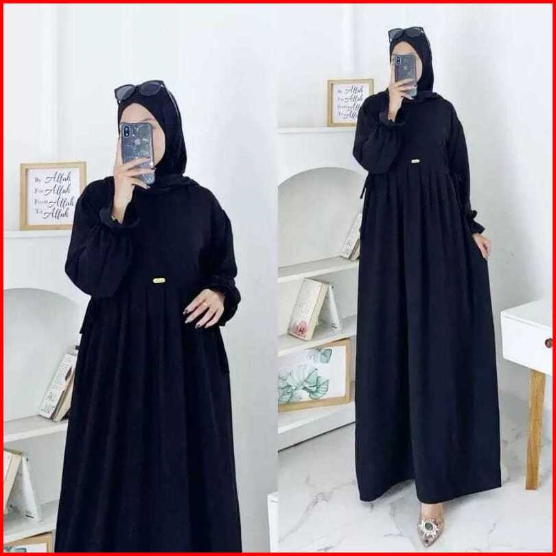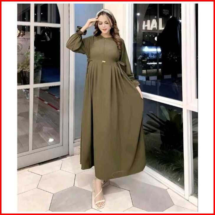 Nikita Dress Gamis Crinkle Busui Wanita Modern Resleting Longdress Homedres