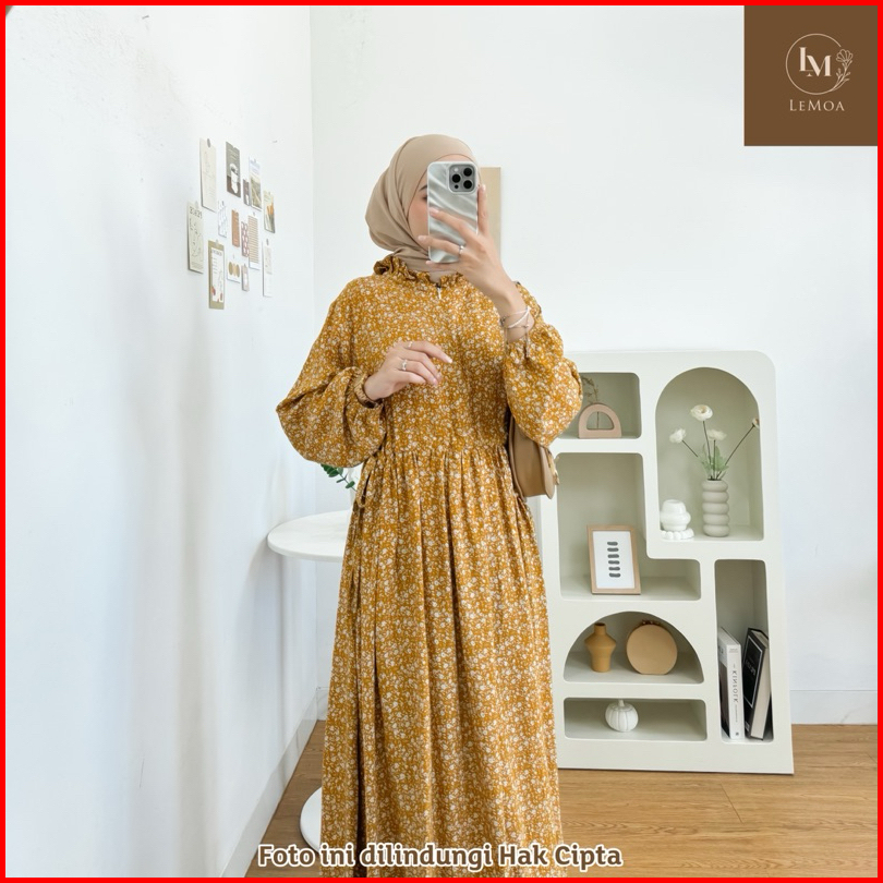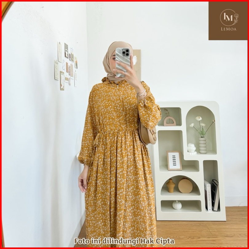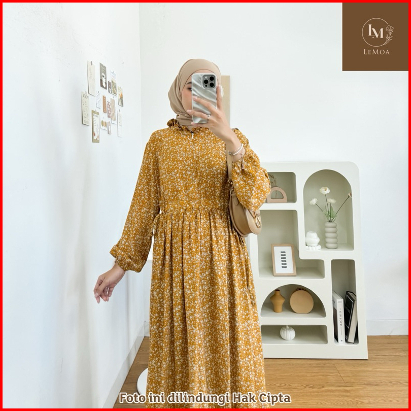 Shireen Gamis Maxy By Lemoa Long Dress Ld 110 Pb 135 Model Tali Serut Motif Bunga Bahan Rayon Premium Baju Panjang Wanit