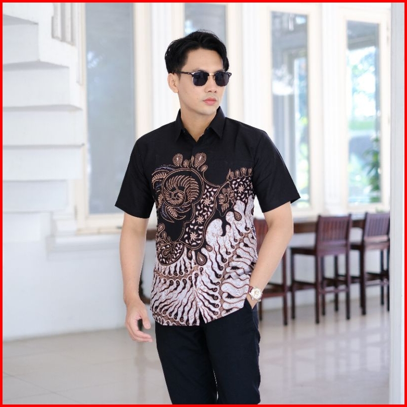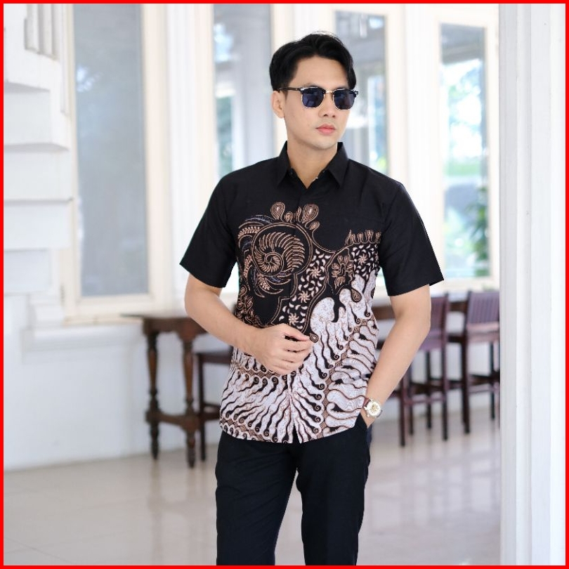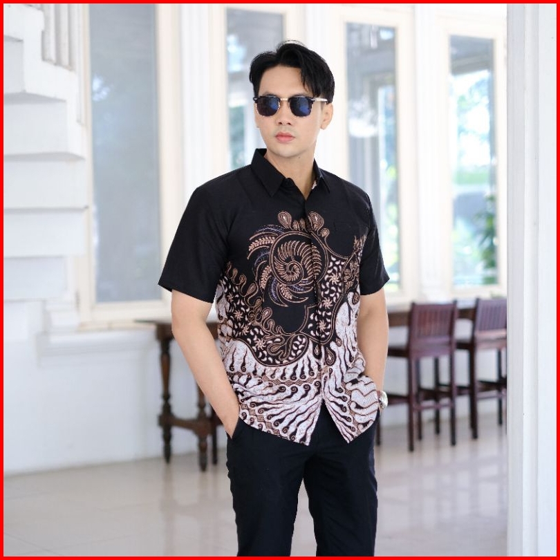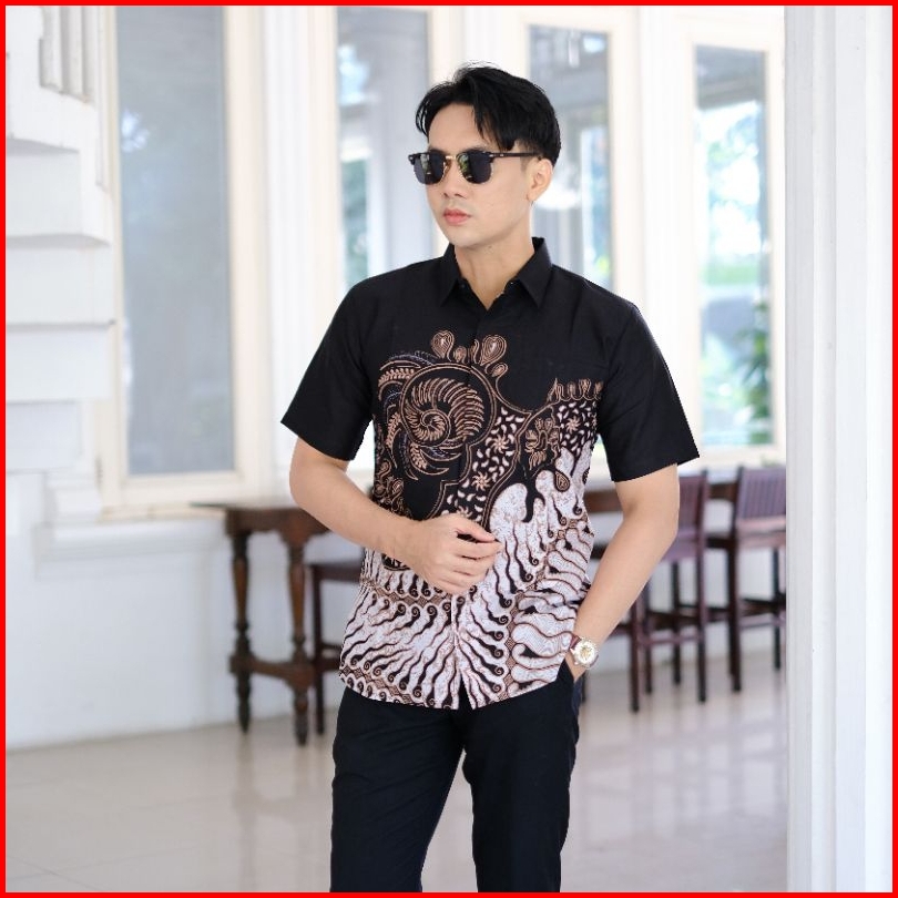 Motif Rangkong Hitam Pendek Kemeja Batik Pria Slimfit Lengan Pendek Baju Batik Pria Hem Batik Pria Jumbo