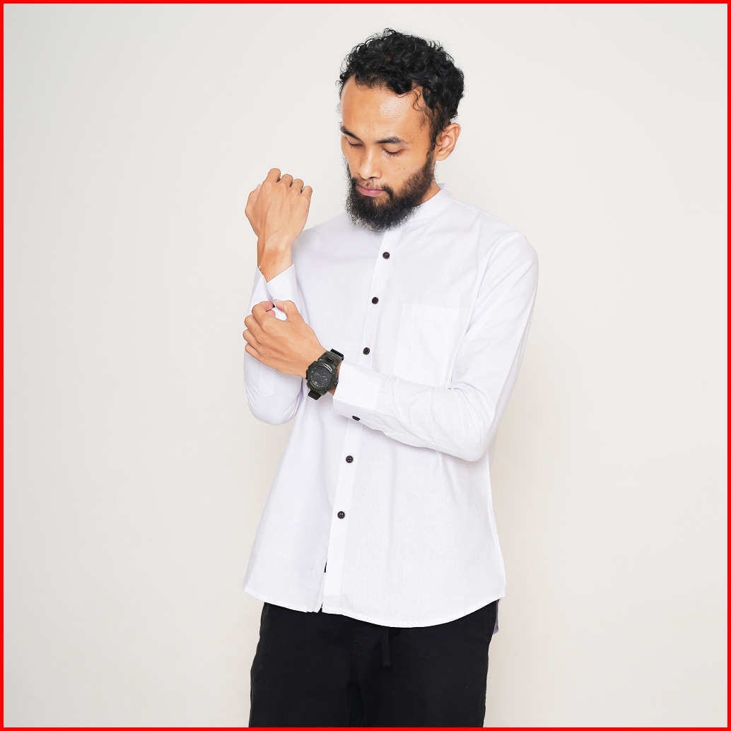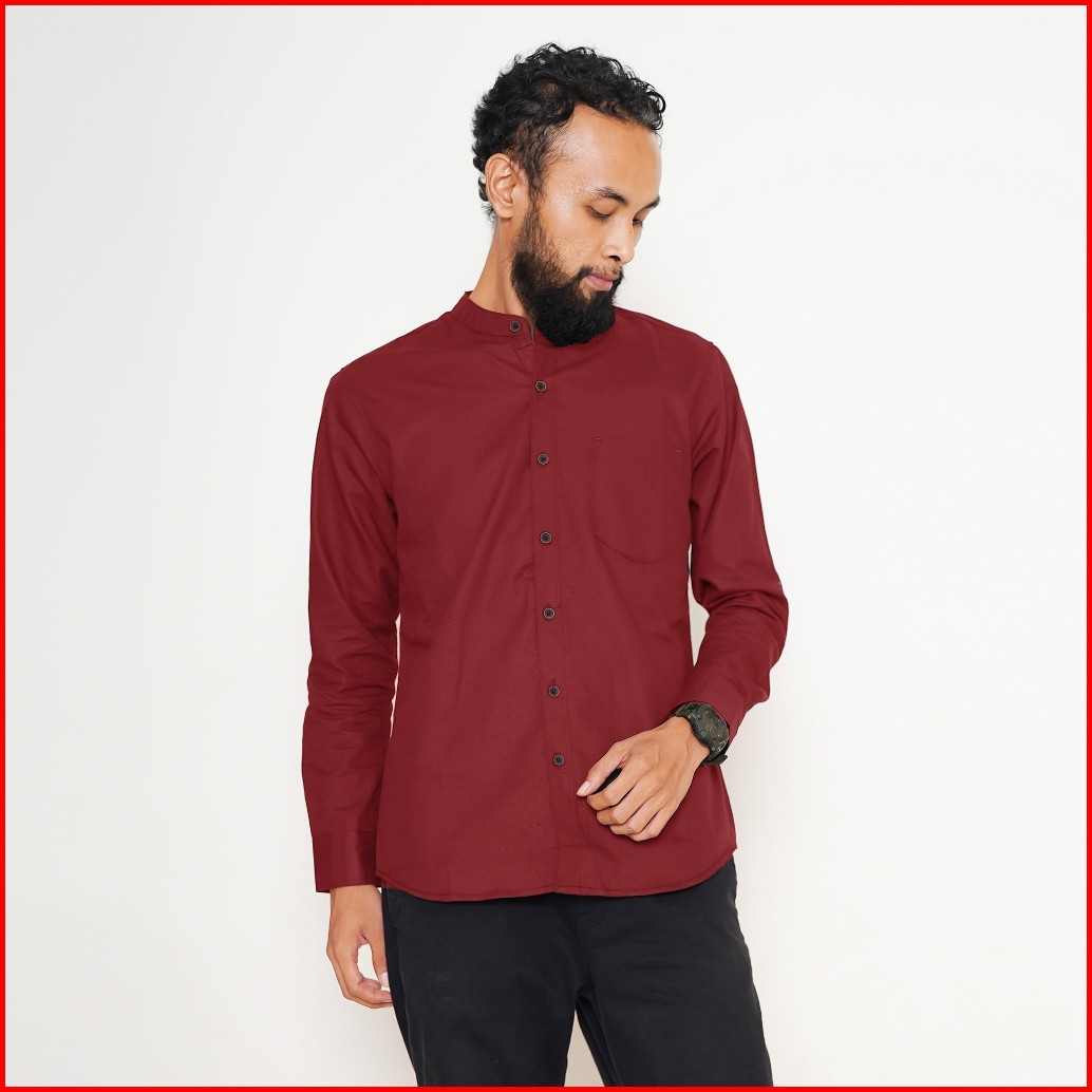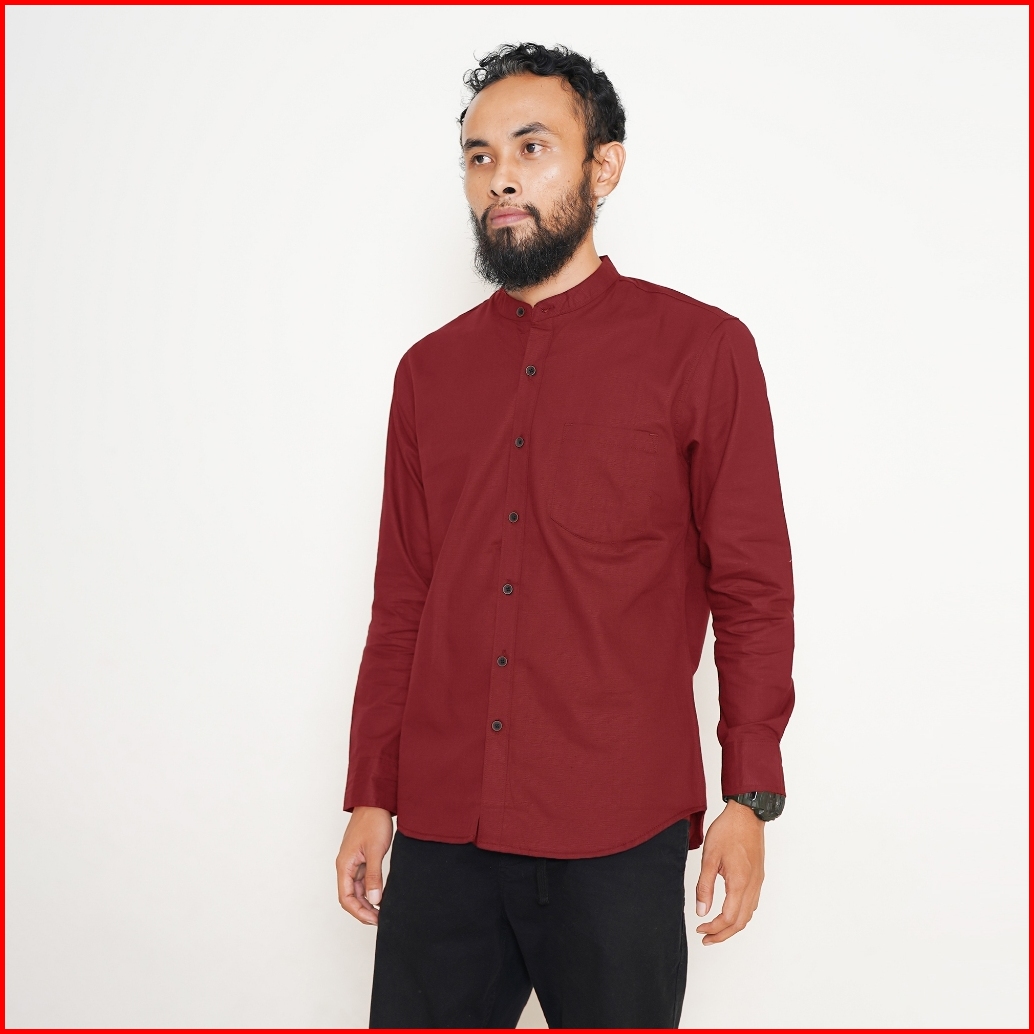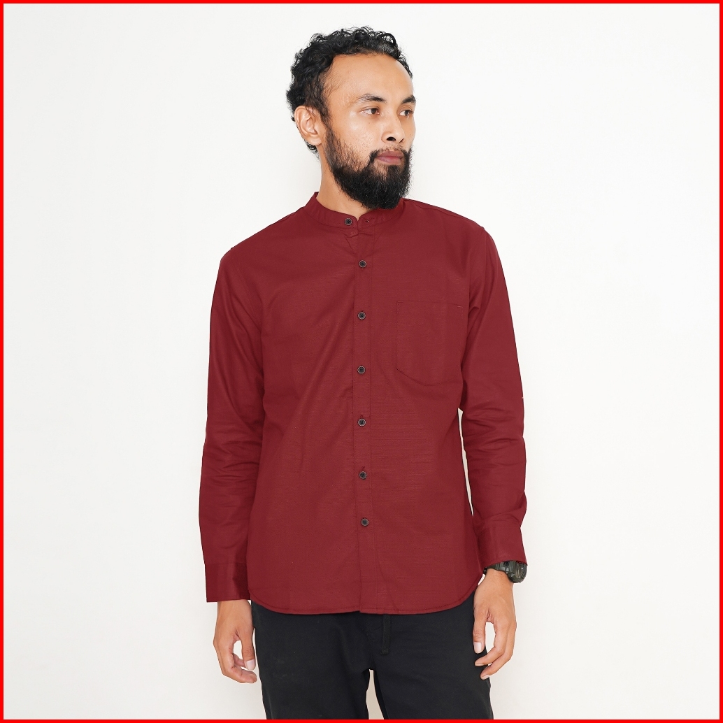 Bonang In Style - Kemeja Koko Kemko Polos Pria Lengan Panjang Bahan Katun Warna Hitam