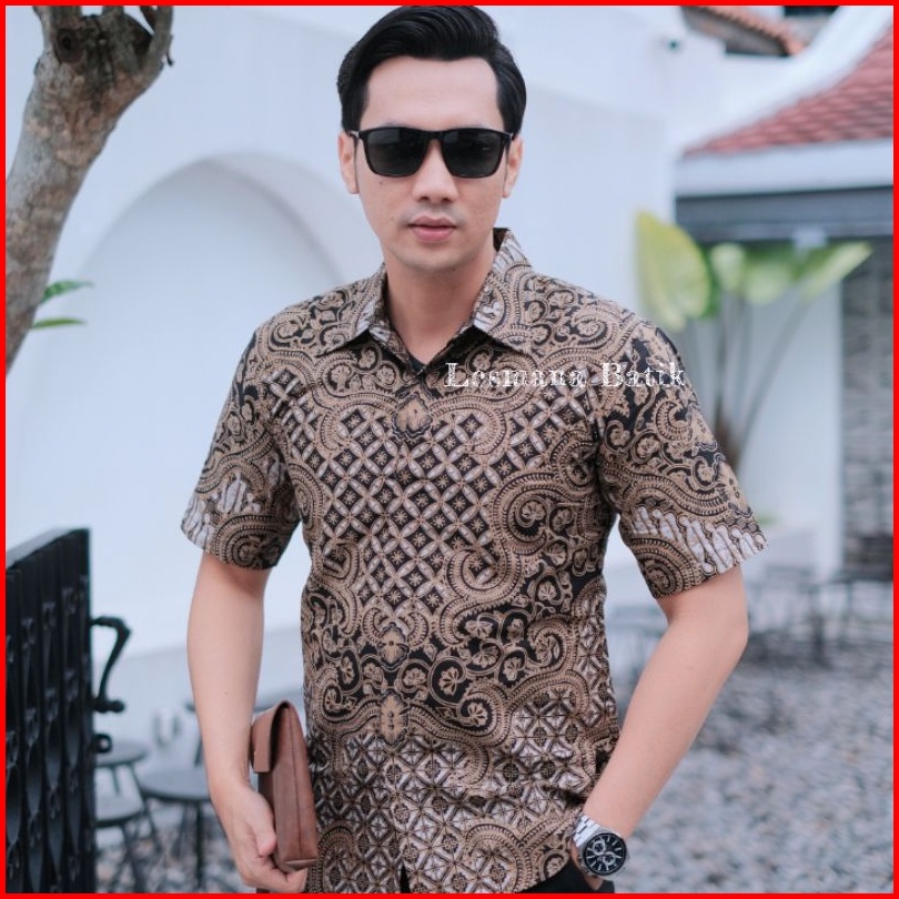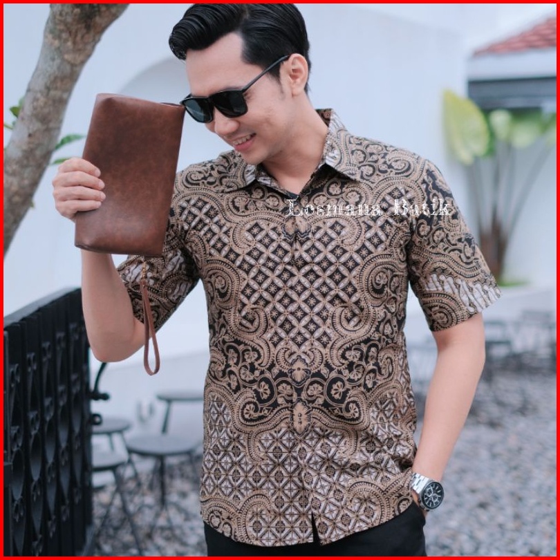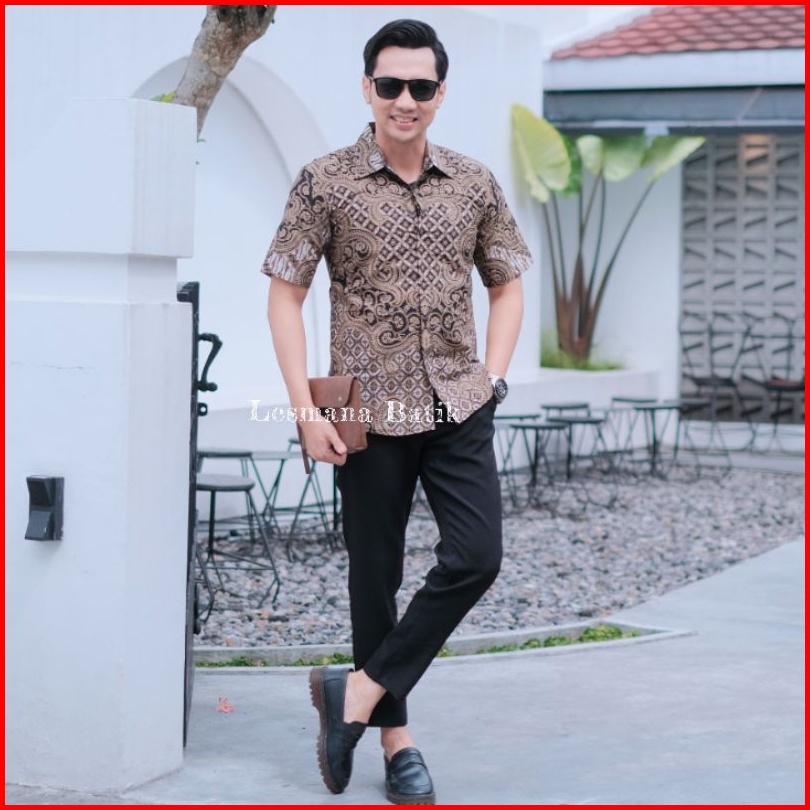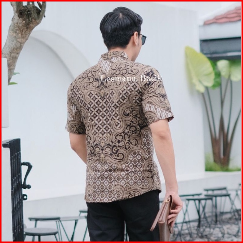 Baju Kemeja Batik Pria Lengan Pendek Modern Premium Slimfit Katun Lapis Furing