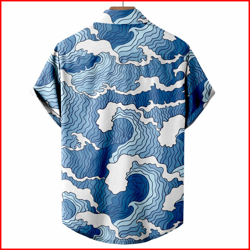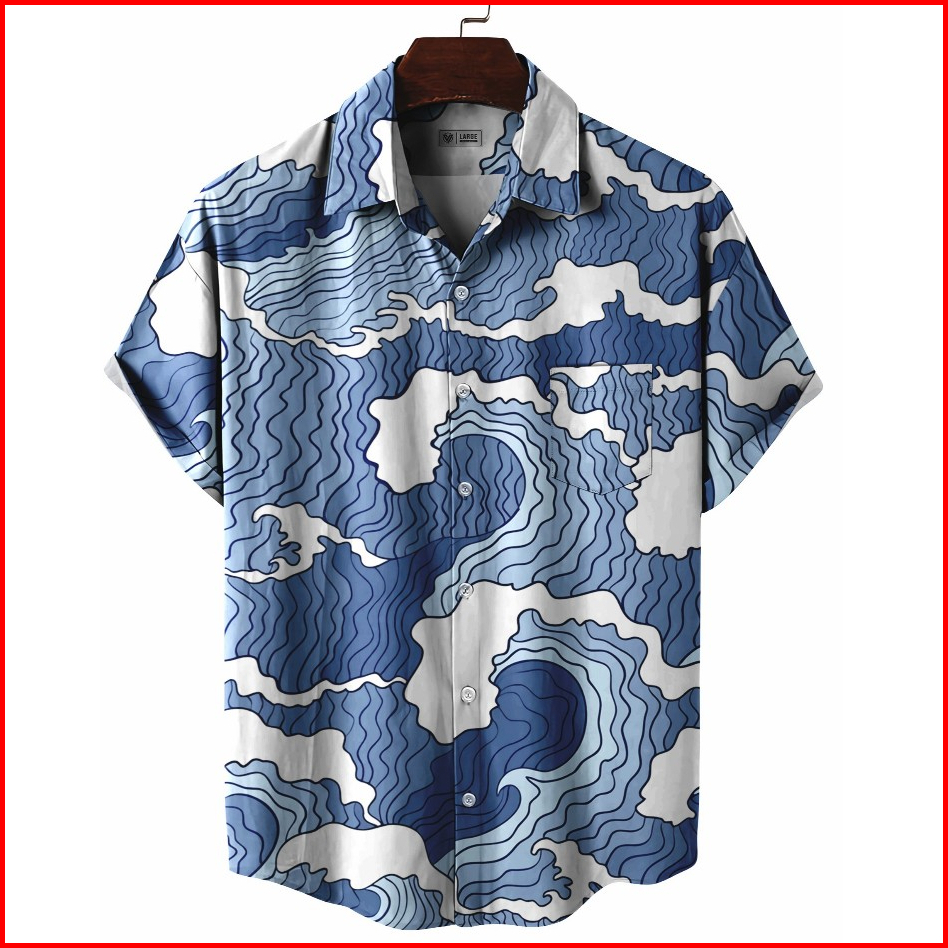 Kemeja Pria Premium Hem Atasan Kemeja Baju Laki-laki Kemeja Motif Bluece Wave