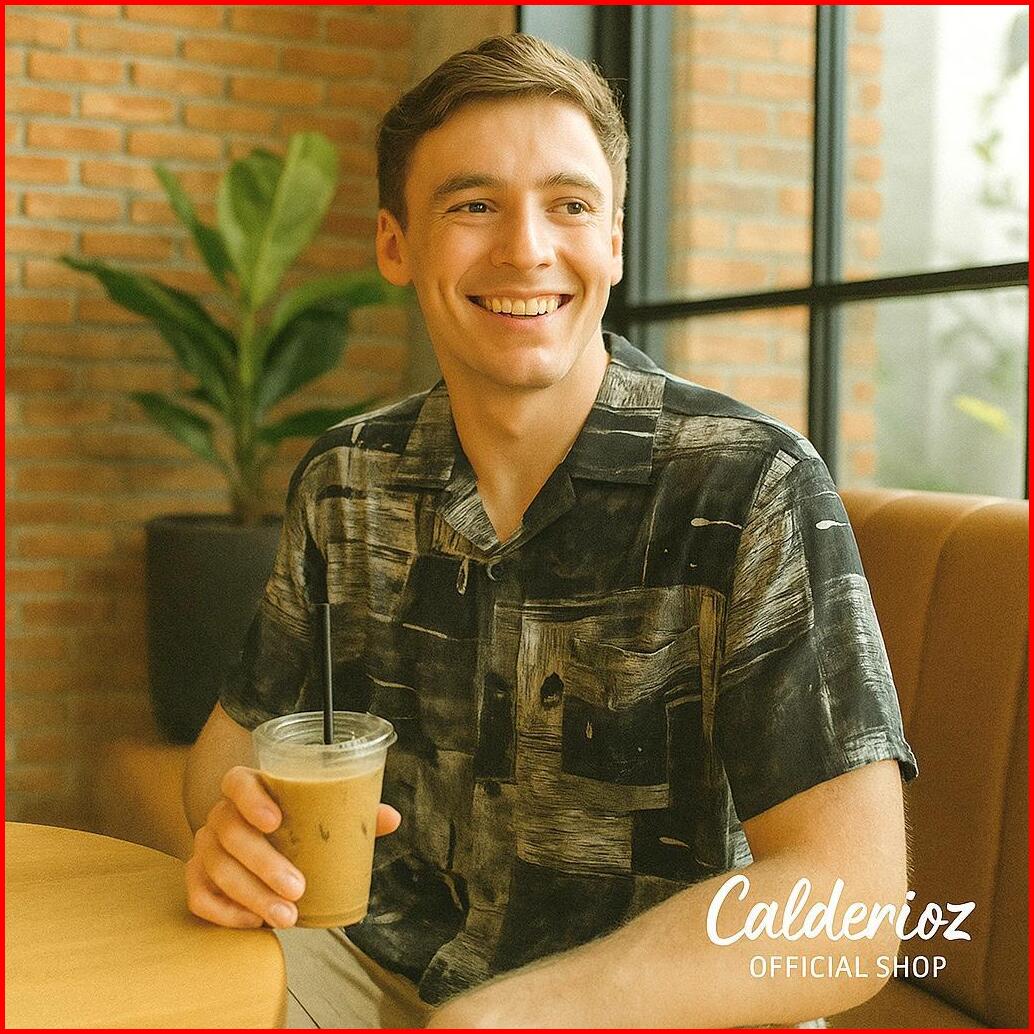 Calderioz - Kemeja Santai Hat Abstract Lengan Pendek Pria Wanita Outfit Nongkrong Summer Unisex