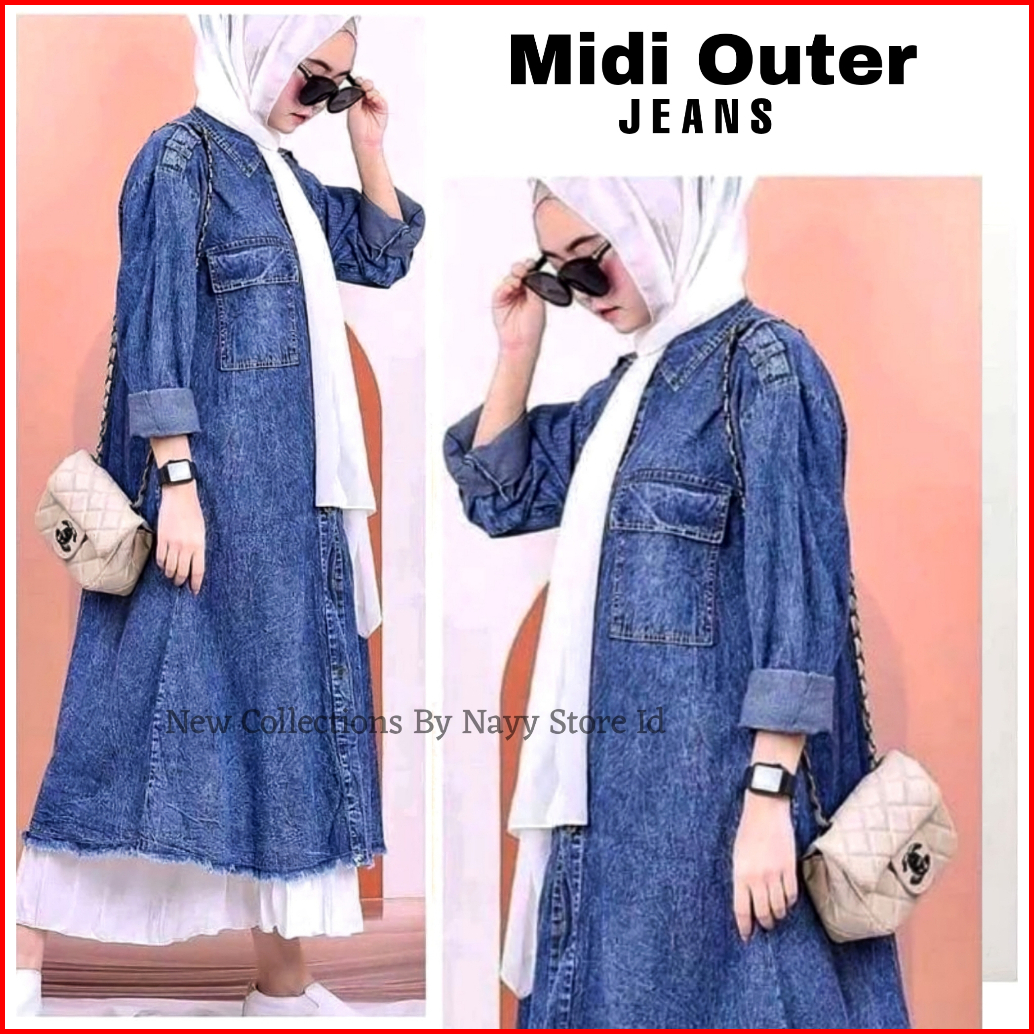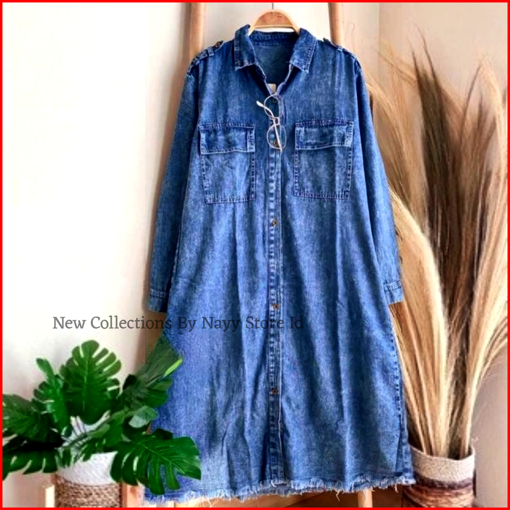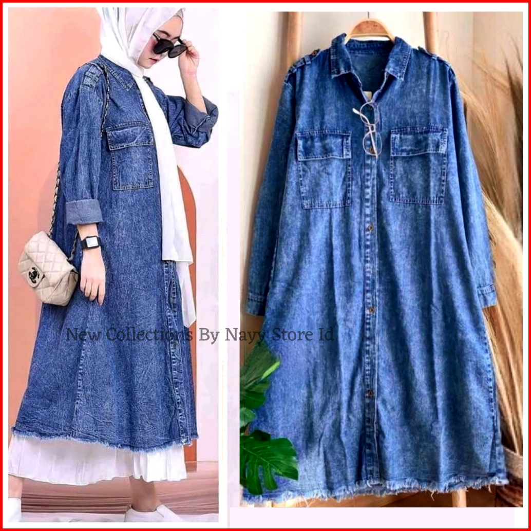 Baju Midi Outer Tunik Jeans Premium Atasan Denim Wanita Terbaru 2025 Ld 110 P 110 Motif Rawis Simple Cantik Fashion Musl