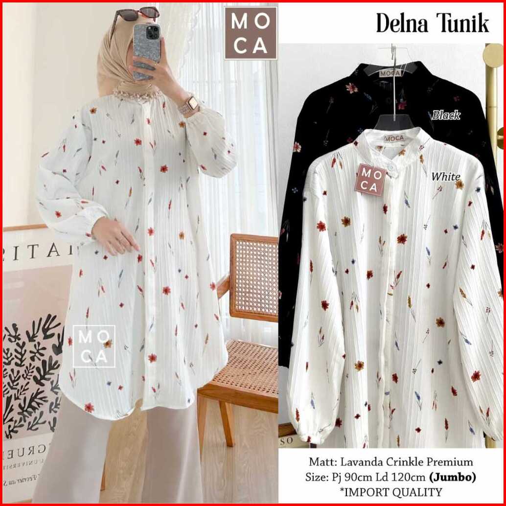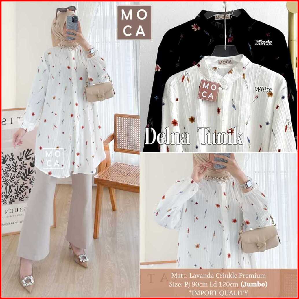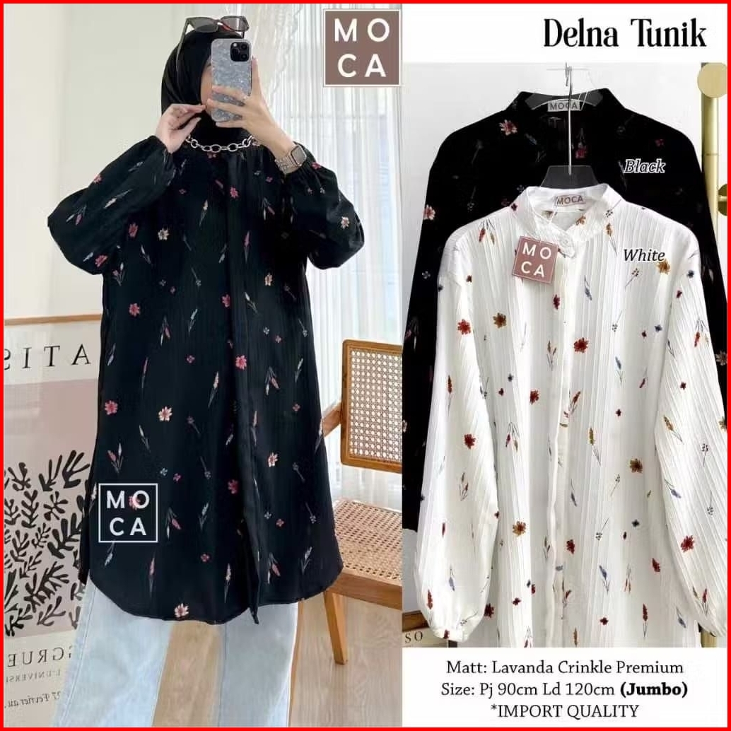Delna Tunik By Moca Ld 120 Allsize Tunik Jumbo Bigsize Motif Bunga Bahan Lavanda Crinkle Premium Busui Friendly
