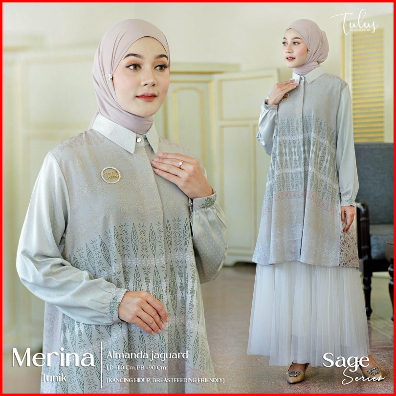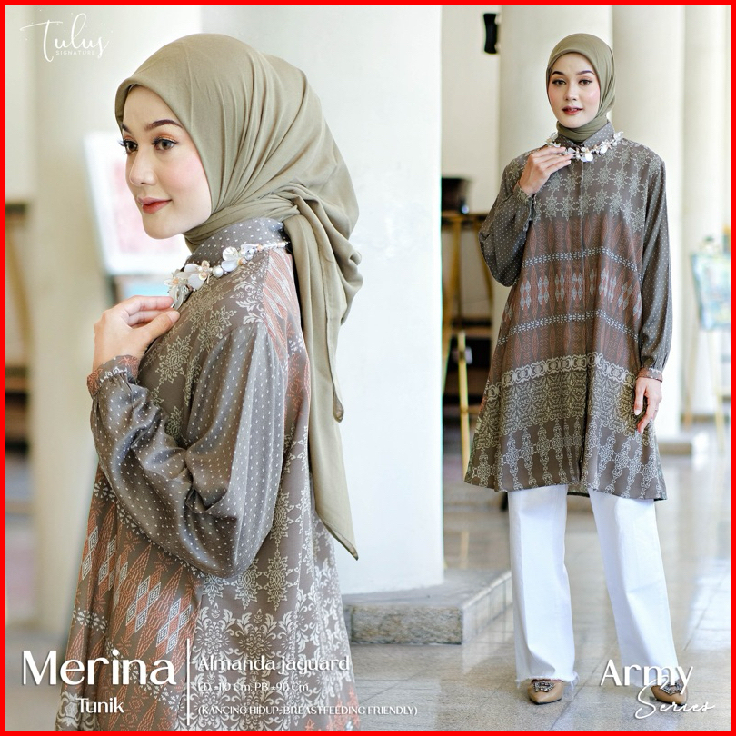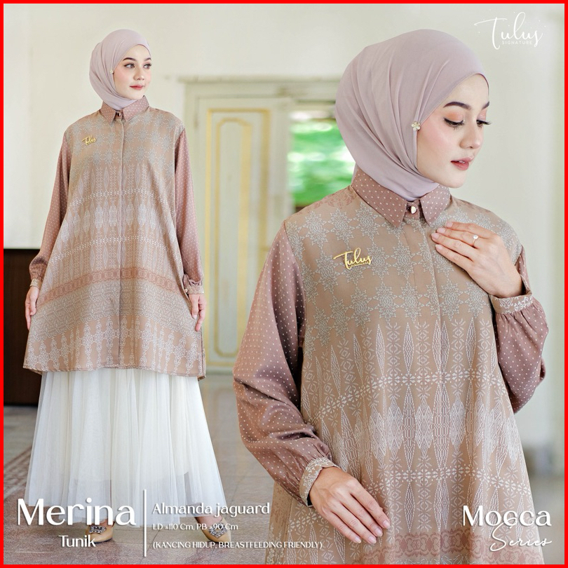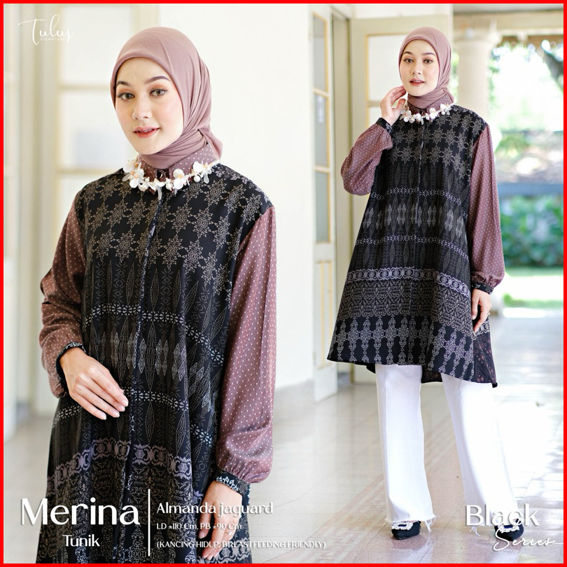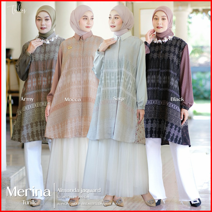 Vican Tulus Signature Merina Tunik Blouse Atasan Wanita Terbaru Motif Bunga Bahan Rayon Viscose Crinkle Busui Kancing Ak
