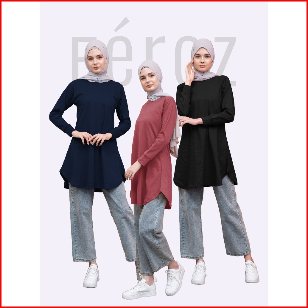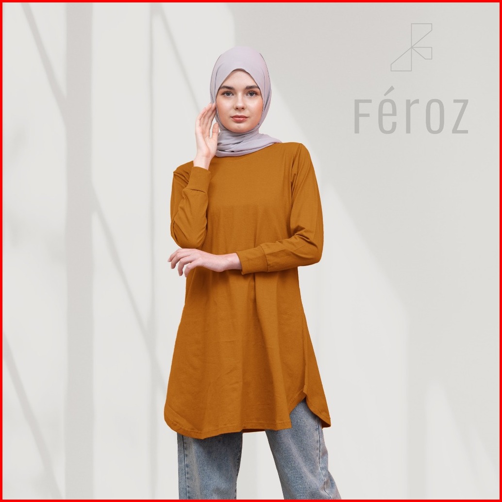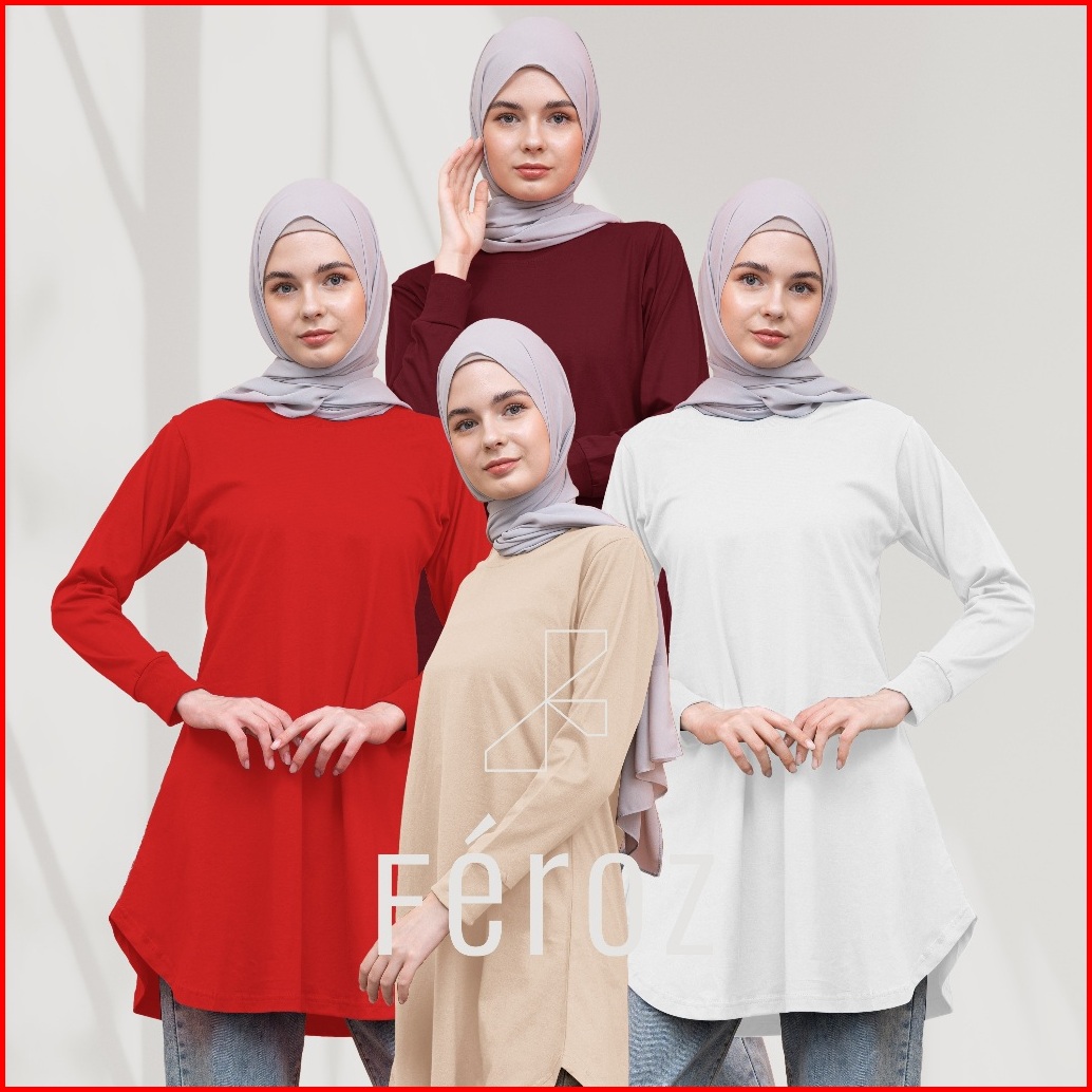 Feroz Clothing - Kaos Tunik Wanita Polos Model Bawah Oval Cotton Combed 24s