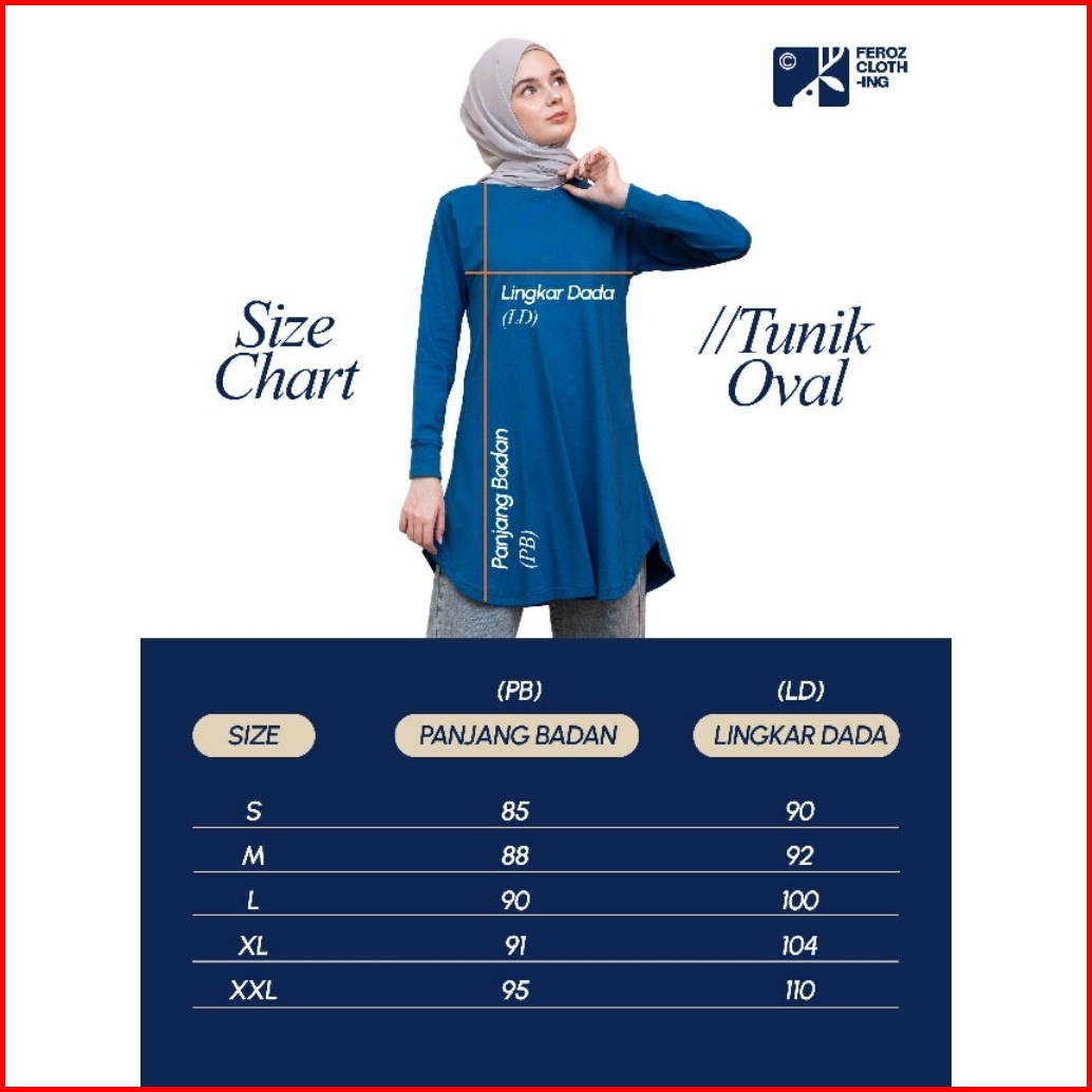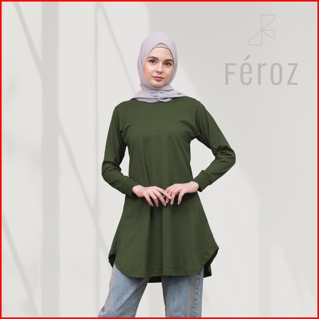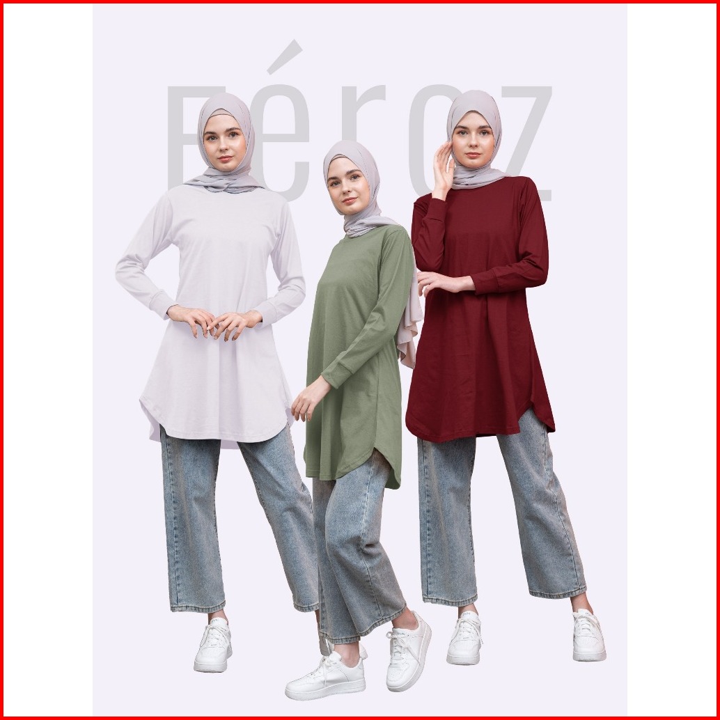 Feroz Clothing - Kaos Tunik Wanita Polos Model Bawah Oval Cotton Combed 24s