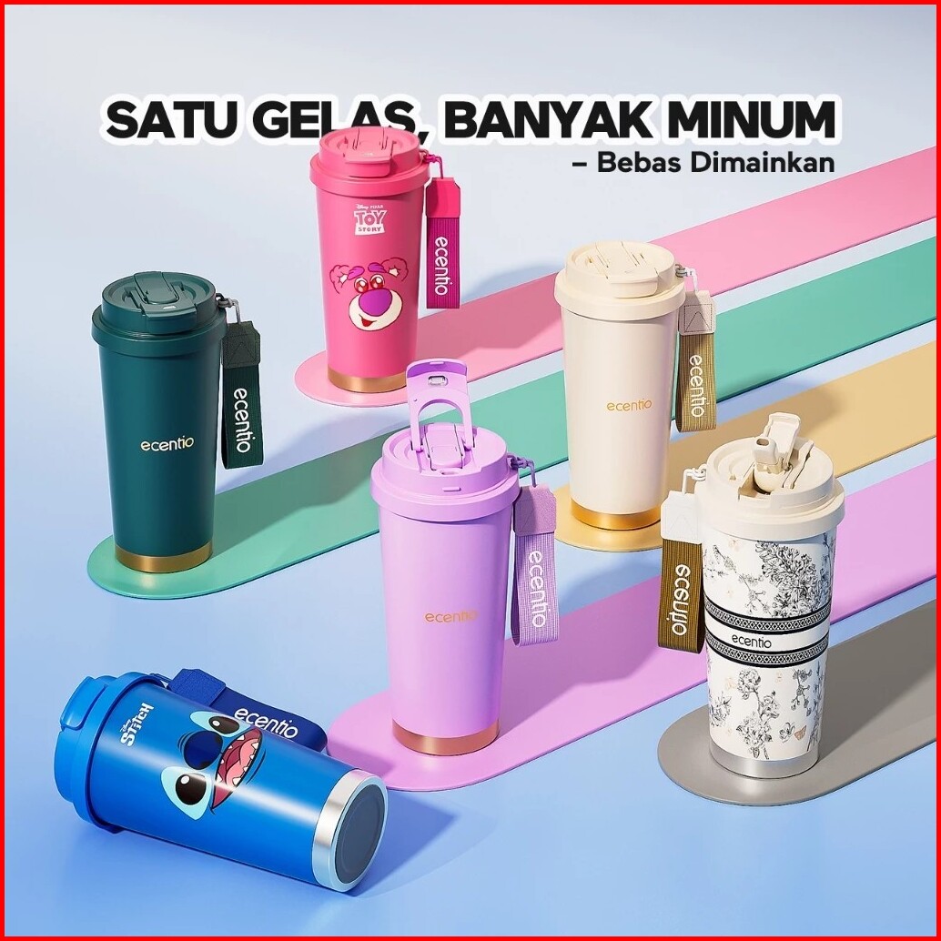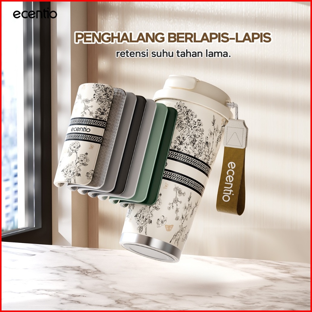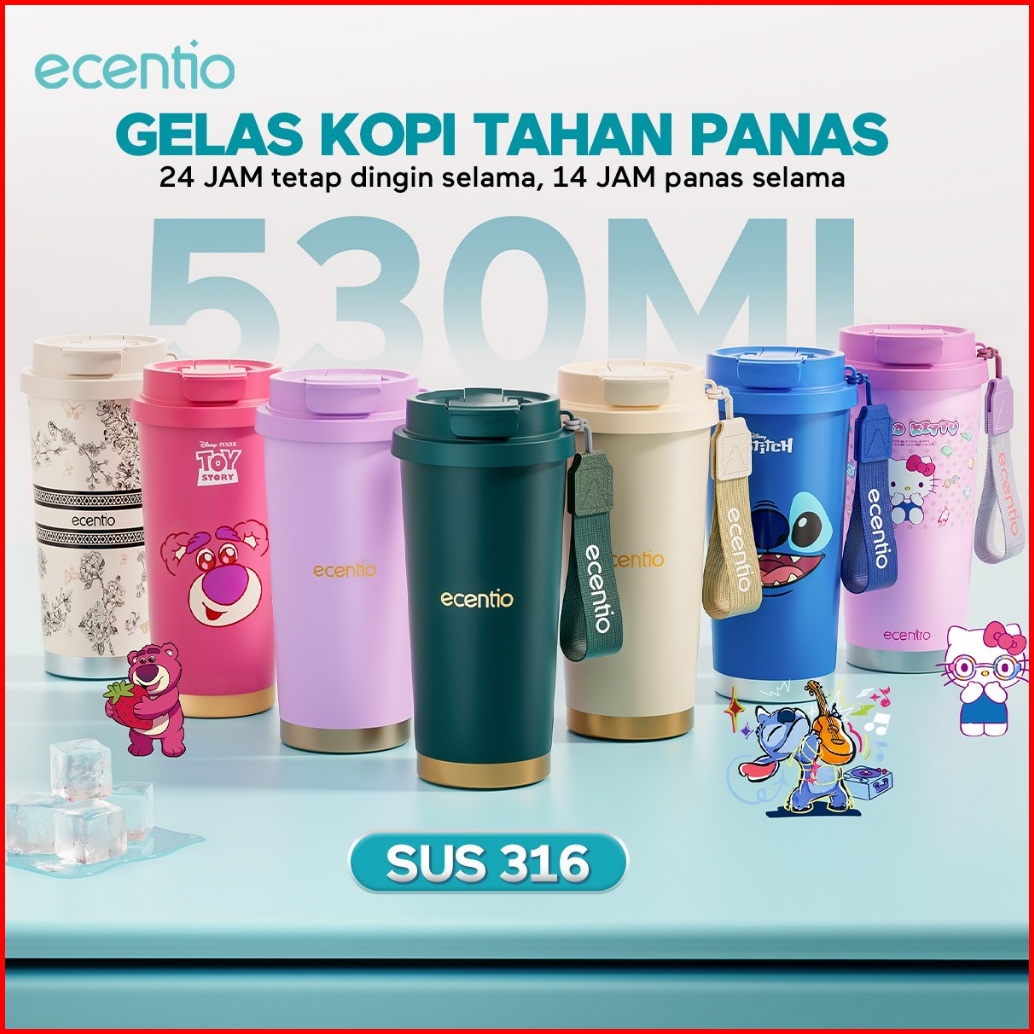 Ecentio Tumbler Minum Aesthetic Botol Minum Portable Premium Tahan Dingin 24 Jam 530ml Tumbler Stainless 316 Mug Kopi Ta