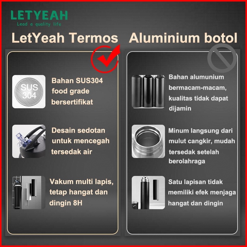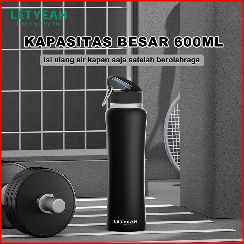 Letyeah Tumbler Stainless 600ml Botol Minum Sedotan Anti Bocor Vacuum