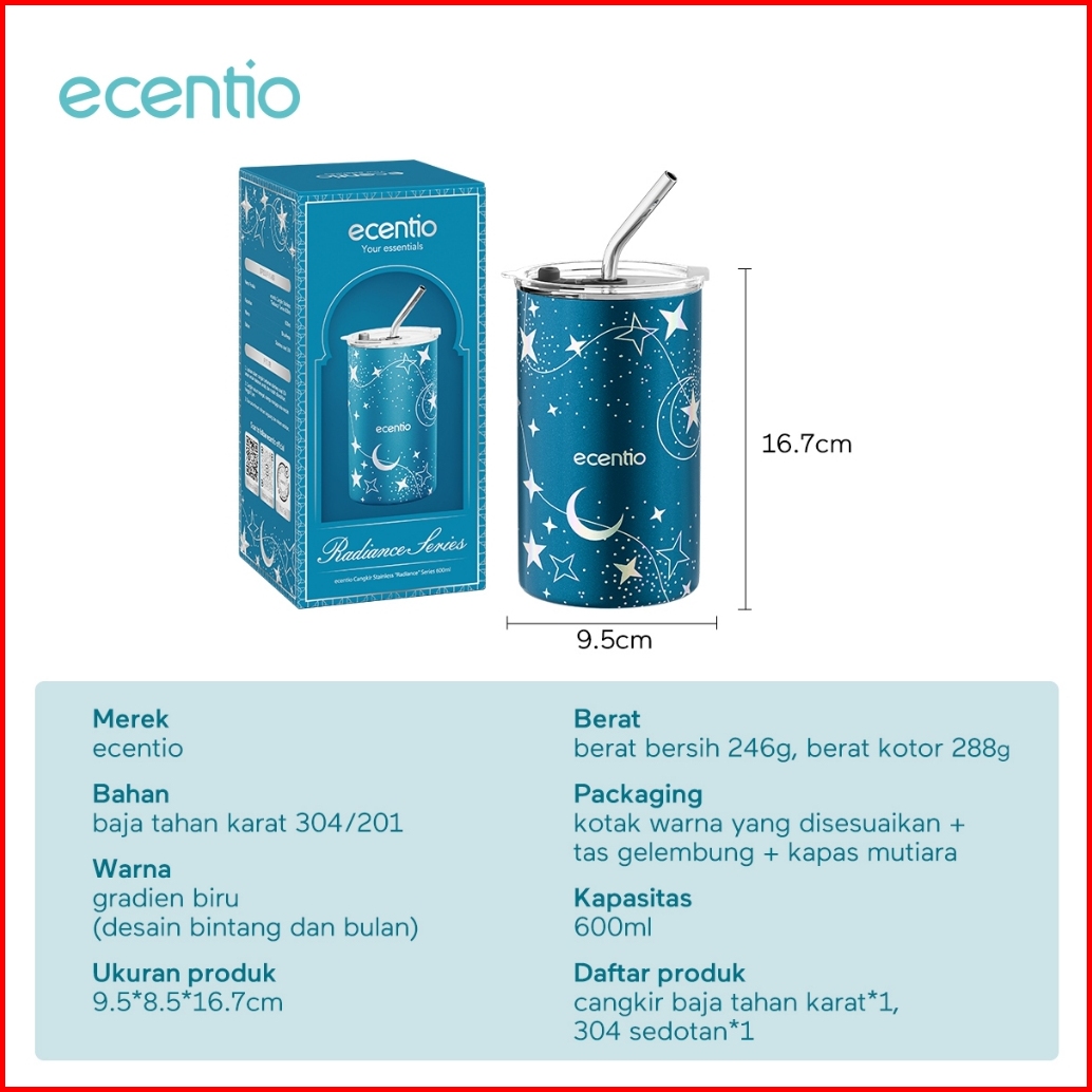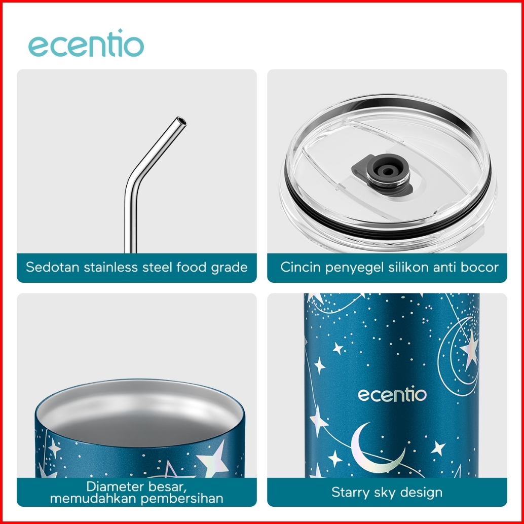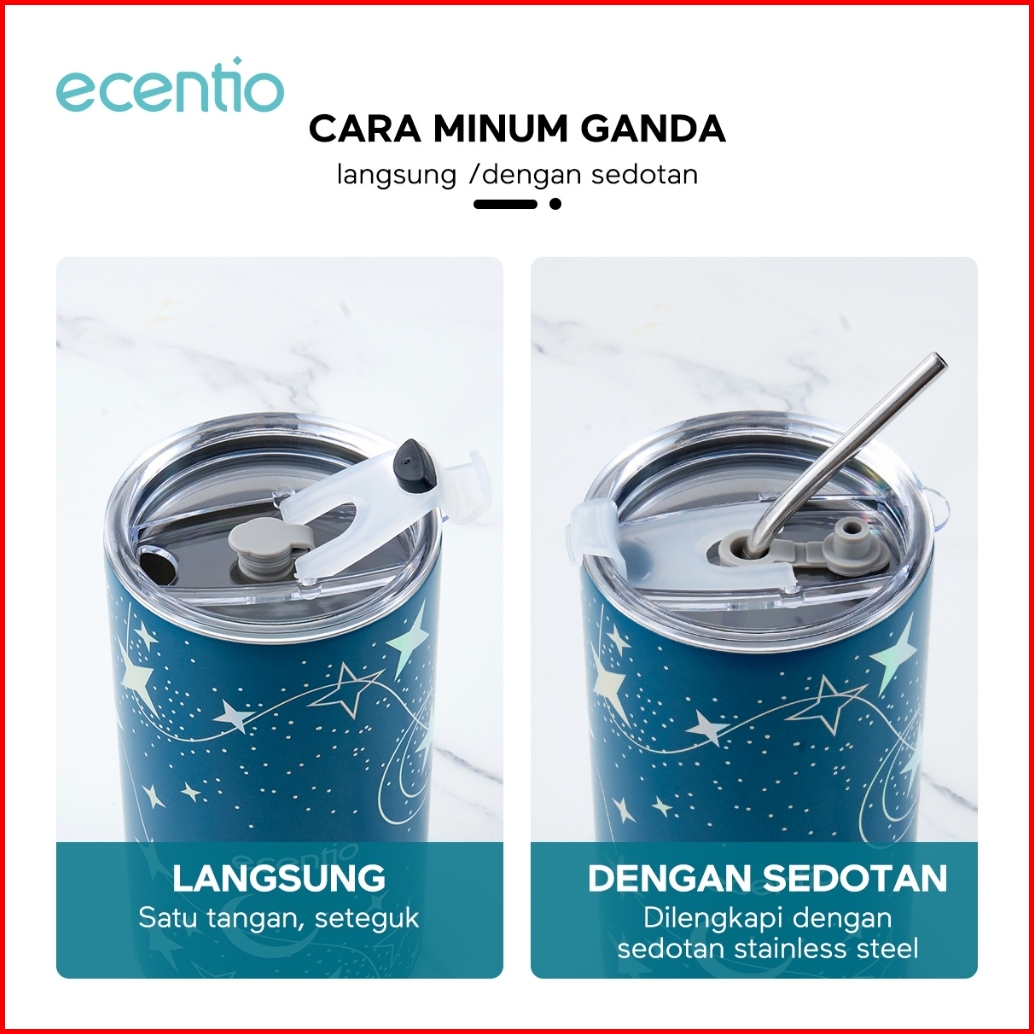 Ecentio Tumbler Stainless Steel Coffee Tea 600ml Ramadan Aesthetic Botol Minum Kopi Teh Gelas Cup Estetik Simple Elegant