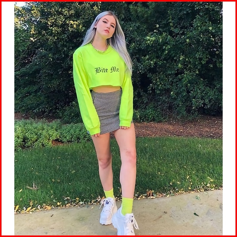 Sweater Jumper Hijau Neon Hijau Stabilo Bite Me Wanita S M L Xl 2xl 3xl 4xl 5xl 6xl Polos Model Crop Bigsize