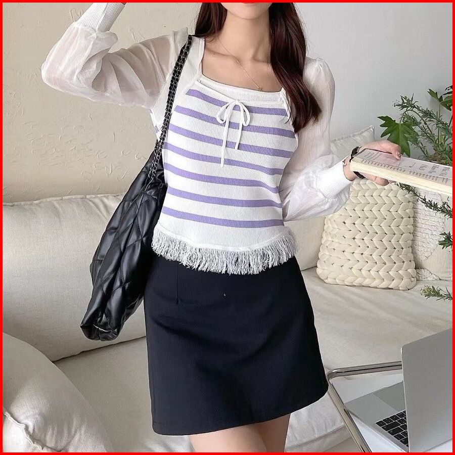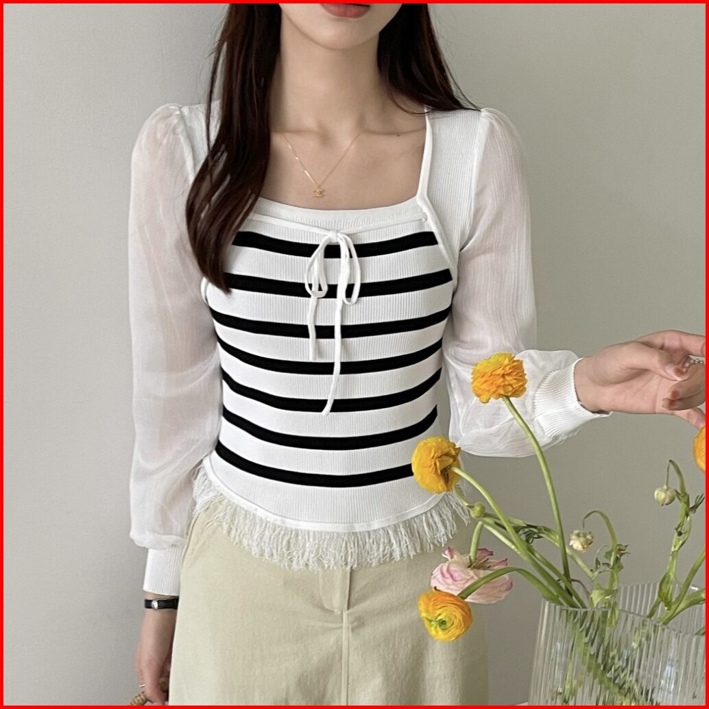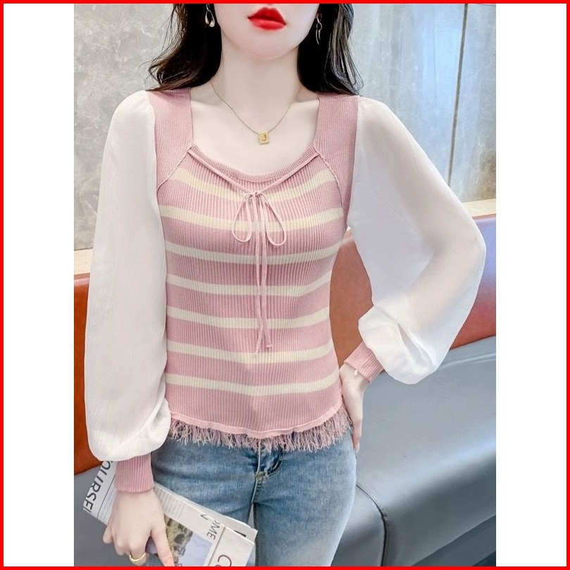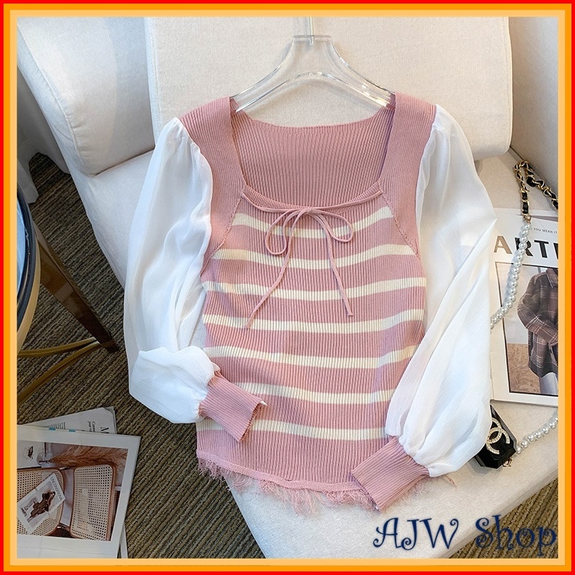 Ajw Blouse Wanita Kekinian Korean Style Rajut Lengan Panjang Import Premium Xac Atasan Blouse Rajut Wanita Korea Import