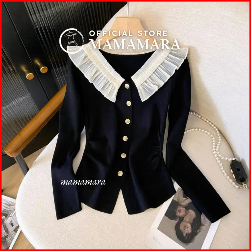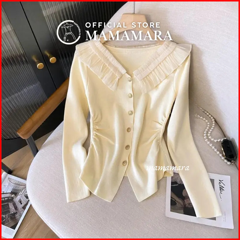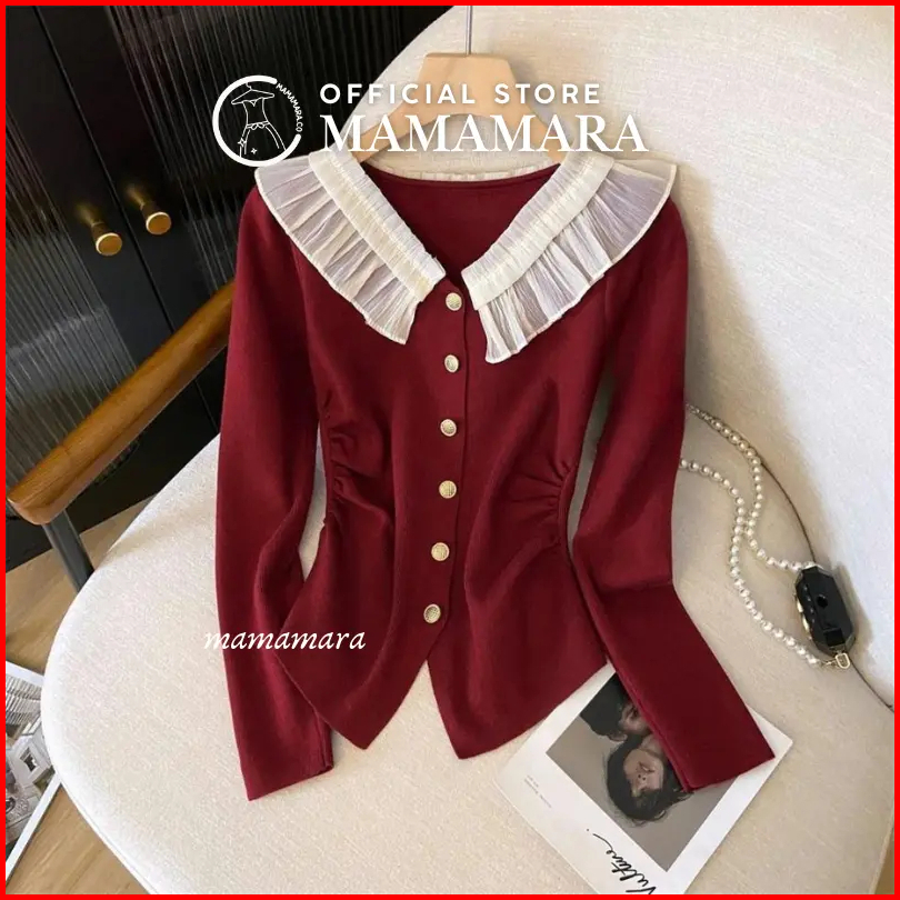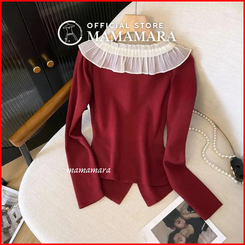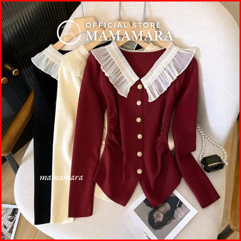Mamamara - Atasan Rajut Blouse Wanita Knitwear Kerah Renda Manis