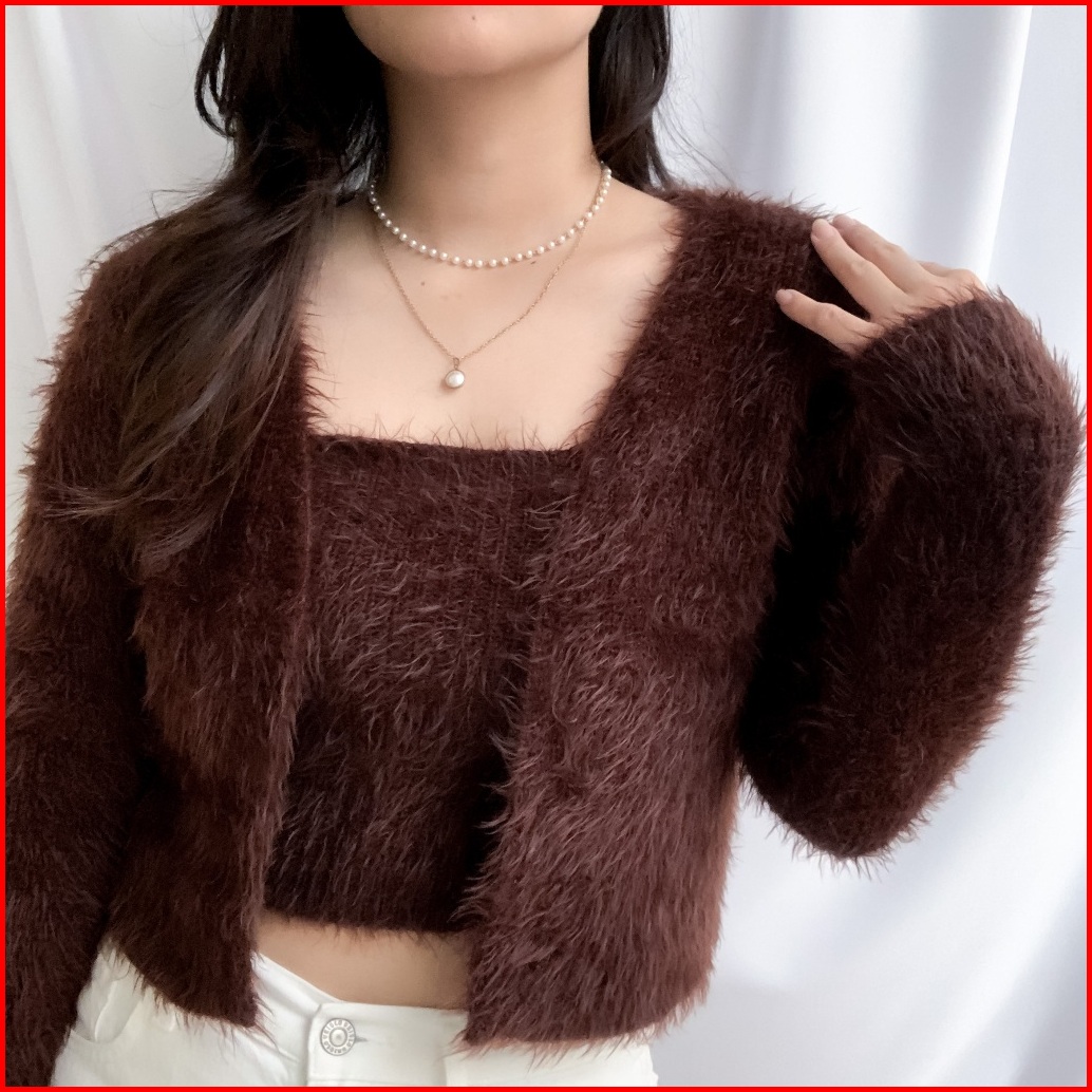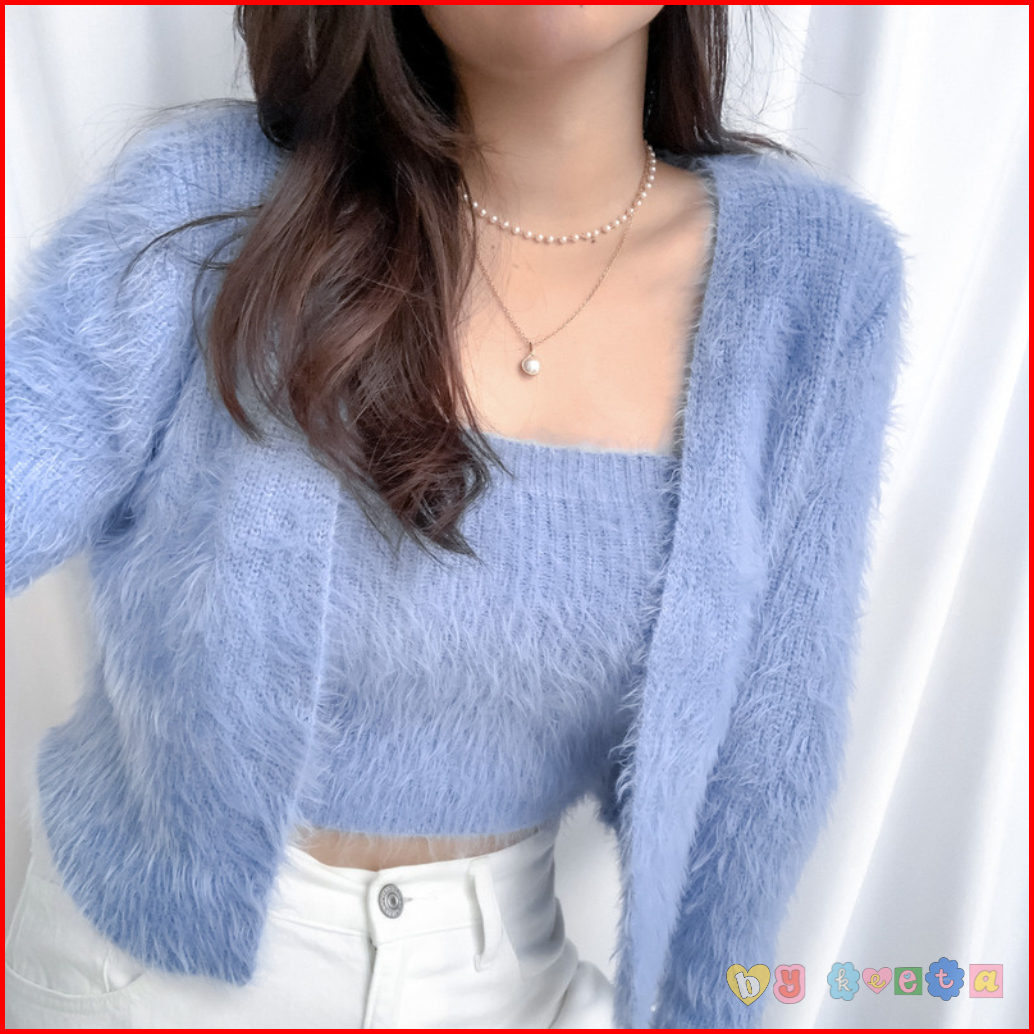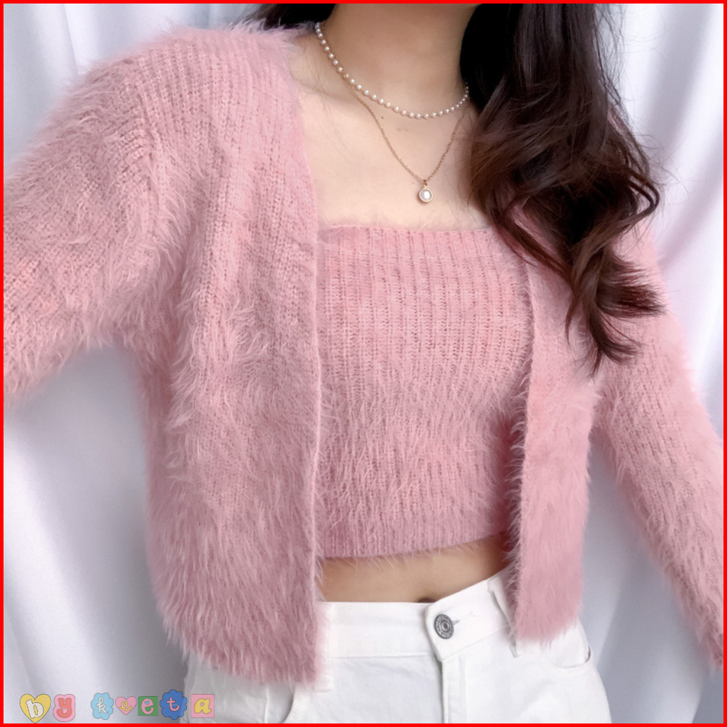 Bykeeta Naoko - Cardigan Bulu Sweater Tank Top Set Wol