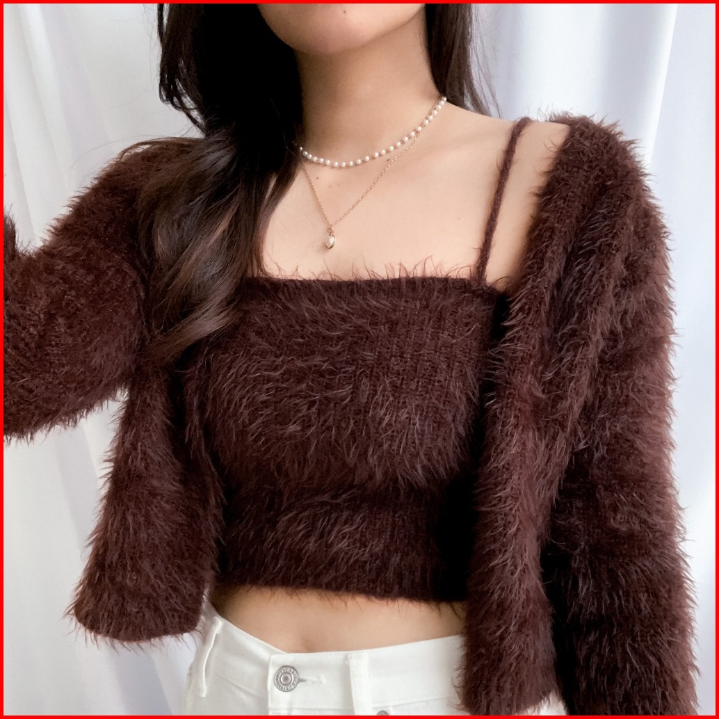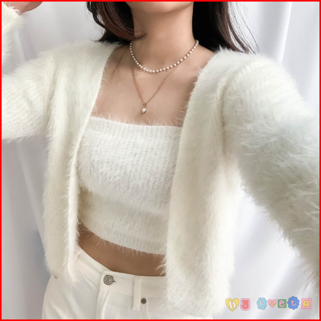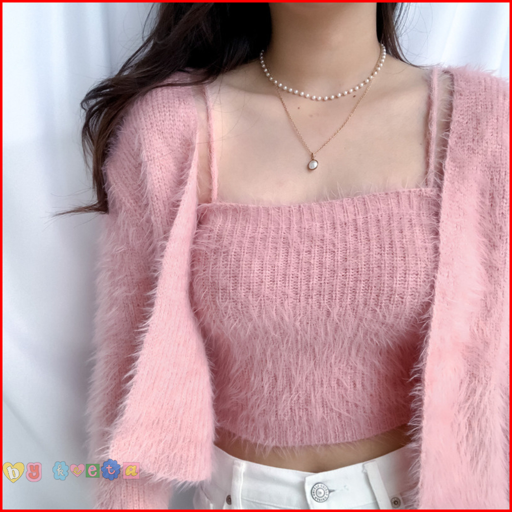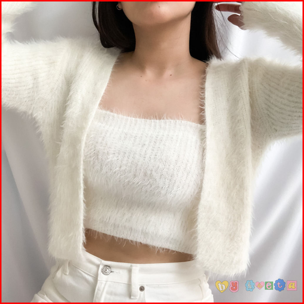 Bykeeta Naoko - Cardigan Bulu Sweater Tank Top Set Wol