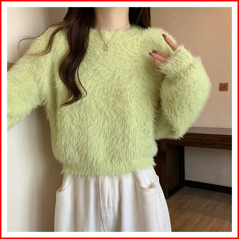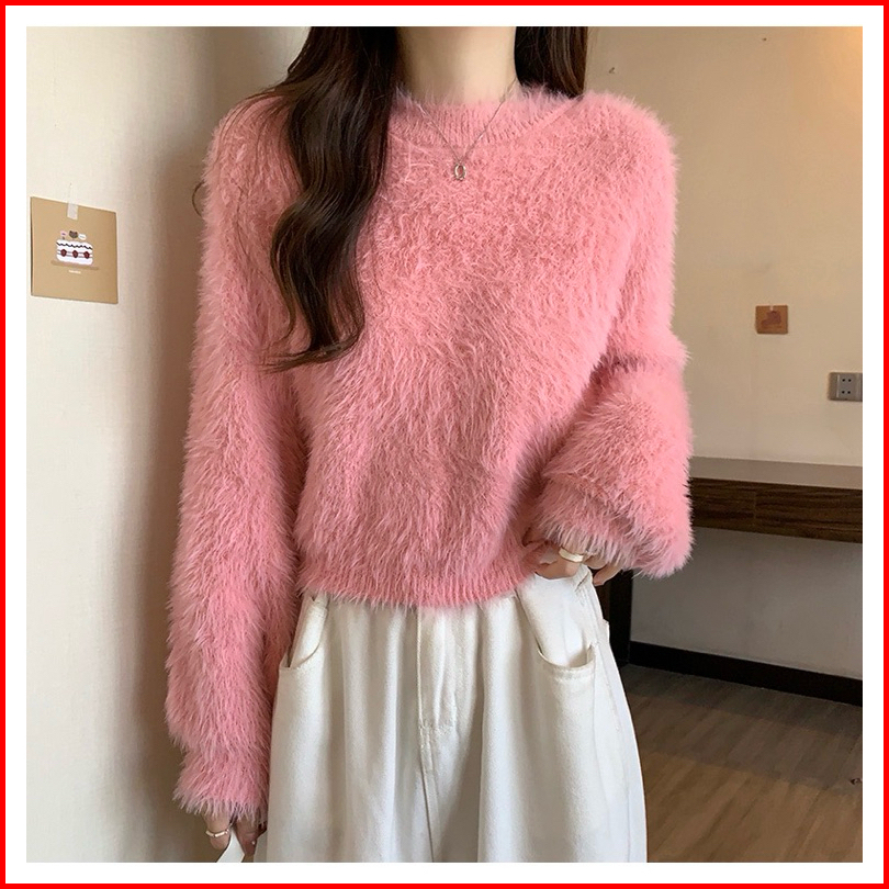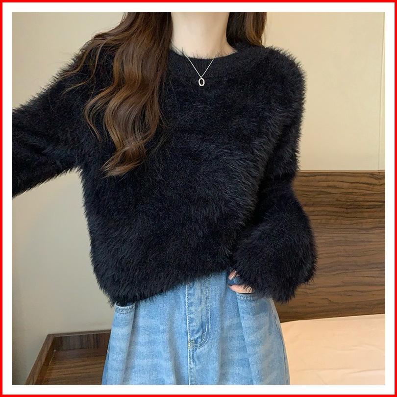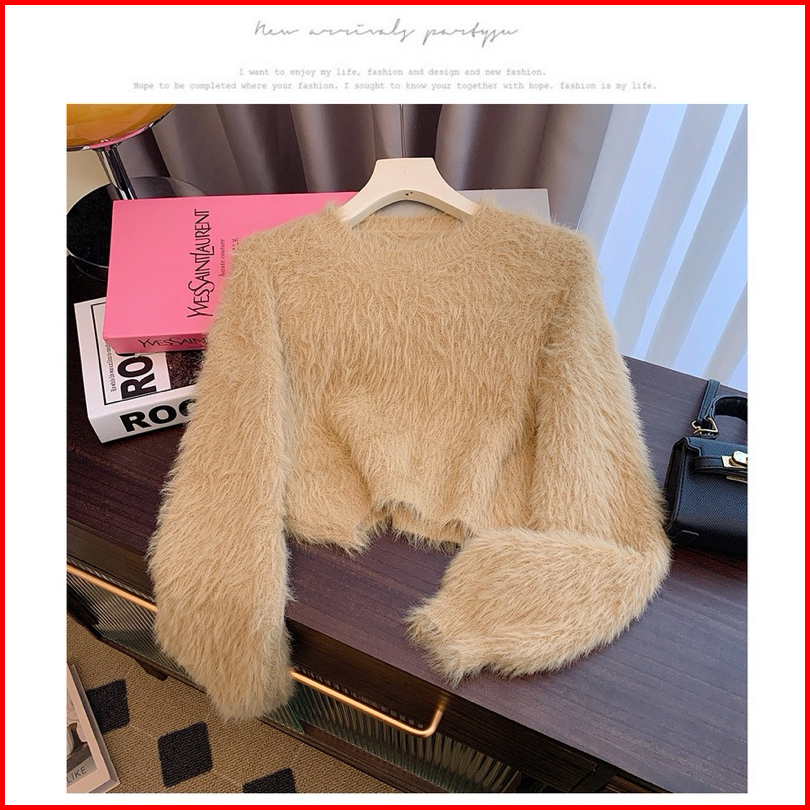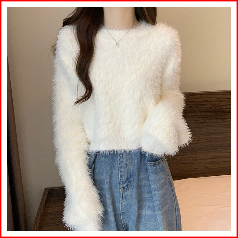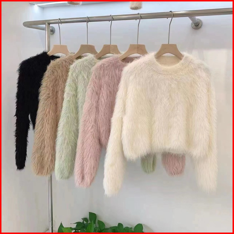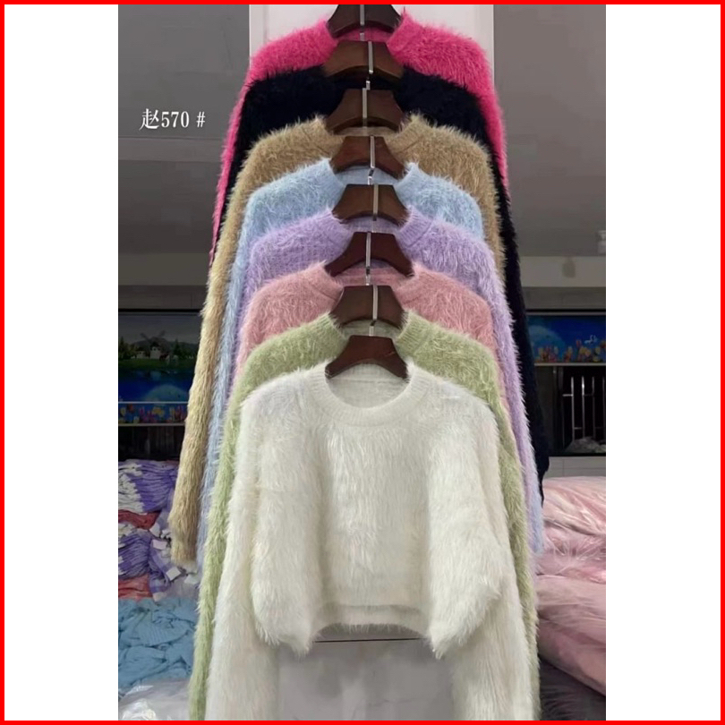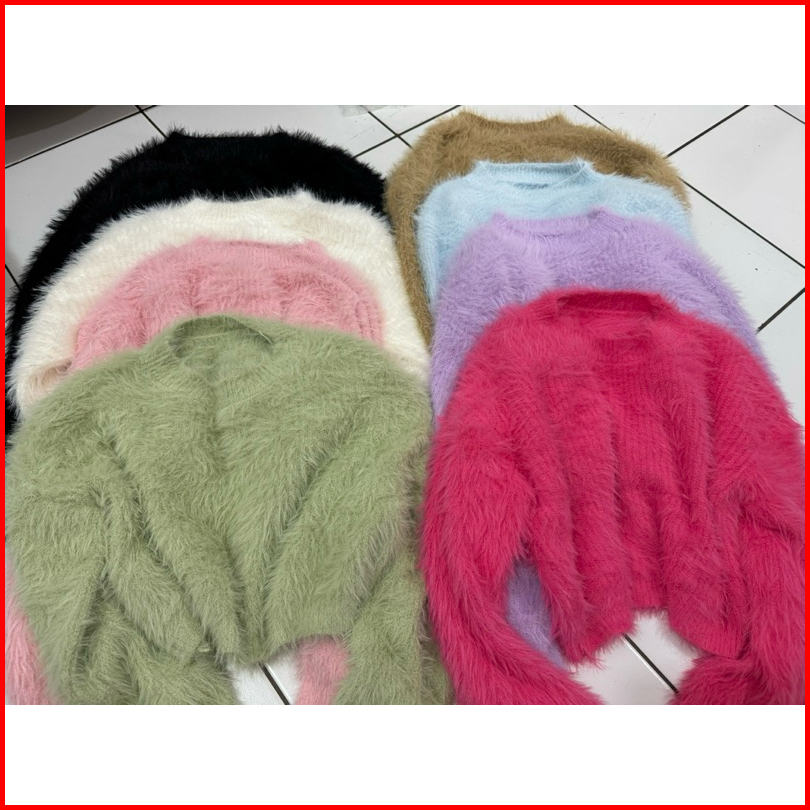 Tshirtgiants.id Crop Top Rajut Bulu Halus Fuzzy Polos 570