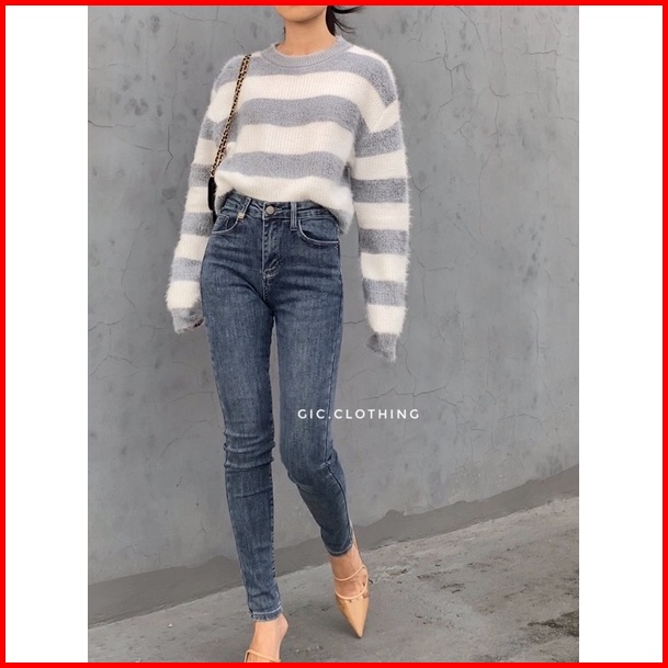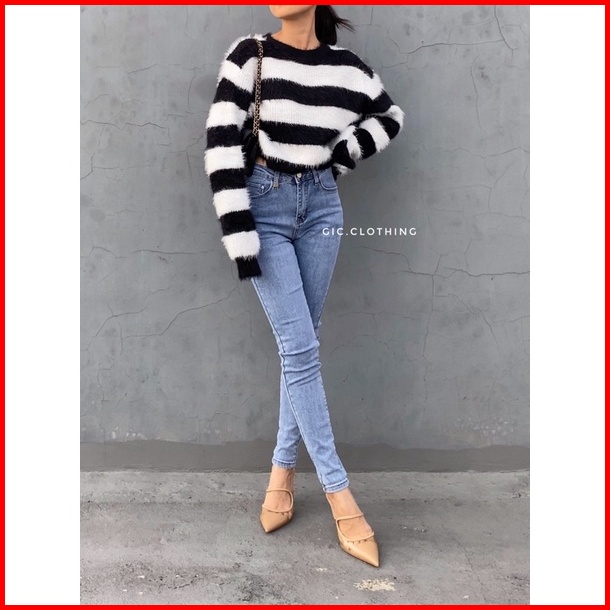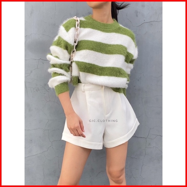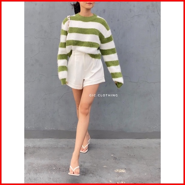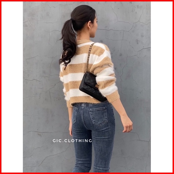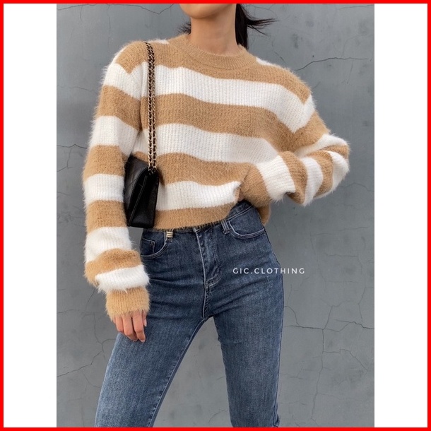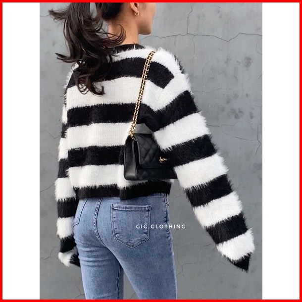 Gic Sammy Crop Sweater - Sweater Bulu Wanita Motif Garis