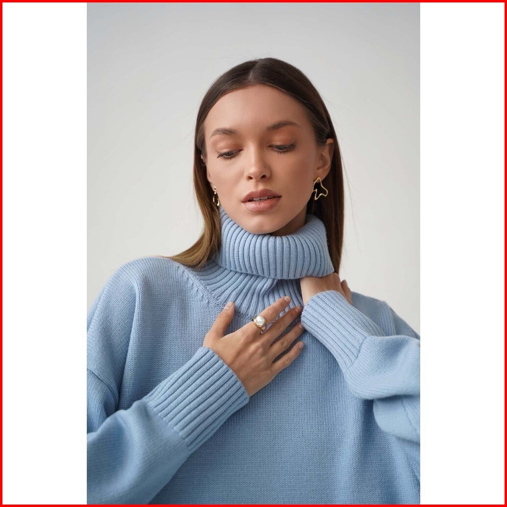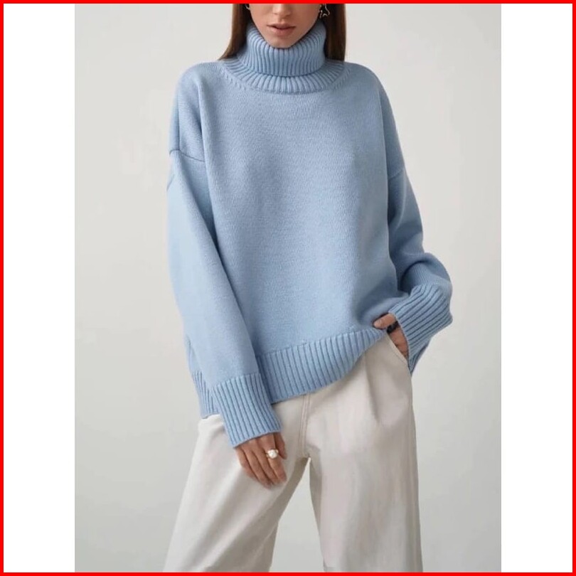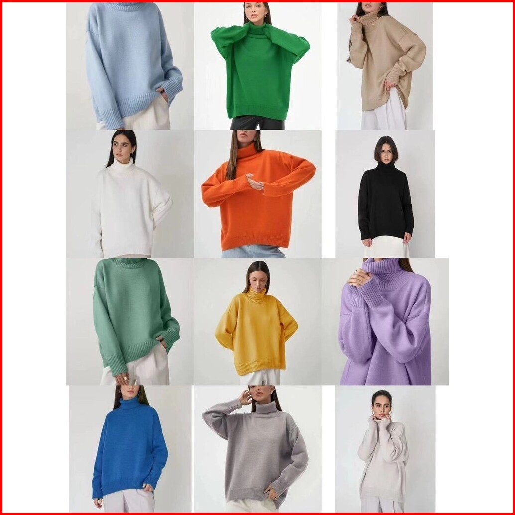 Michelle Woman Winter Turtleneck Knit Wool Blend Sweater Top Atasan Rajut Wanita Musim Dingin
