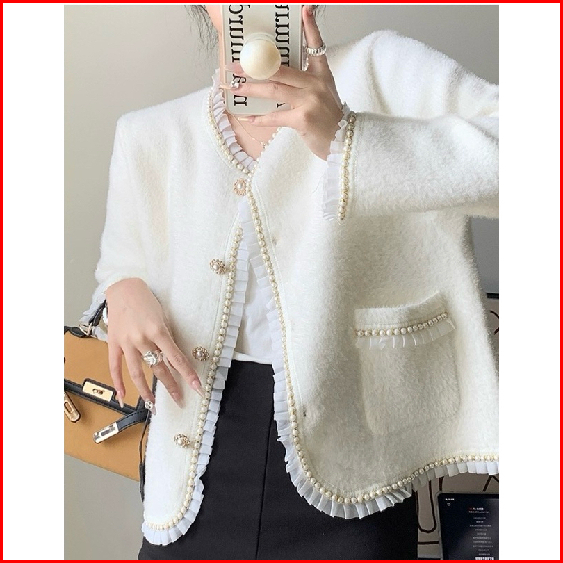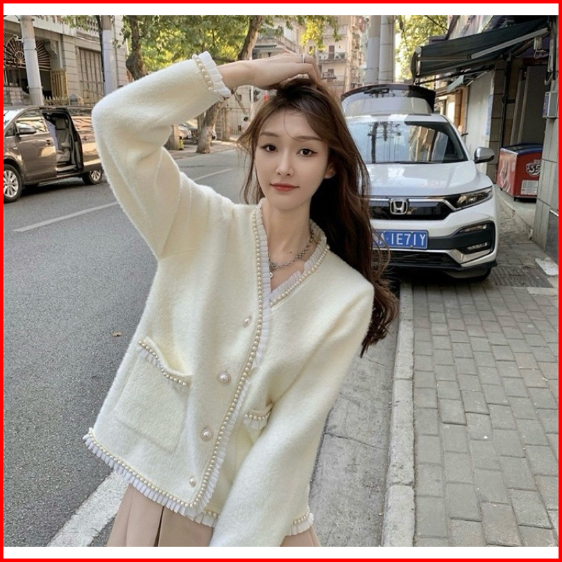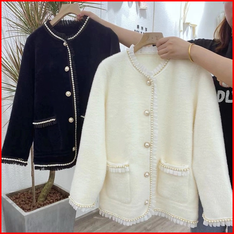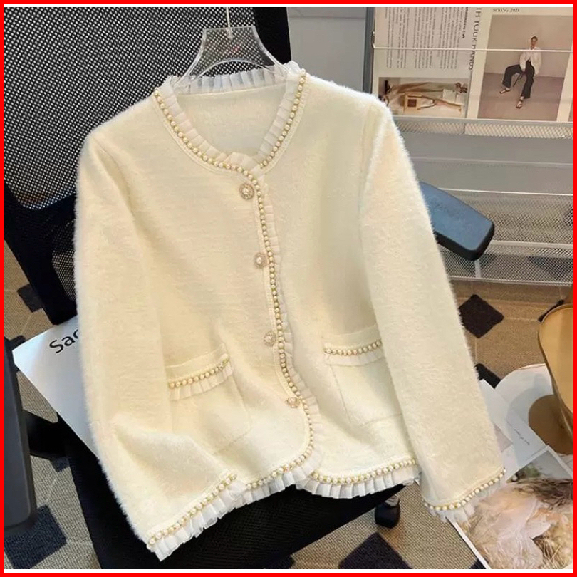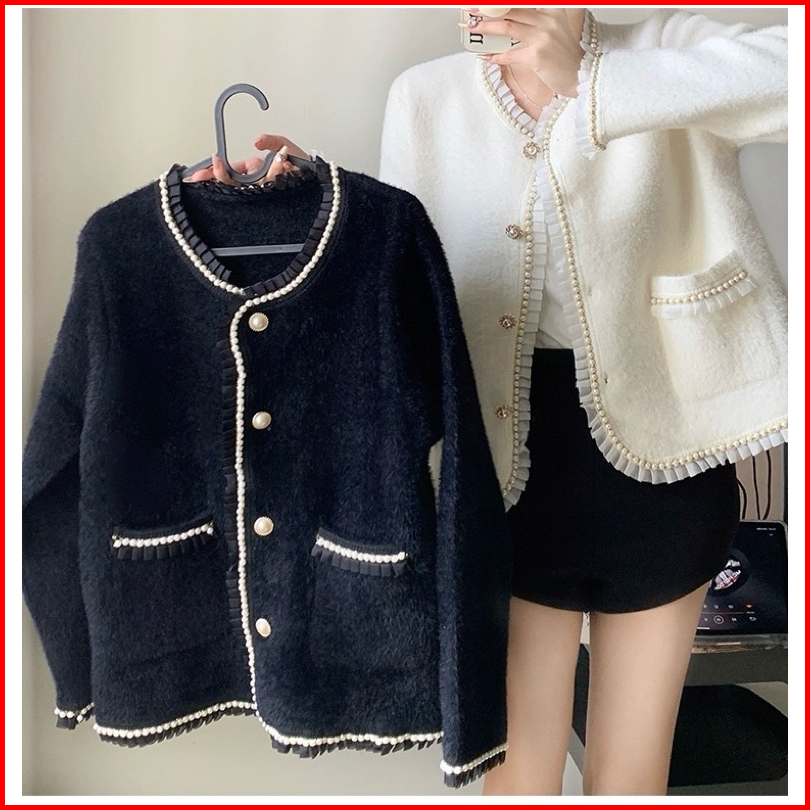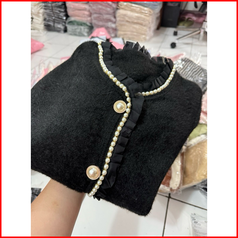 Tshirtgiants.id Cardigan Sweater Bulu Halus List Mutiara Renda 1089 Polos
