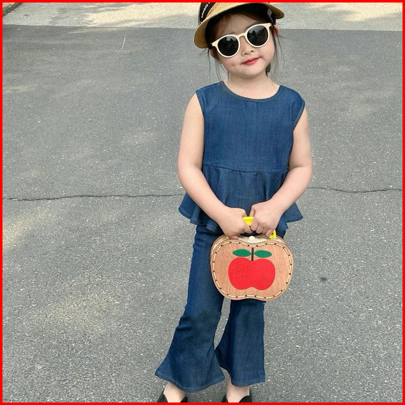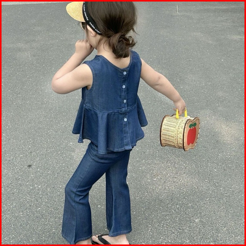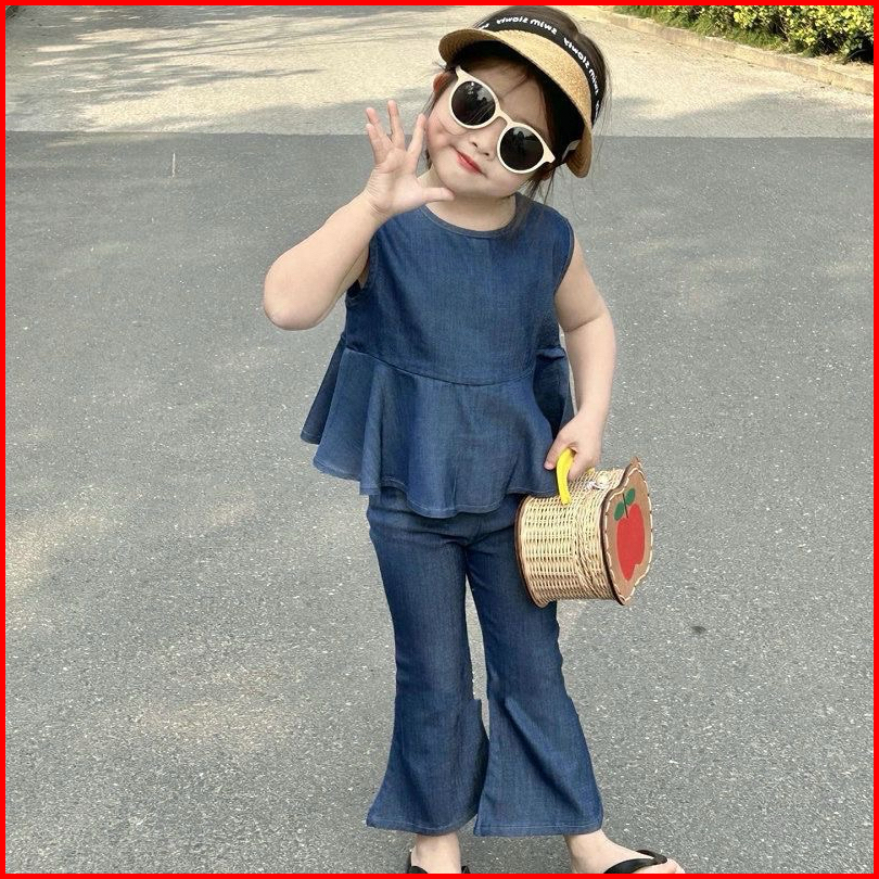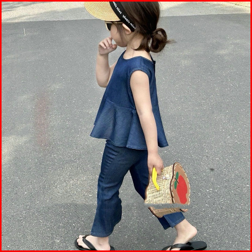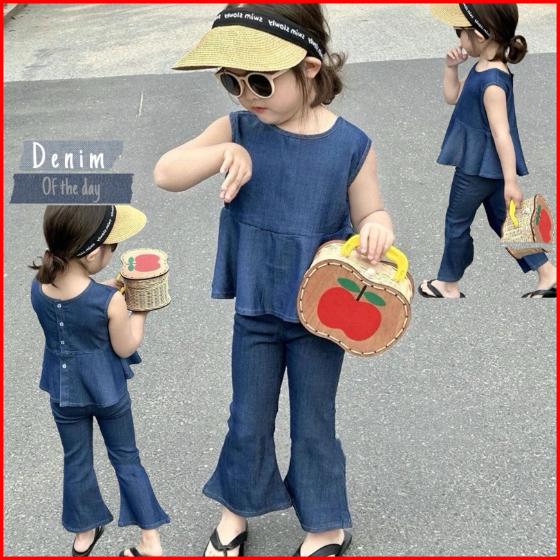 2-10tahun Setelan Celana Cutbray Denim Baju Anak Perempuan Korean Style Terbaru