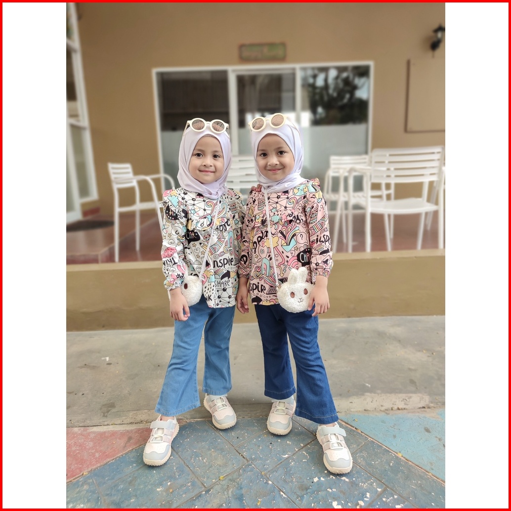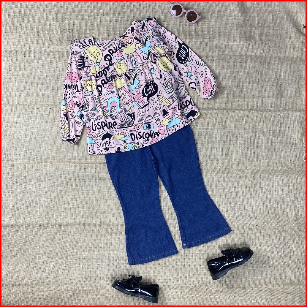 Ribie Setelan Baju Anak Perempuan Blouse Celana Jeans Usia 1 - 7 Tahun