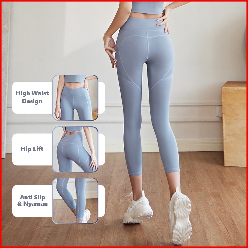 Youmi Celana Legging Olahraga Wanita Highwaist Panjang Jumbo Yoga Pilates Gym Kantong Polos Terbaru Premium Leging Booty