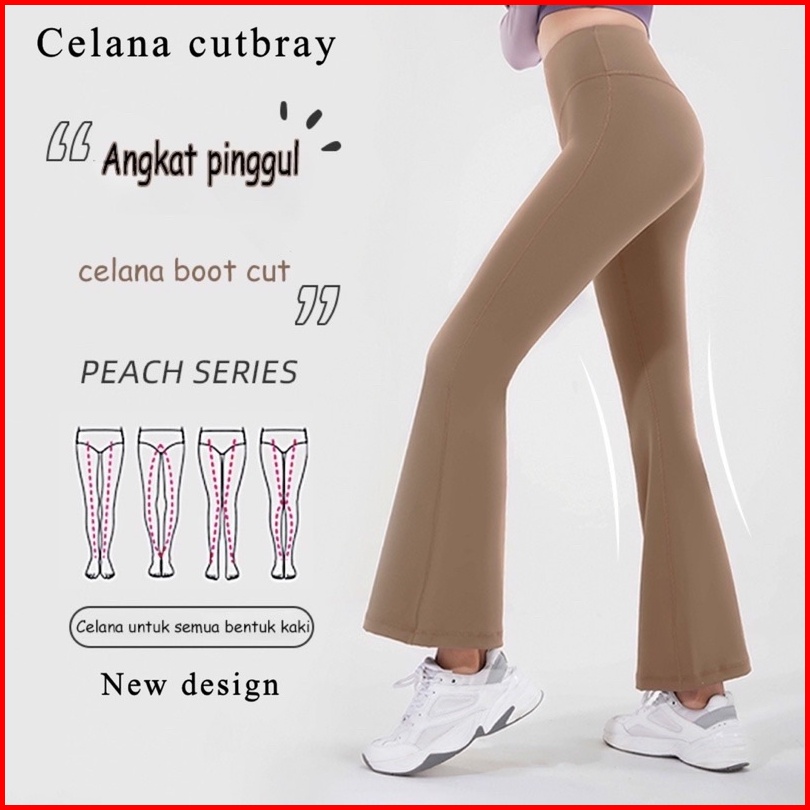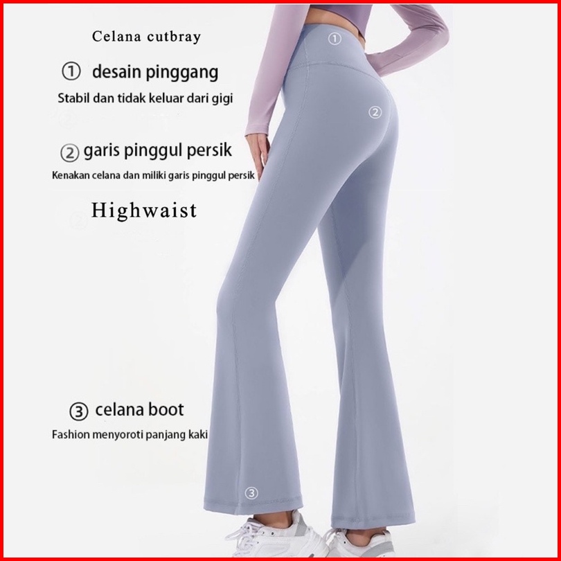 Yagoo - Celana Olahraga Yoga Pilates Peregangan Legging Cutbray Celana Kaki Boot Cut Wanita Flared Legging16