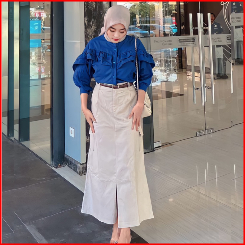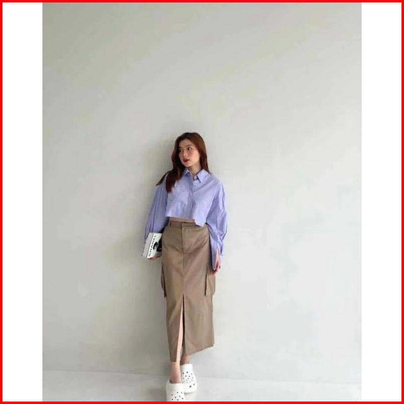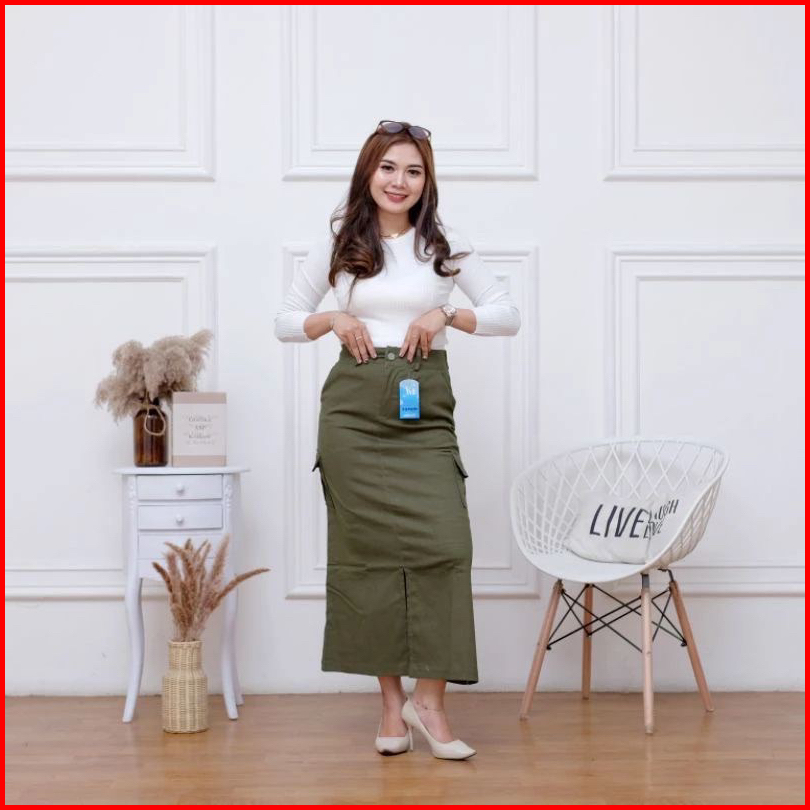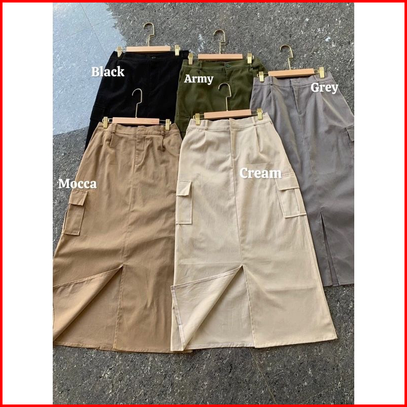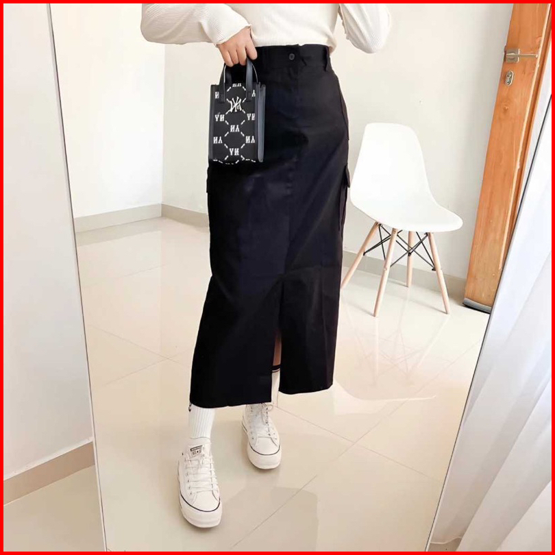 Kenzy Cargo Skirt Rok Belah Koren Style Katun Twill
