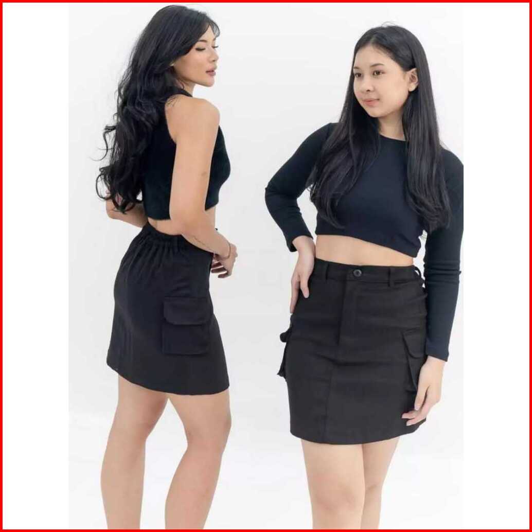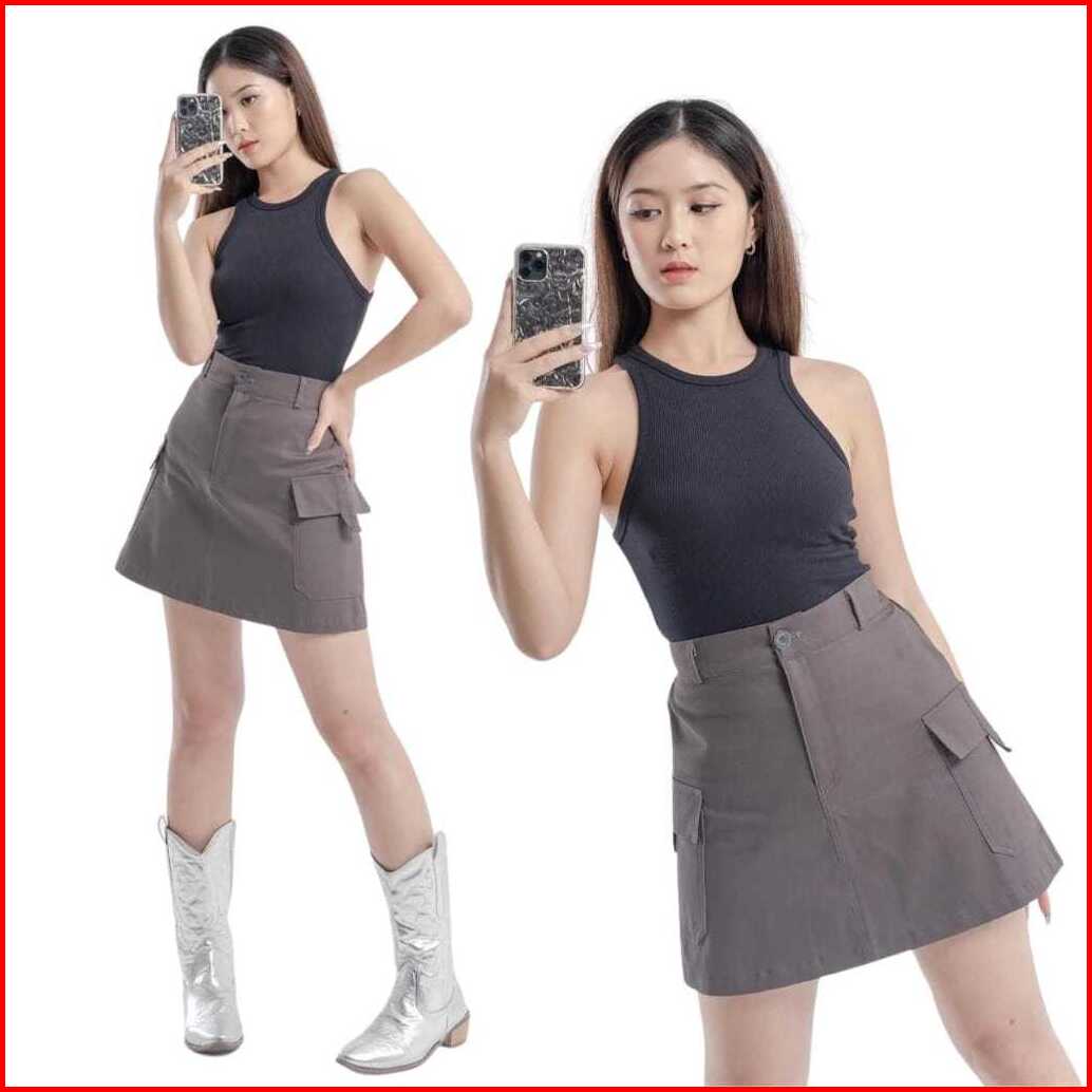 Mini Skirt A-line Mizela Cargo Skirt Rok Pendek Wanita Rok Cargo
