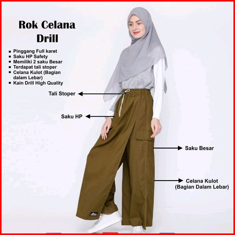 Rok Celana Muslimah Bahan Katun Drill Premium Berkualitas Terjamin Tebal Adem Nyaman Tidak Mudah Sobek- Celana Rok Outdo