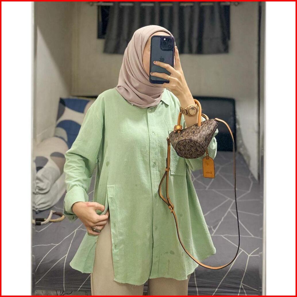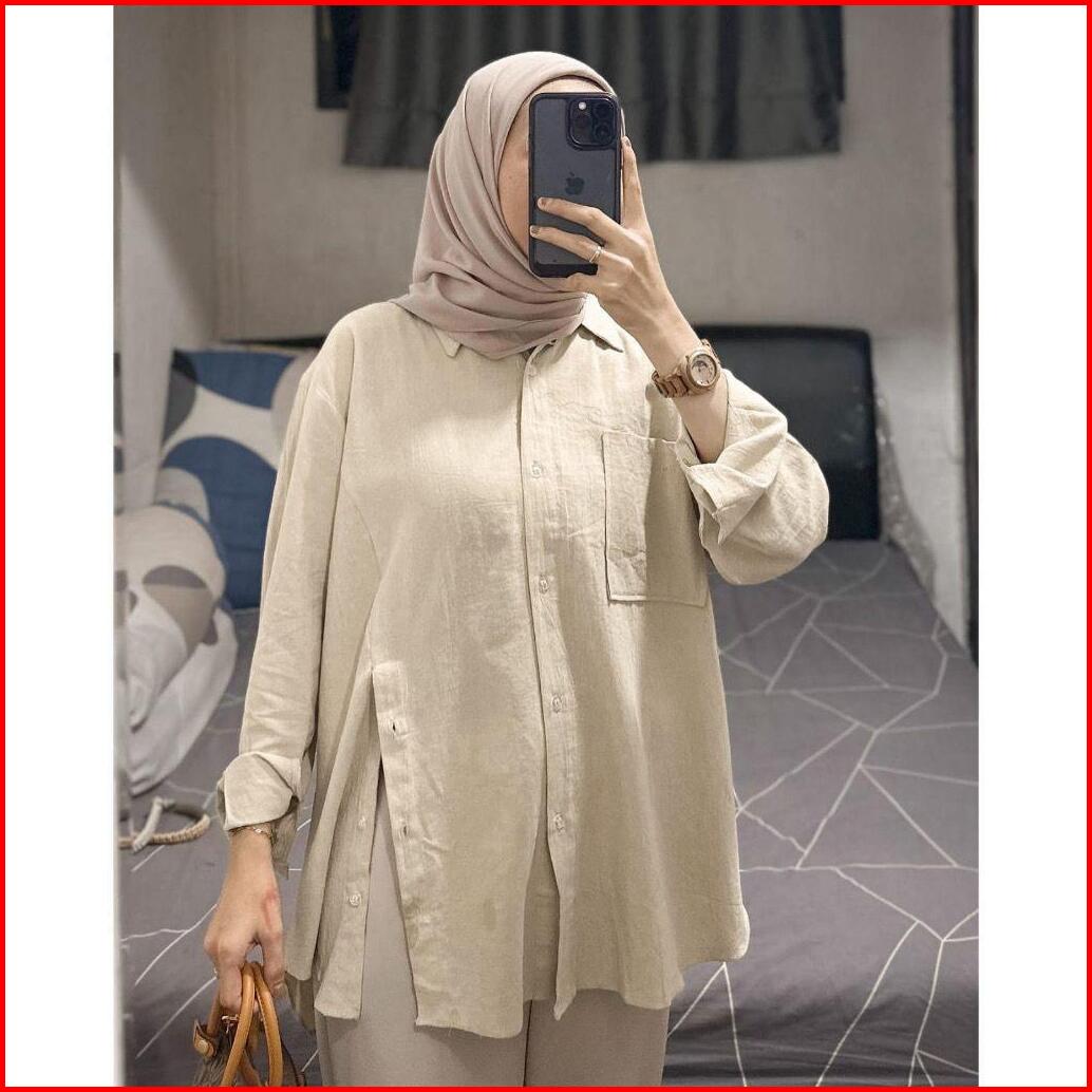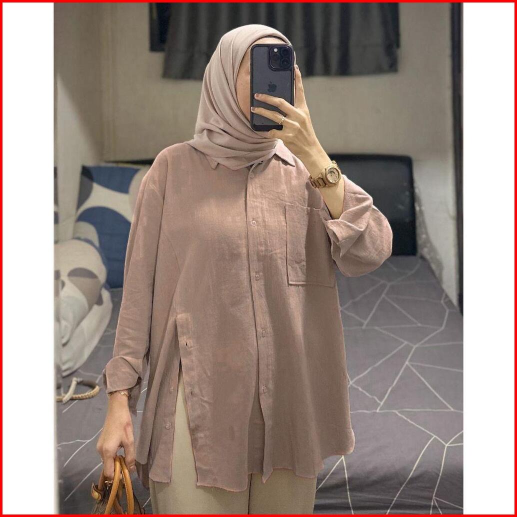 Kemeja Polos Crinkle Wanita Kancing Samping Zaliah
