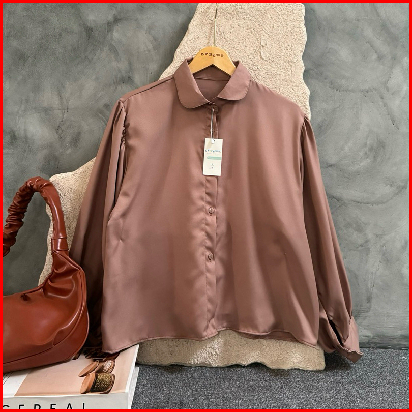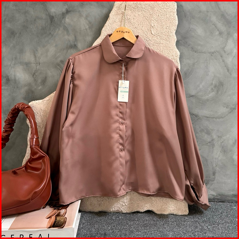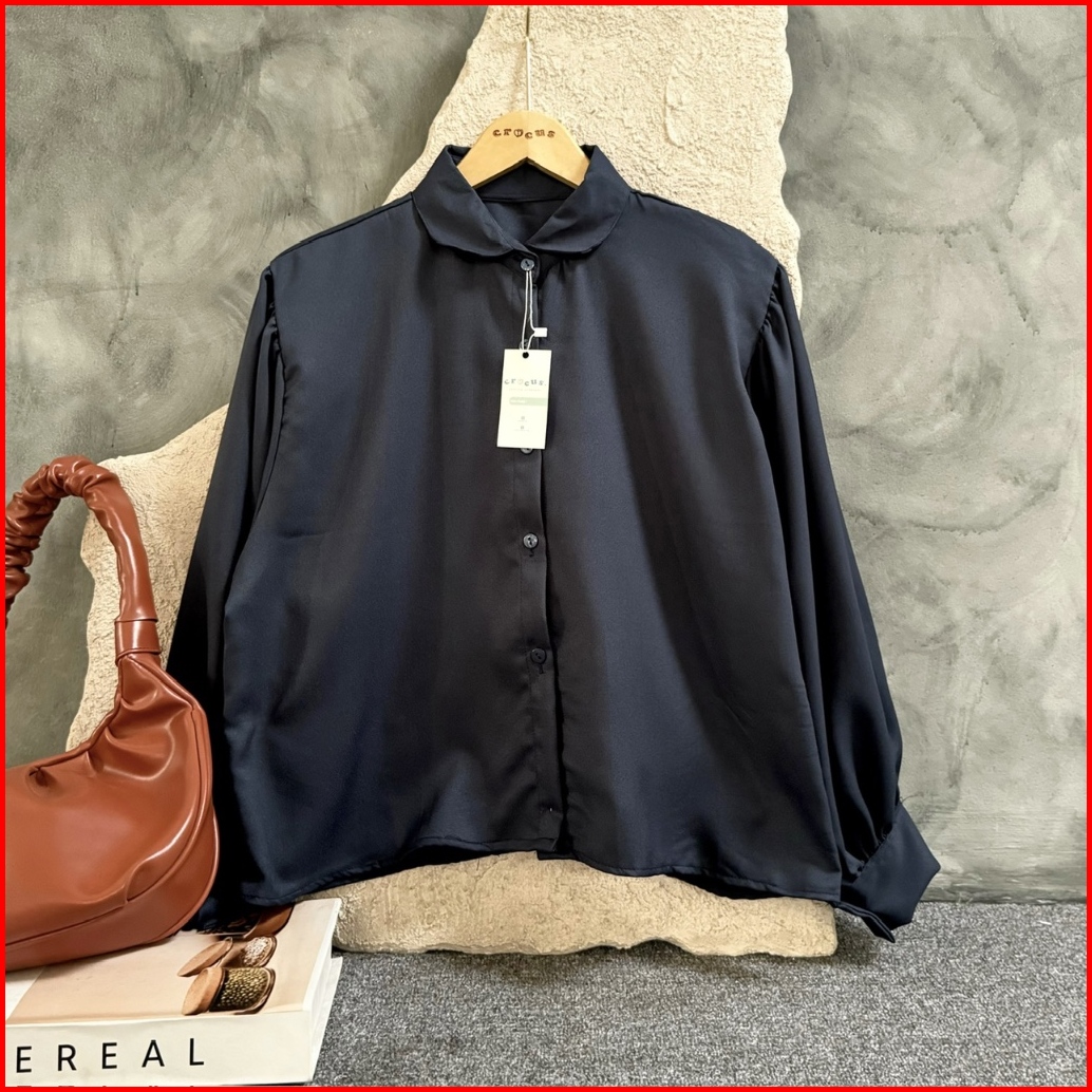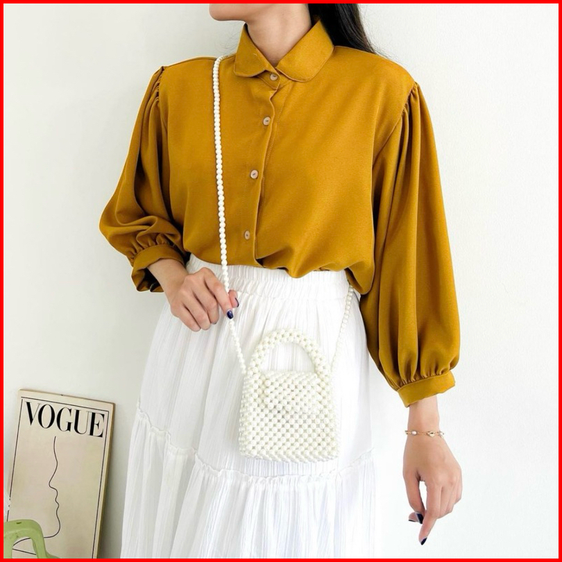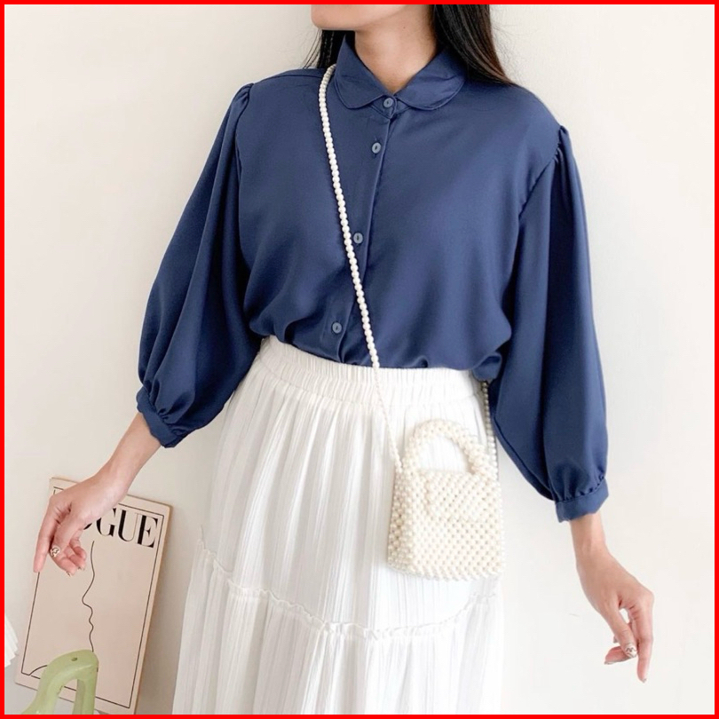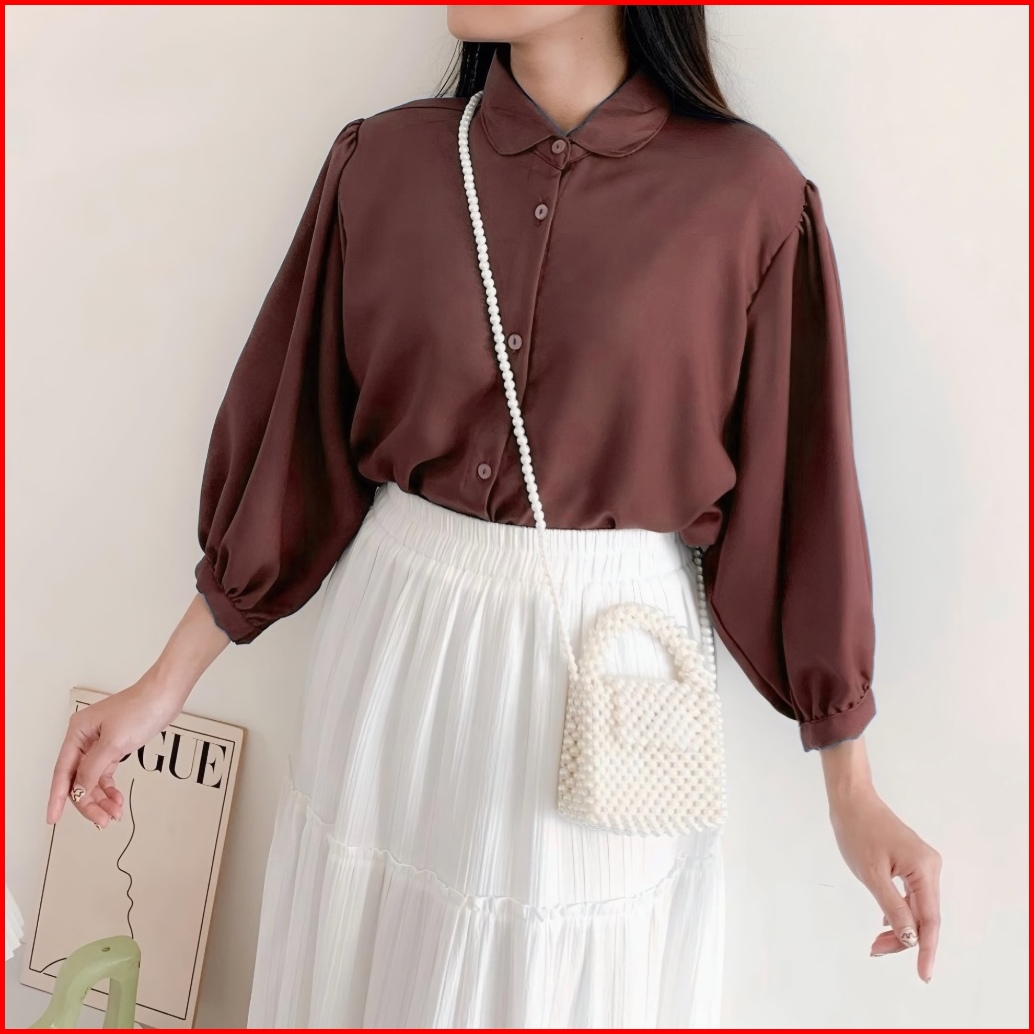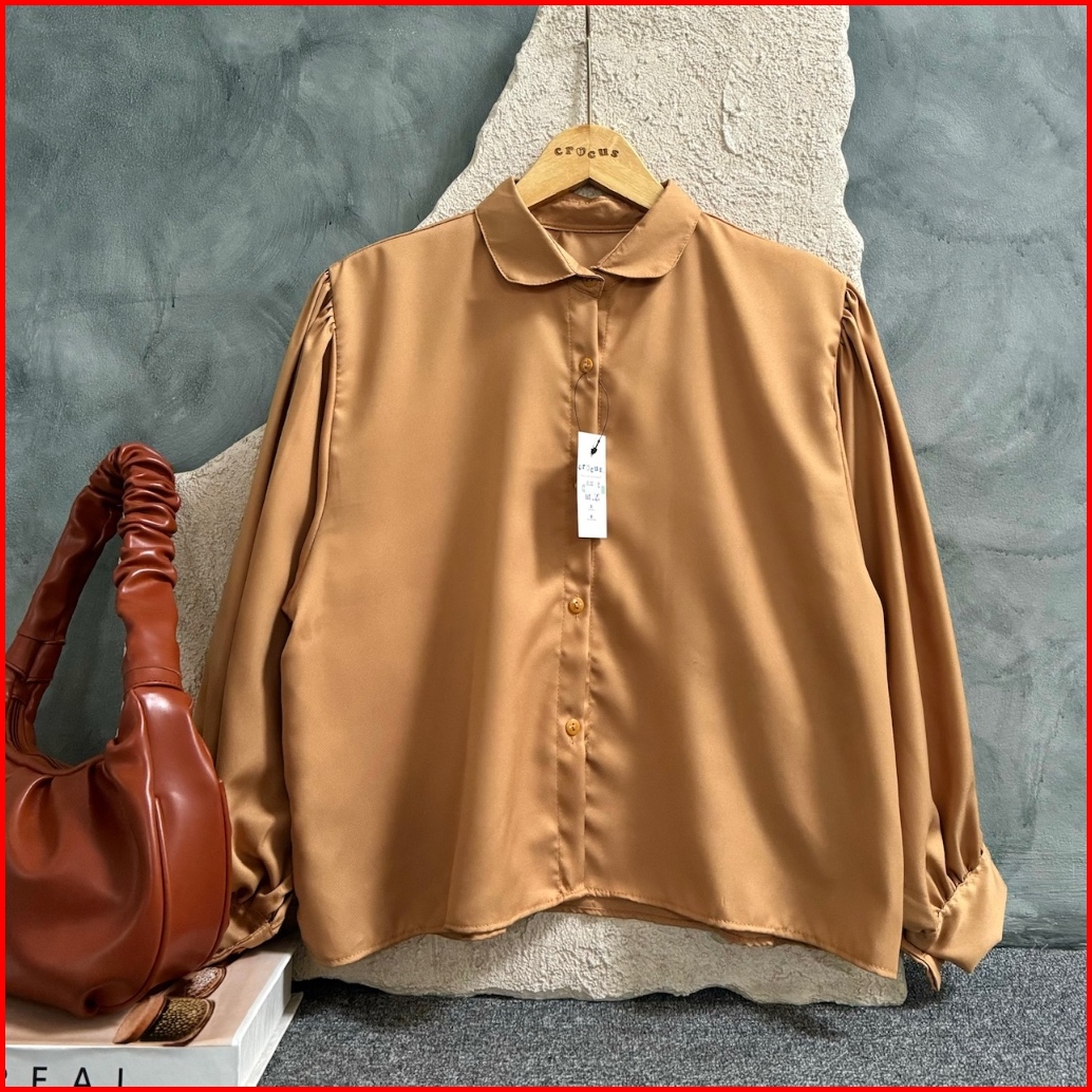 Ld 110cm Elze Blouse Shakilla Polos - Kemeja Atasan Wanita Shakila Twill Lengan Balon Kancing