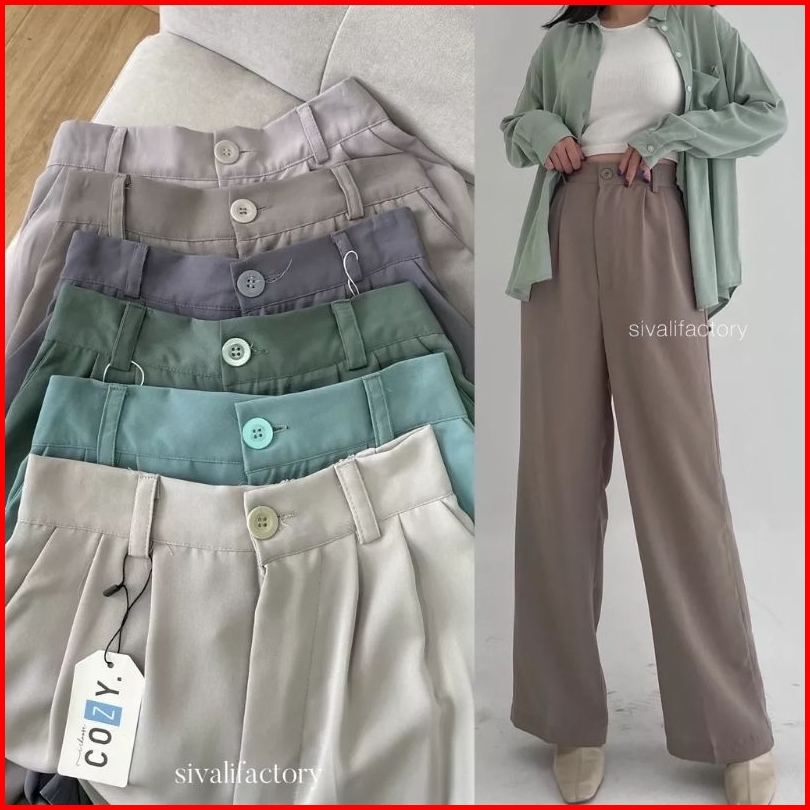 Loose Pants Trousers Celana Wanita Highwaist Celana Wanita Kekinian Celana Anti Kusut Celana Kantor Celana Wanita Terbar
