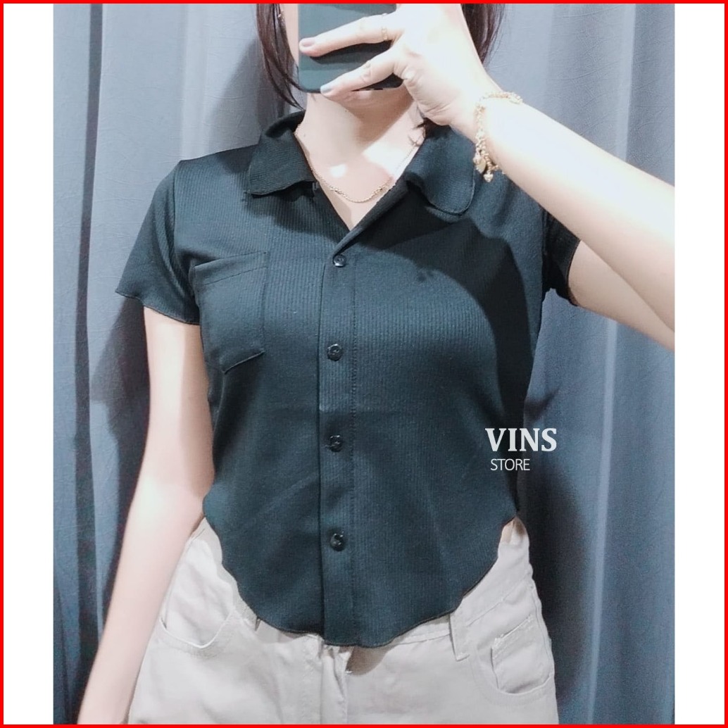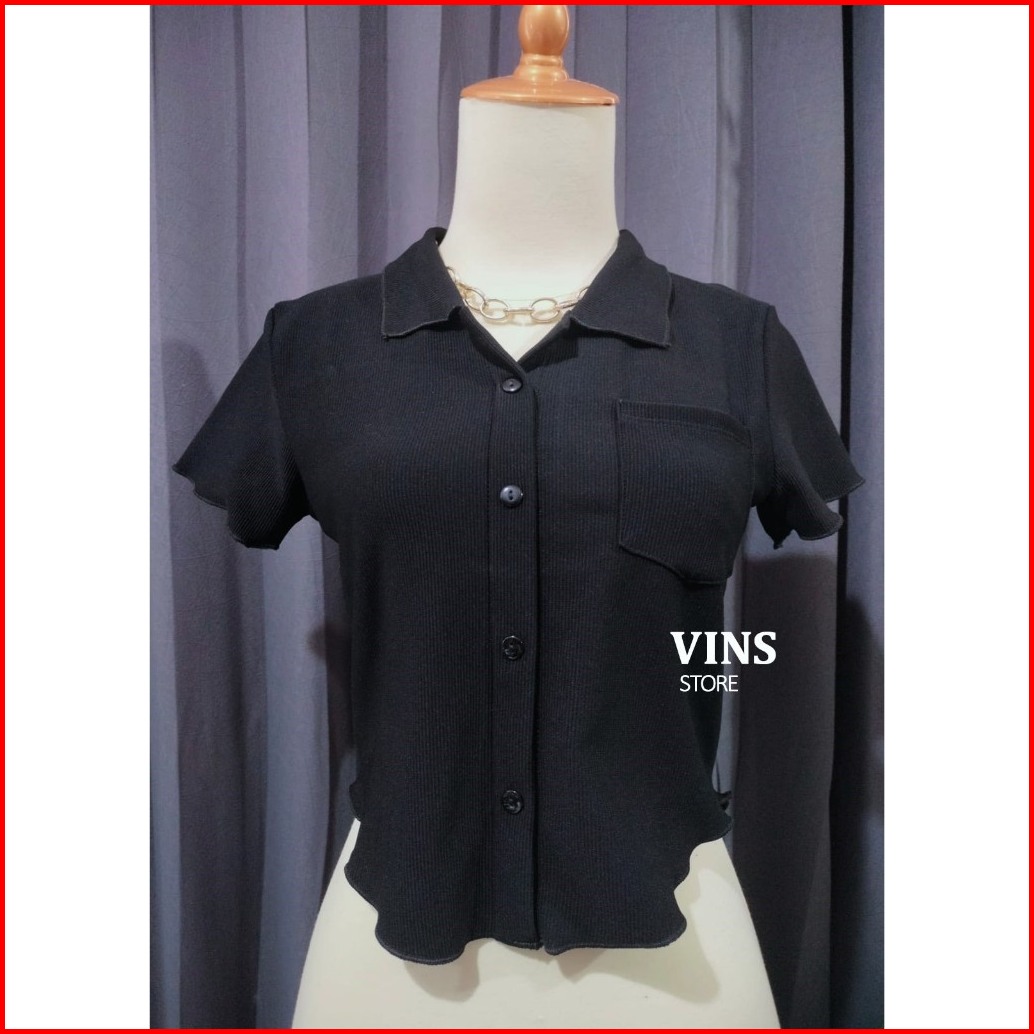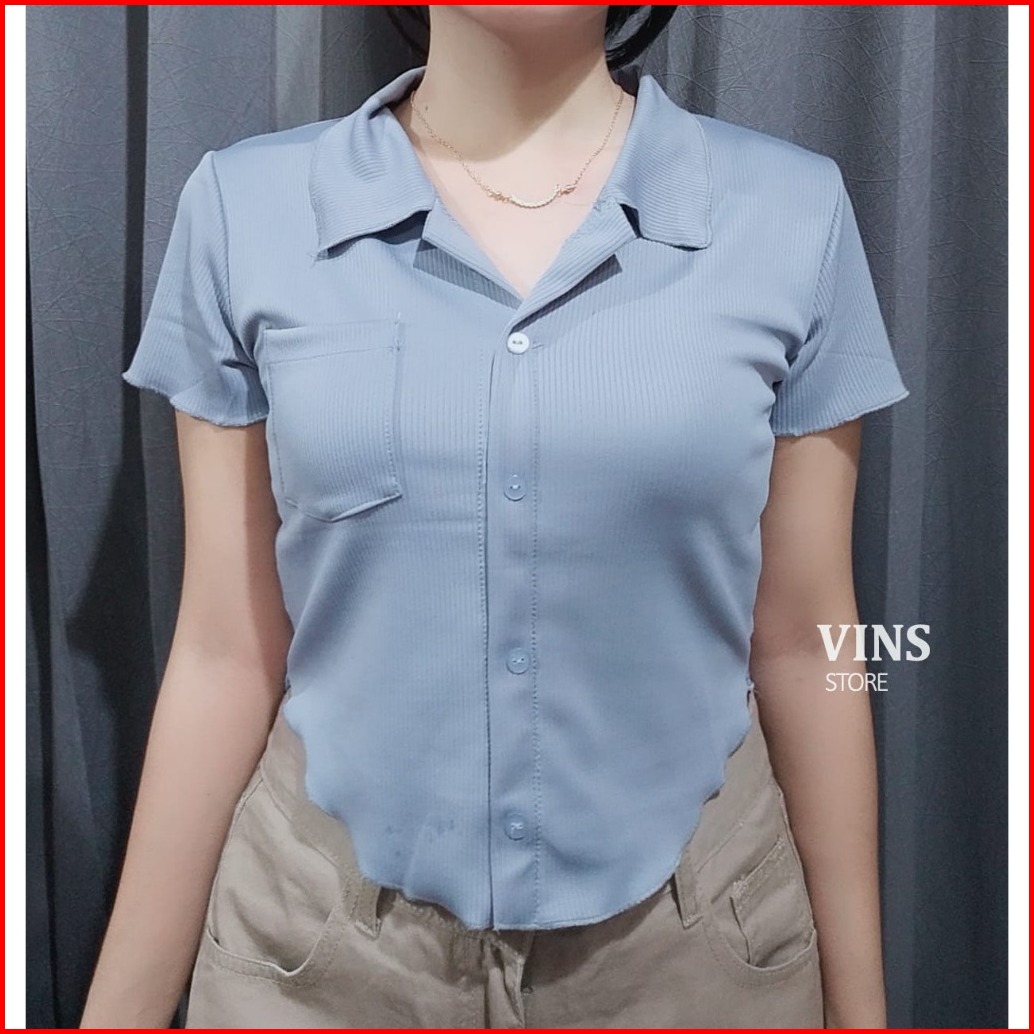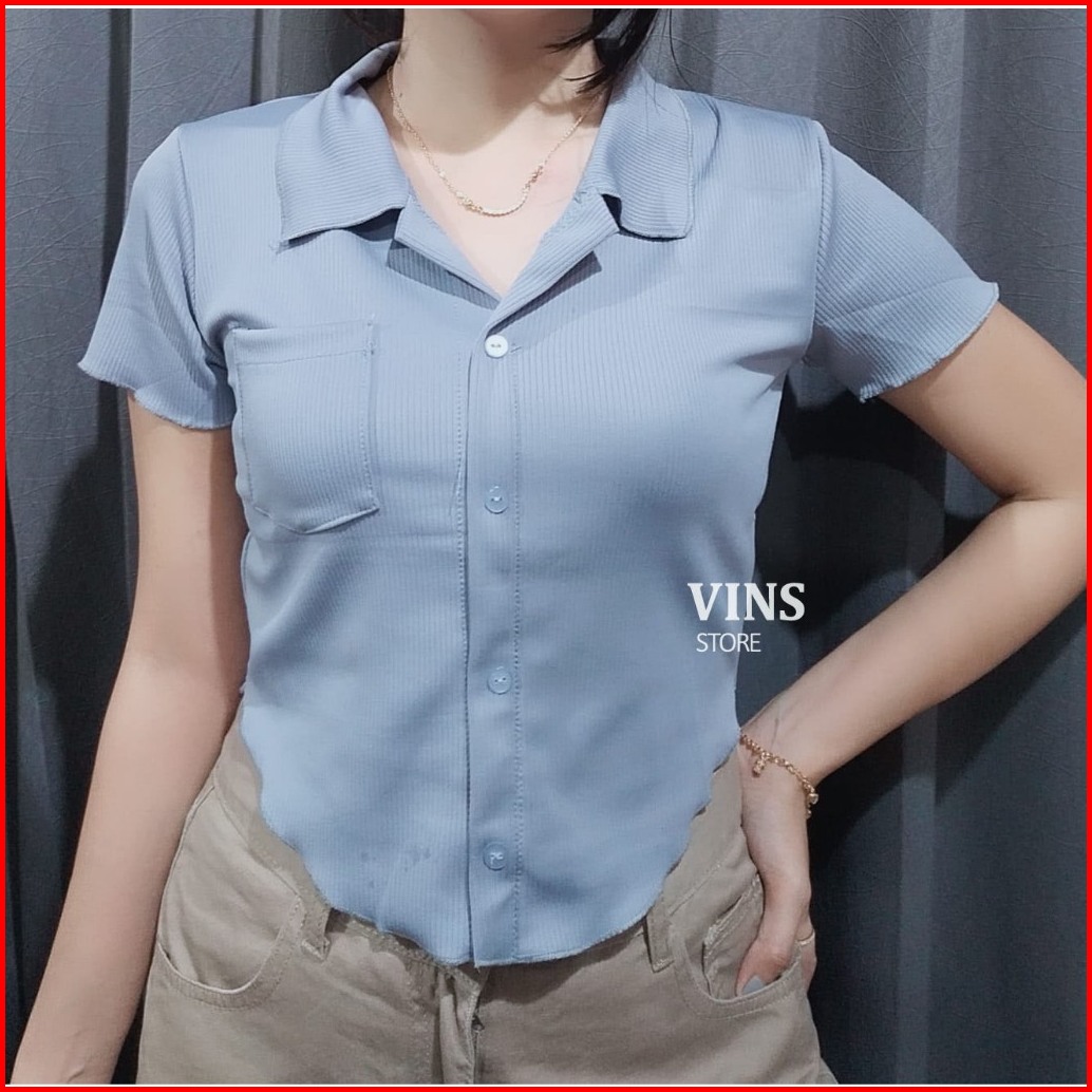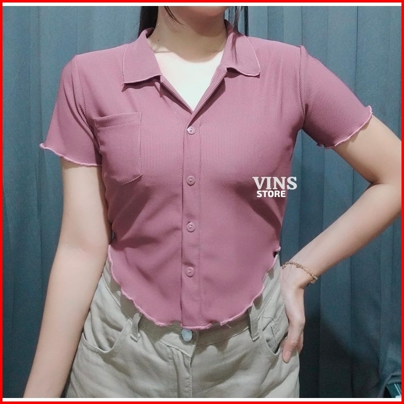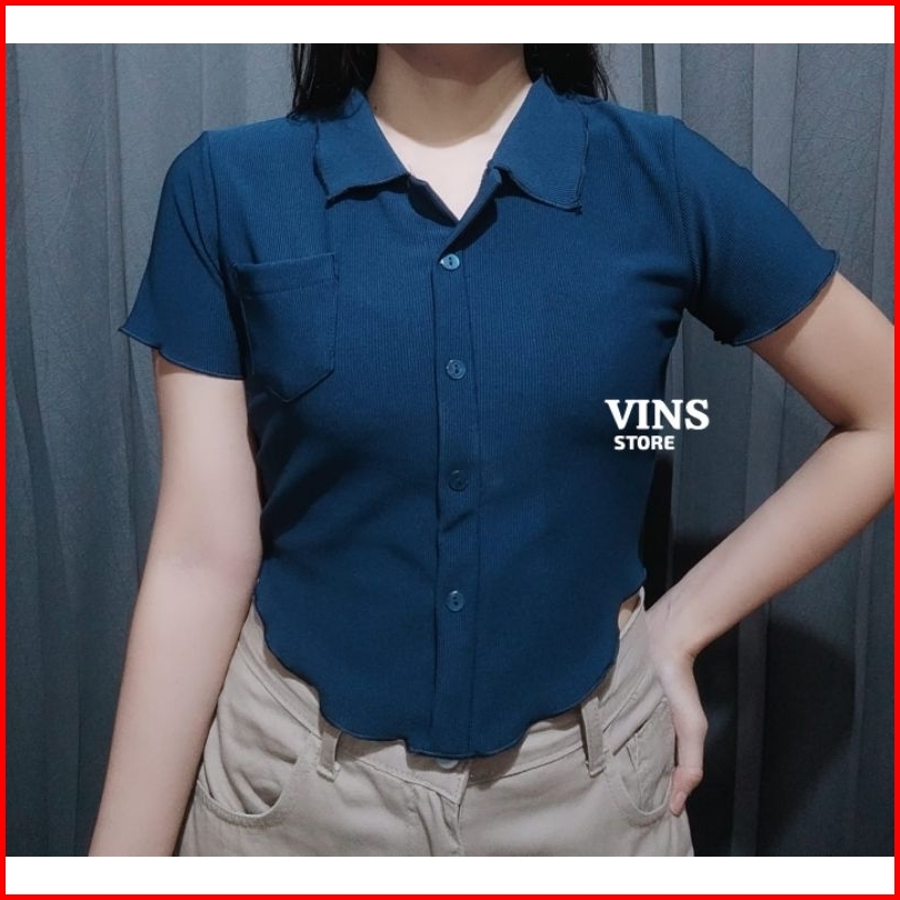Vinest - Crop Top Luna Knit Premium Atasan Wanita Korea Knit Premium