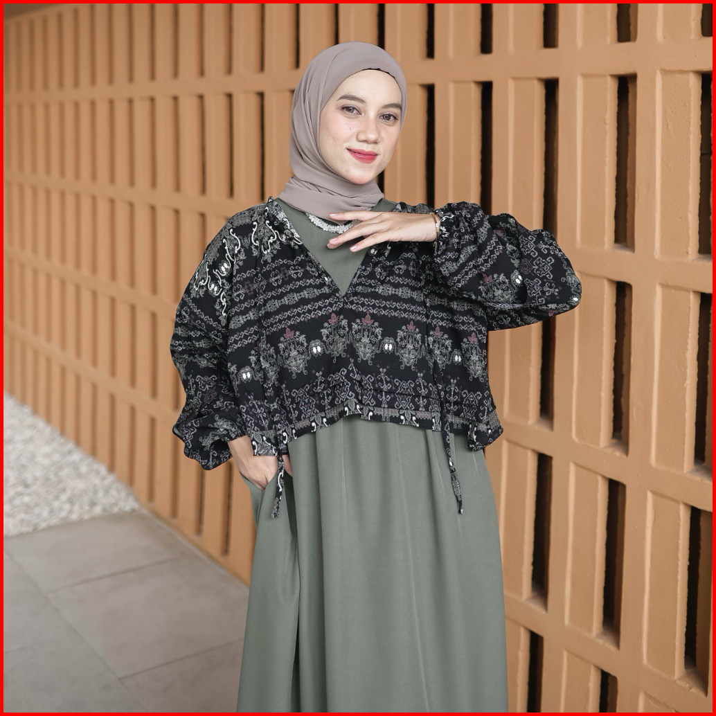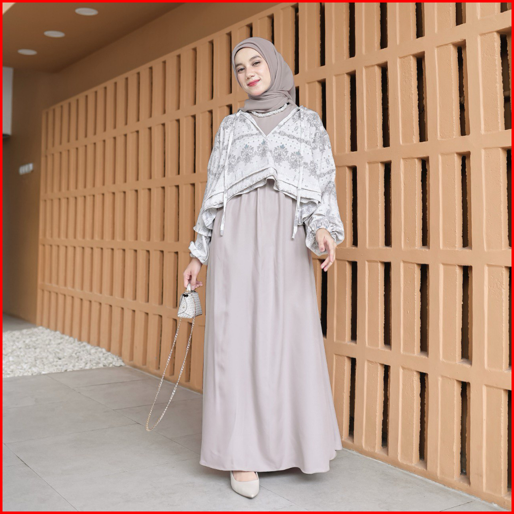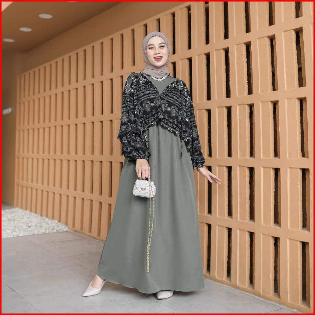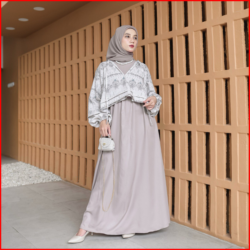 Proudyhijab - Diora Dress Korean Style Dress Outer 2 In 1 Dress Wanita Busui Friendly Bukaan Kanan Kiri
