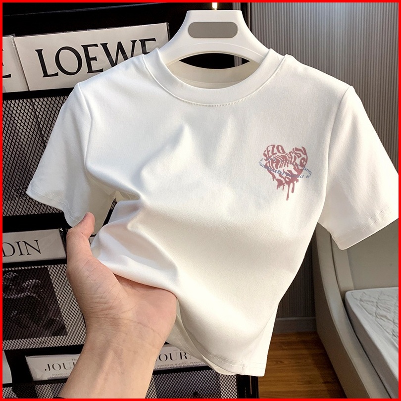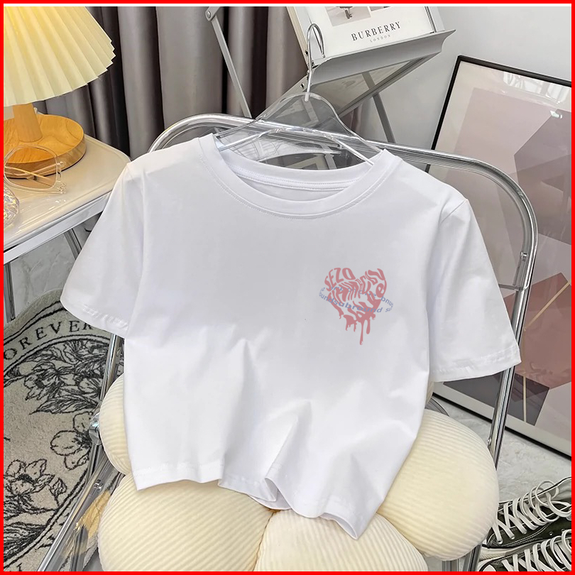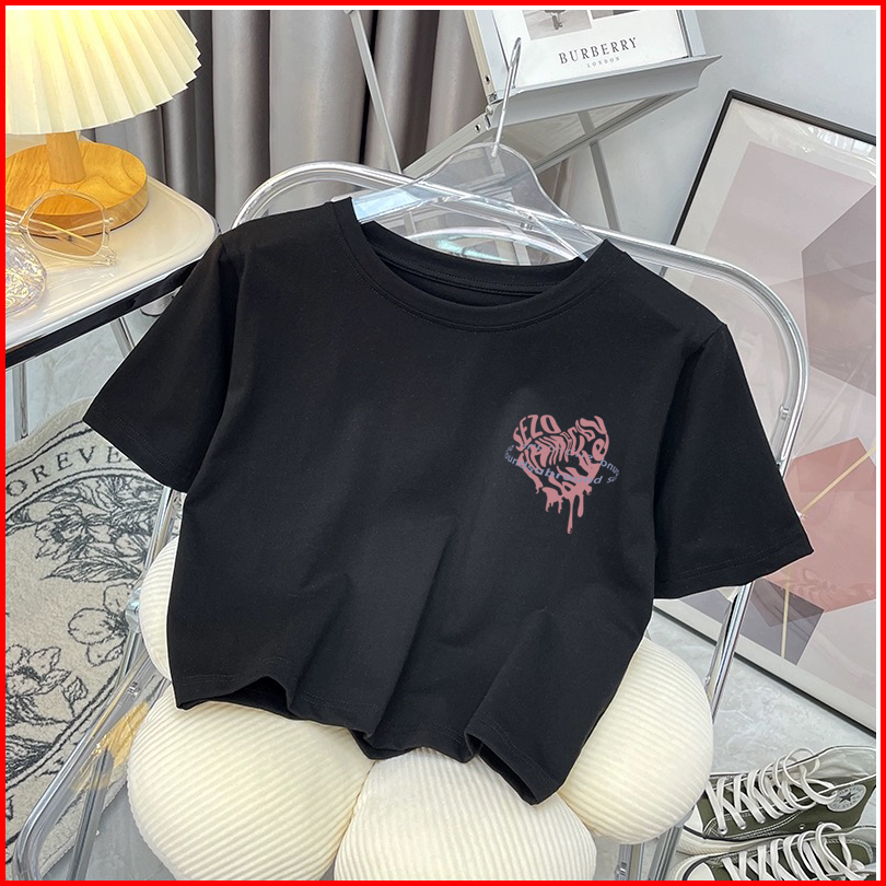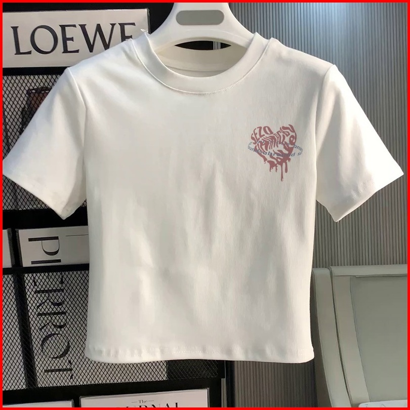 006-066 T-shirt Crop Top Lengan Pendek Kaos Wanita Crop Top Cinta Mencetak Logo Kecil Kaus Crop Wanita Baju Atasan Wanit