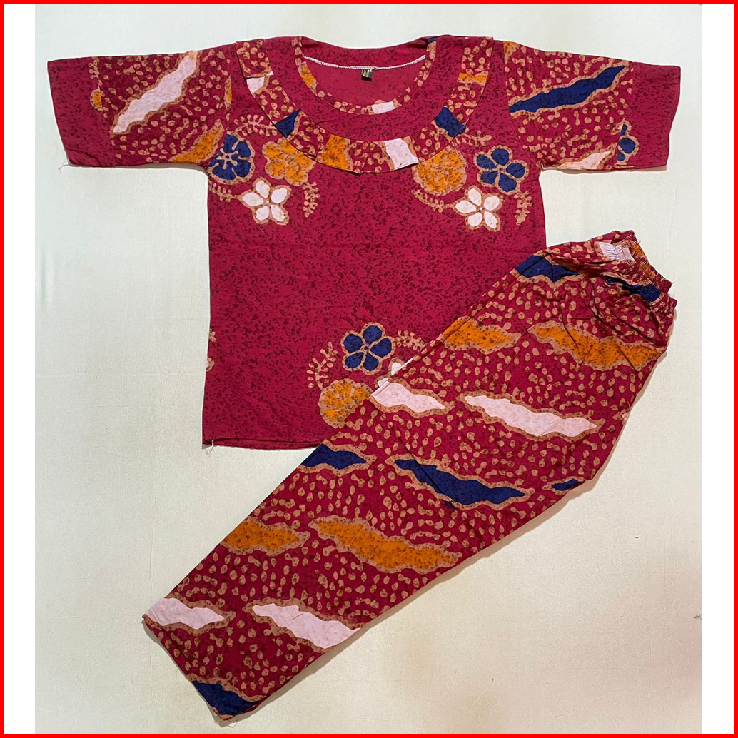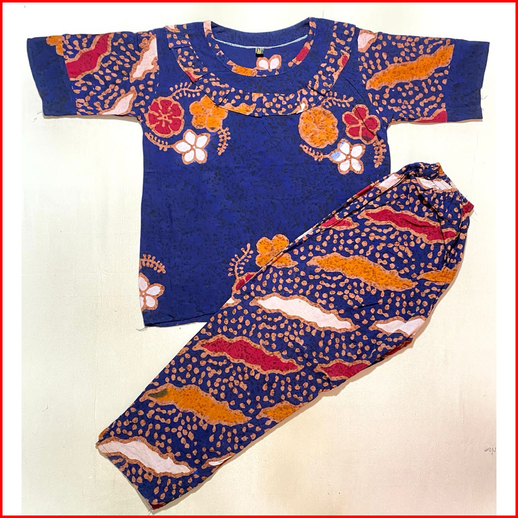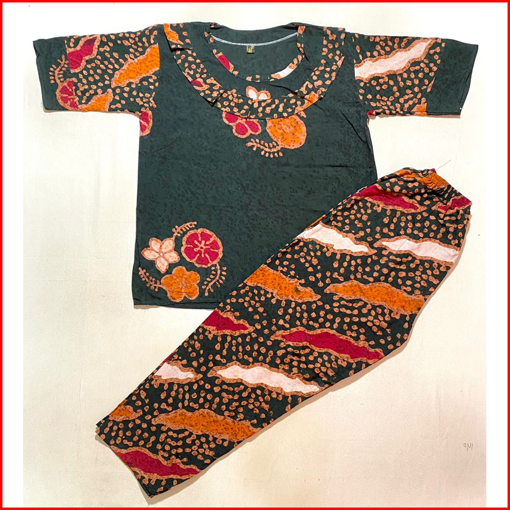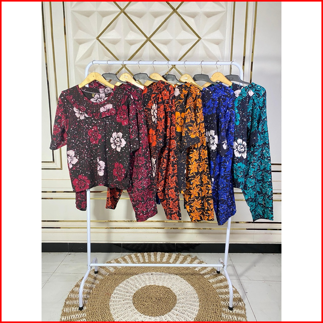 Standard Lengan 3 4 Ld 112cm Setelan Batik Cap Super New Motif Bunga Kriwil Hitam Bunga Kecil