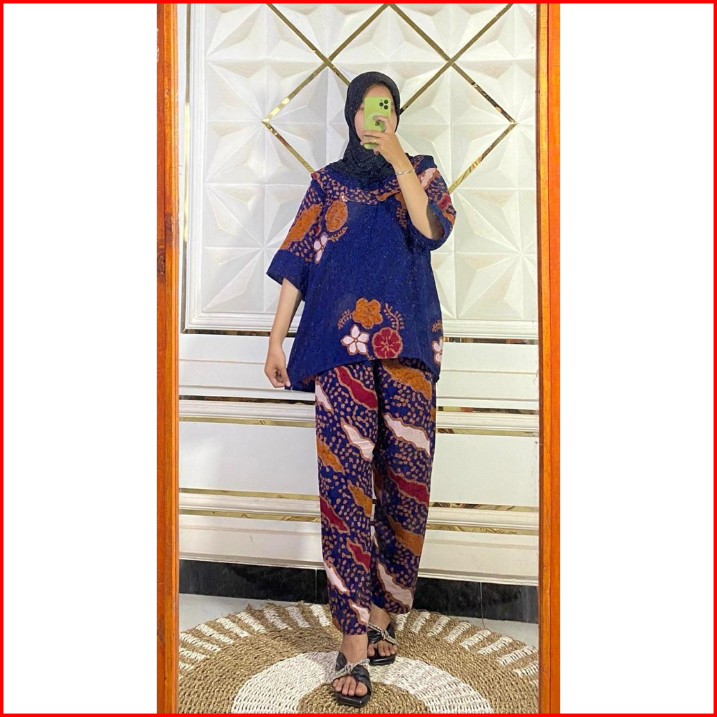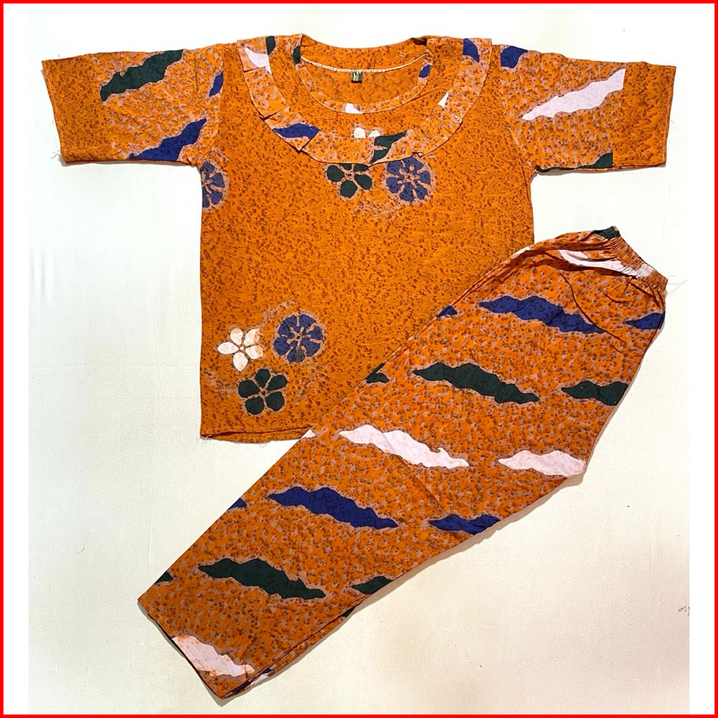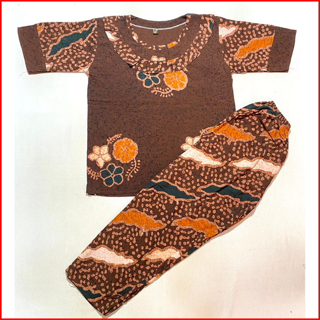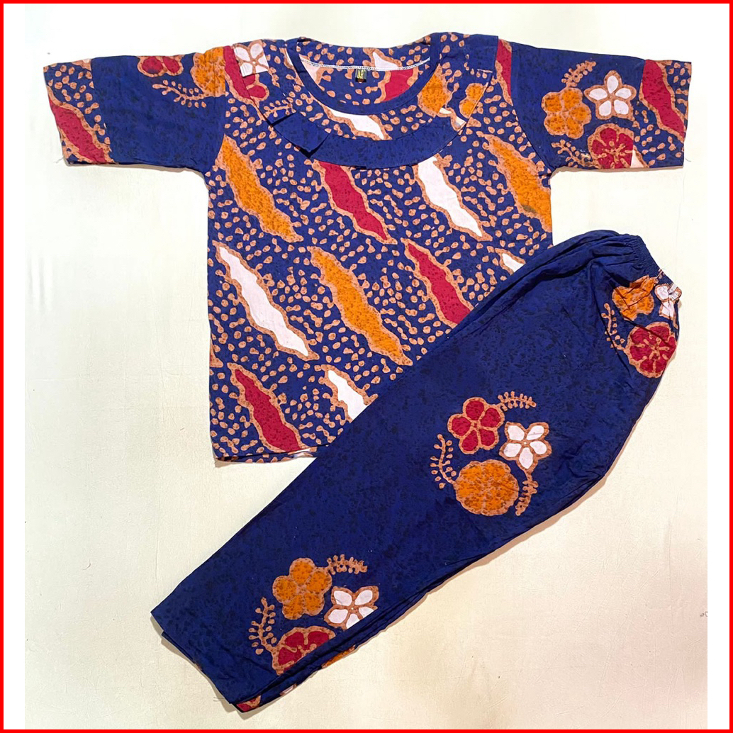 Standard Lengan 3 4 Ld 112cm Setelan Batik Cap Super New Motif Bunga Kriwil Hitam Bunga Kecil
